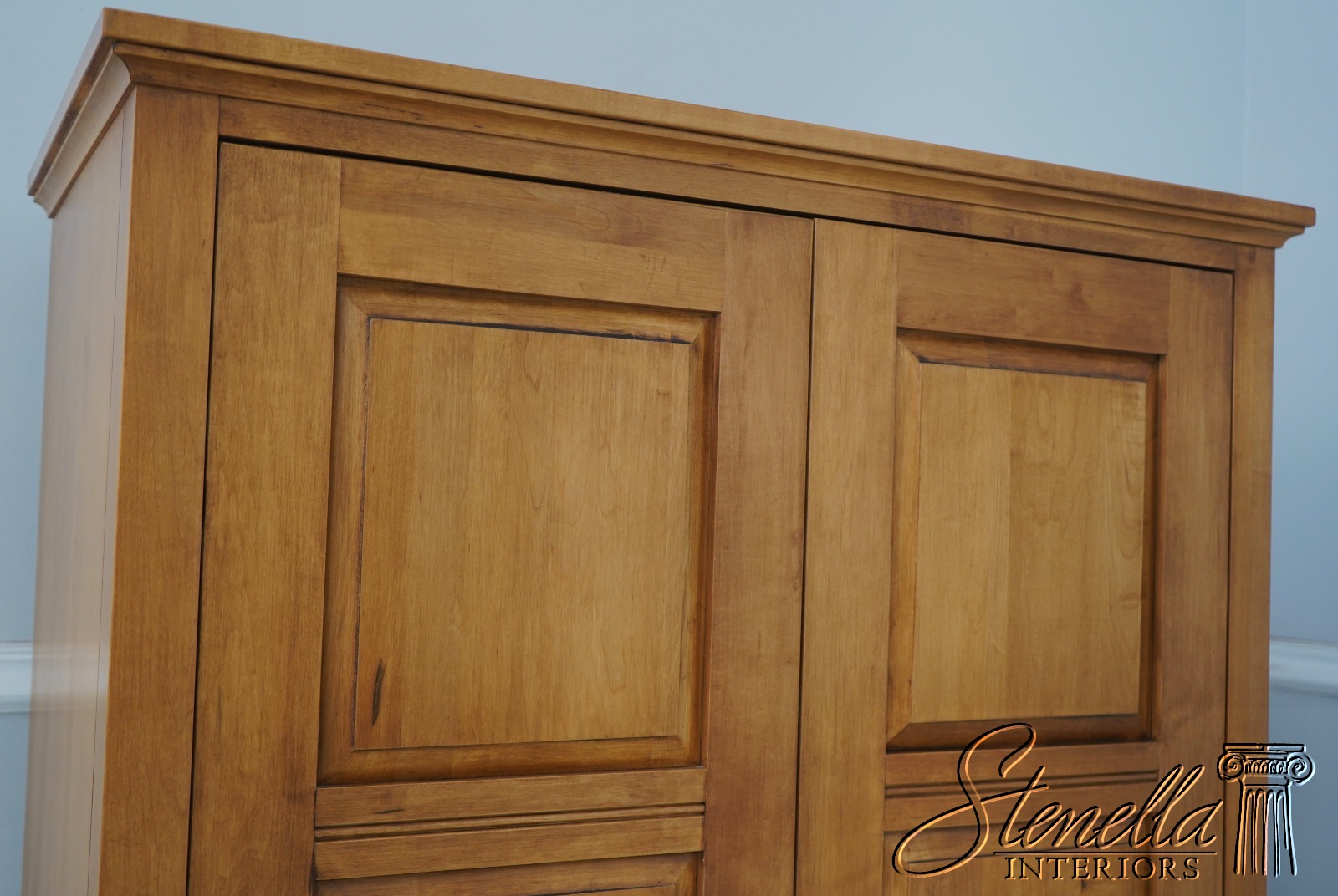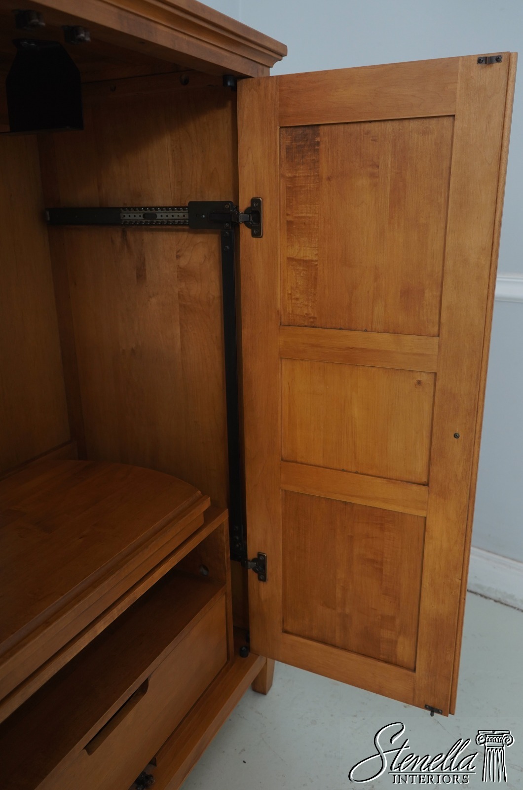Details: Finish no.214 Country Colors Collection Dovetailed Drawer Construction Fine Carved Details High Quality Construction Solid Maple Raised Panel Doors Traditional Style Pocket Doors - Doors Fold Into Sides Slide Out TV Tray Built In Outlet Extensions