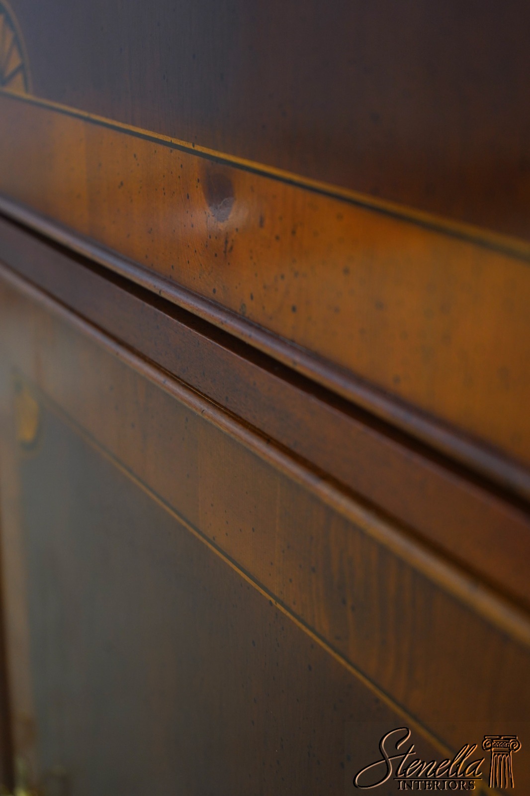 Details: Mahogany Adjustable Shelves Dovetailed Drawer Construction Fine Carved Details High Quality Construction Nice Inlay Work Throughout Dentil Crown Molding Solid Brass Hardware Nice Yewood Banding & Inlay On Mahogany Bonnet Top Satinwood Inlays Retractable Pocket Doors Offered @ Fraction Original Retail Cost