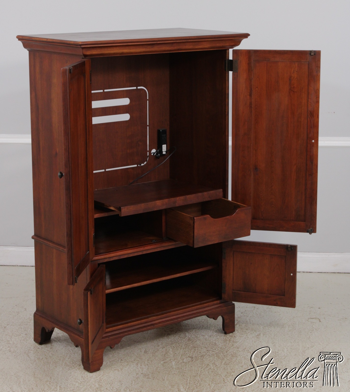Details: Bob Timberlake Collection Solid Cherry Adjustable Shelves Bracket Feet Dovetailed Drawer Construction Quality Construction Large Impressive Cabinet Raised Panel Doors Country Style Pull Out Tv Stand Faux Key Plates Wrap Around Doors Offered At A Fraction Of The Original Retail Cost