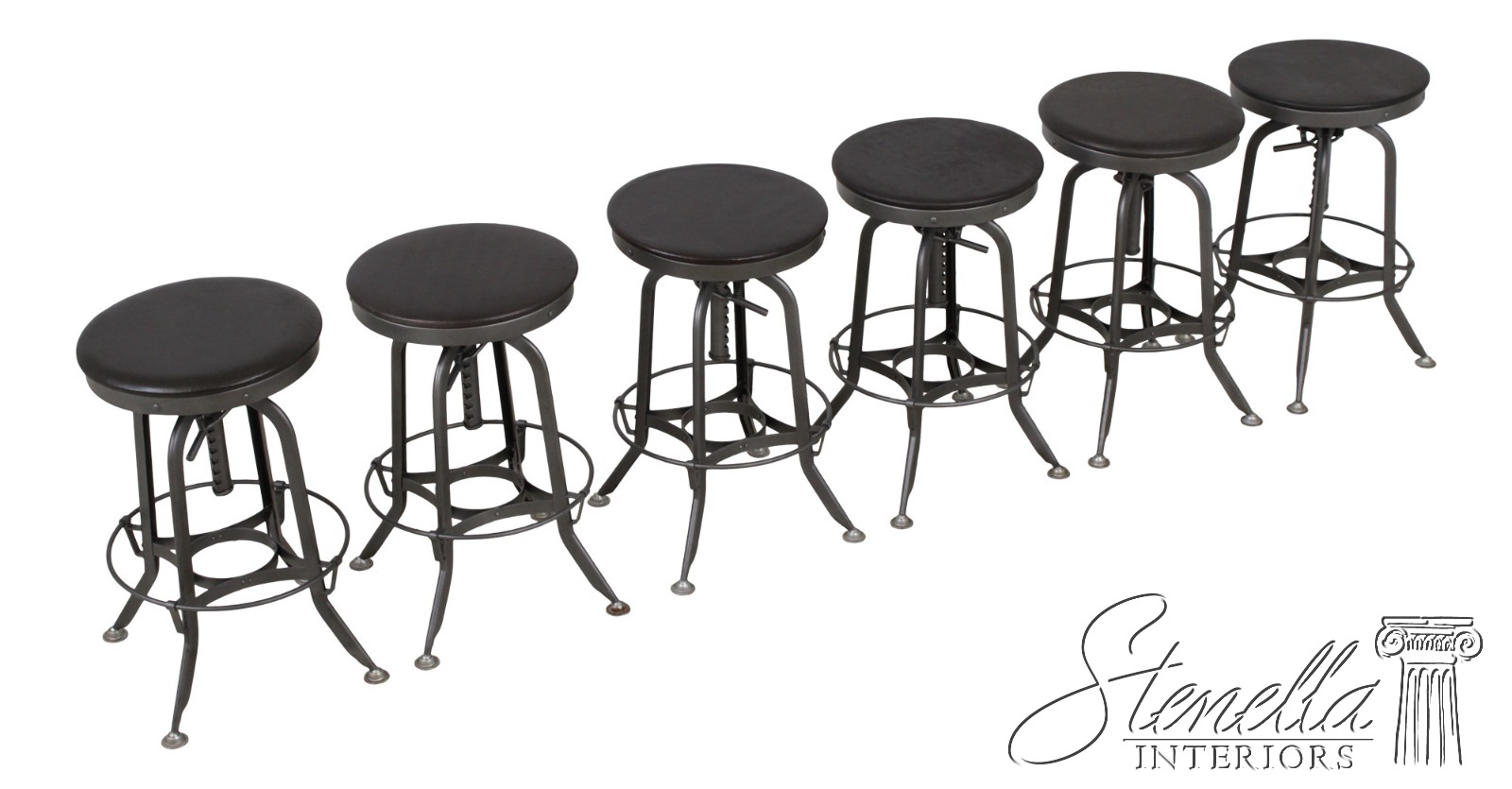 F72431: Set of 6 RESTORATION HARDWARE Adjustable Toledo Leather Seat Stools