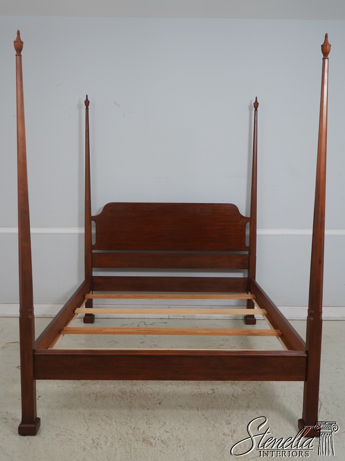 Details: Finish no.24 Solid Cherry High Quality Construction Removable Finials Tapering Pencil Point Posts Traditional Style Brass Mounts On Footboard Of Bed Not On First Pic Offered @ Fraction Original Retail Cost