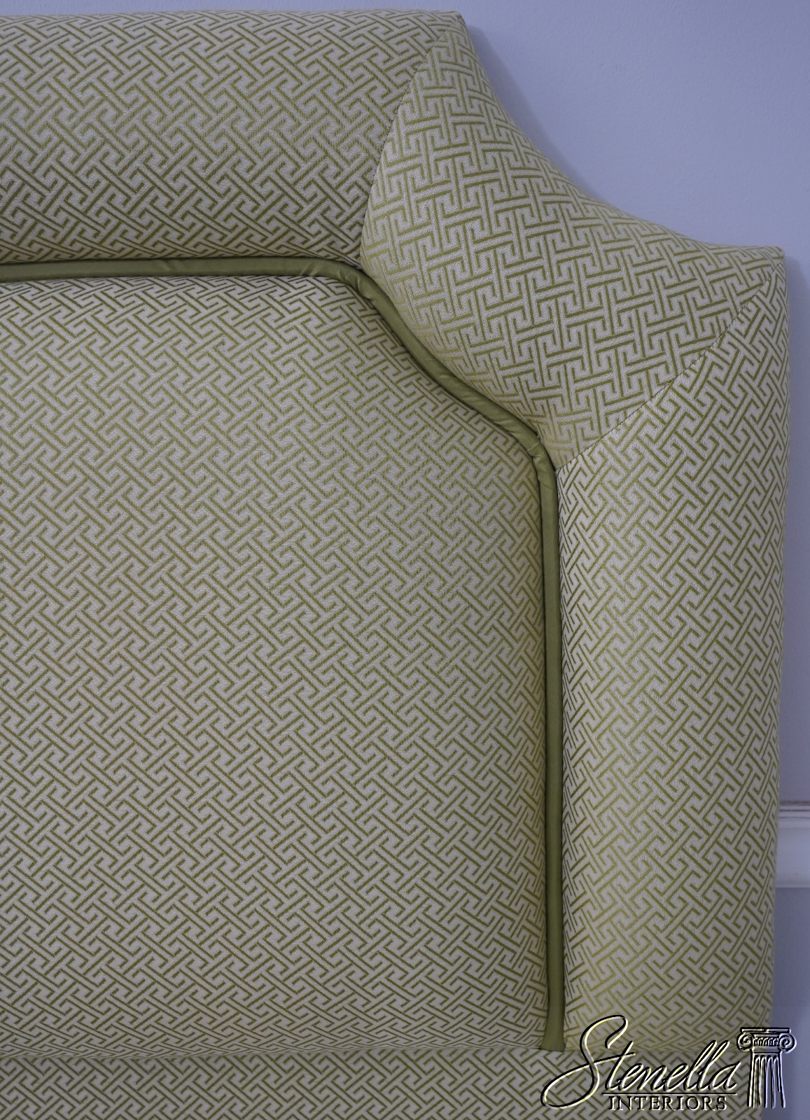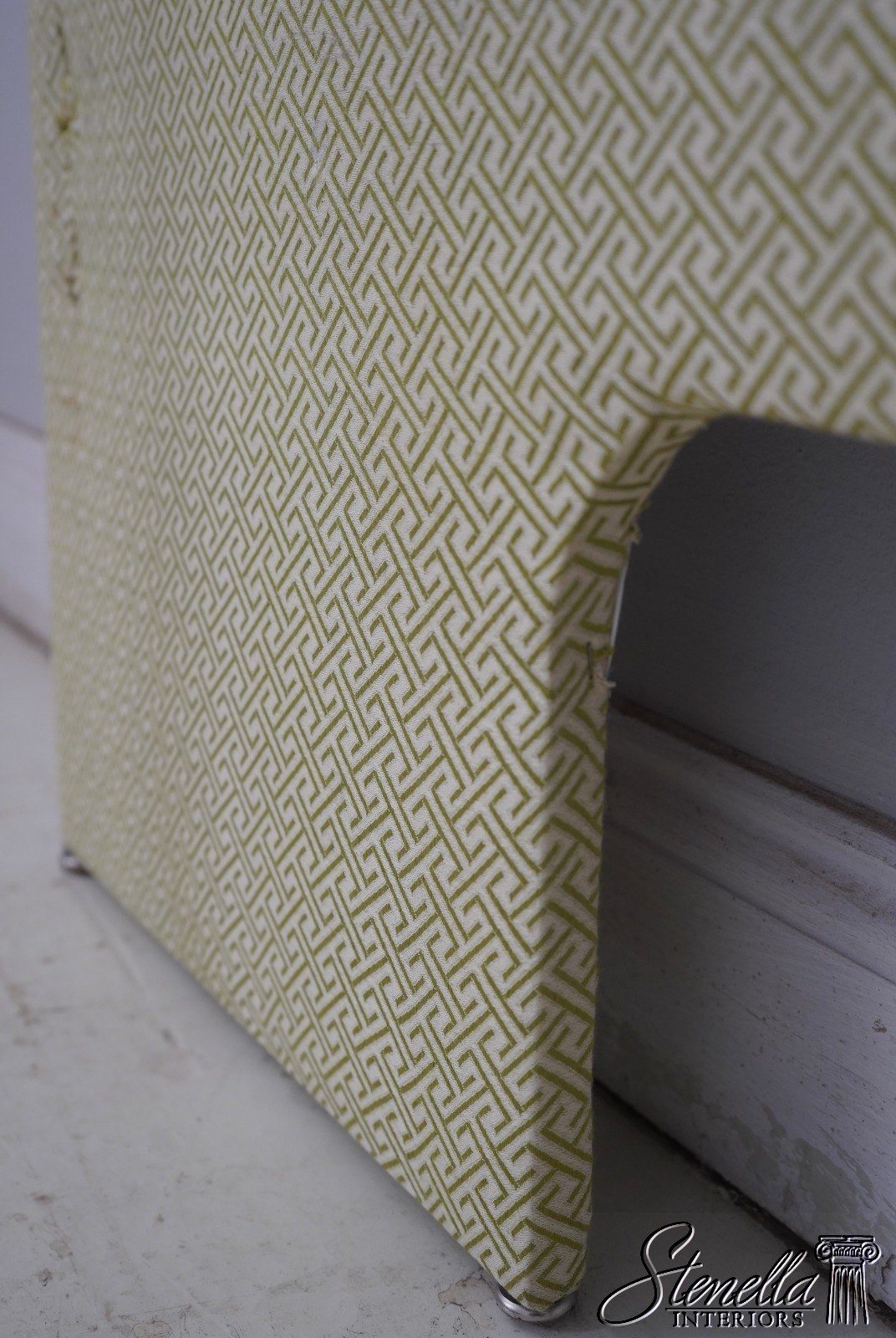 Details: Ready To Attach To Your Existing Bedframe Quality Construction Used On Display Only In Model Home Modern Print Green Upholstery Un-Marked As To Manufacture Offered @ Fraction Original Retail Cost