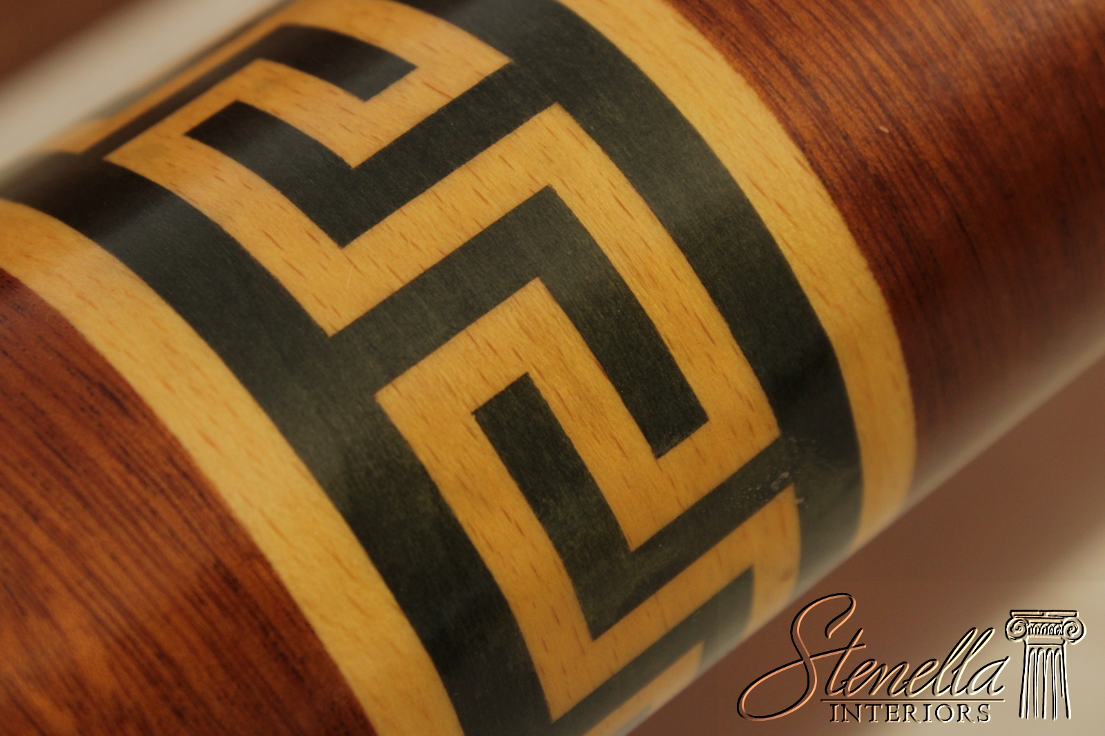 Details: Mahogany Ball & Claw Feet Brass Capped Feet Fine Carved Details High Quality Construction Nice Inlay Work Throughout Traditional Style Ebony & Satinwood Inlay Greek Key Inlay Design Bolt Construction Solid Brass Hardware Bronze Ormolu Accents Un-Marked As To Manufacture Offered @ Fraction Original Retail Cost