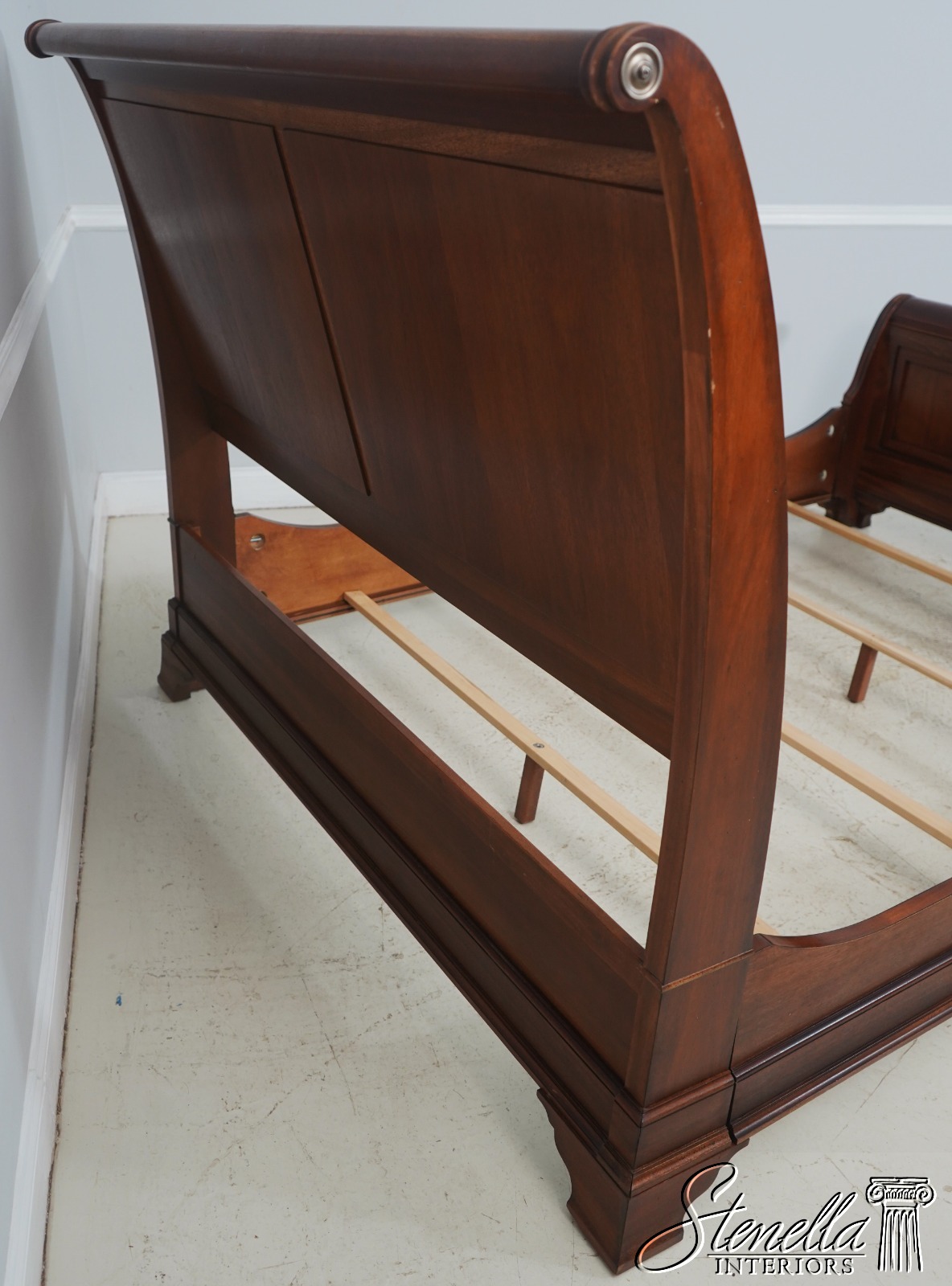 72174: ETHAN ALLEN Mahogany Newport Sleigh Queen Size Bed