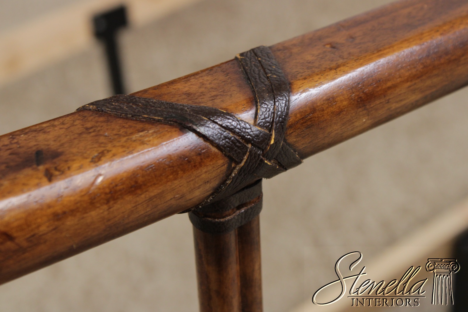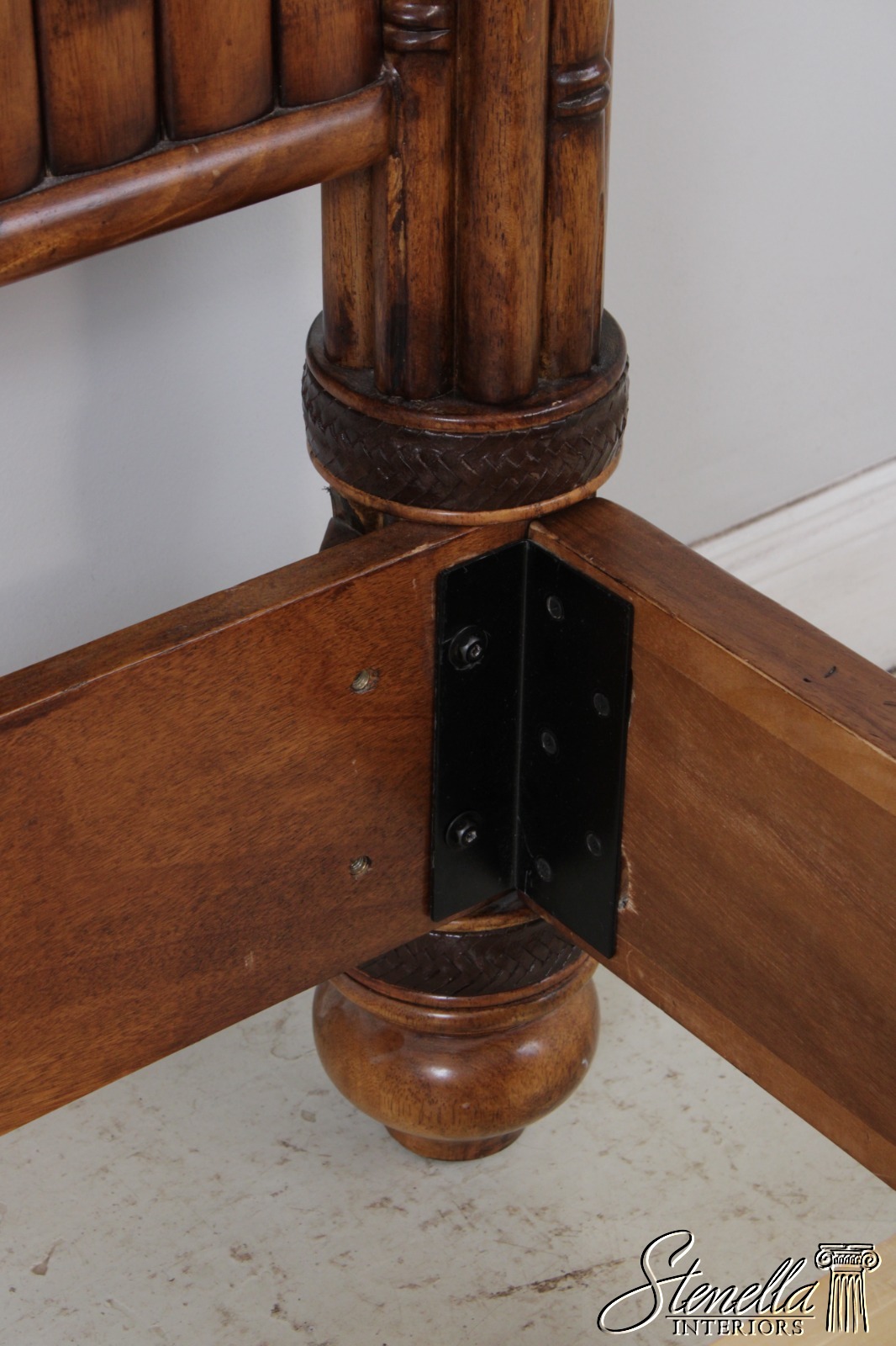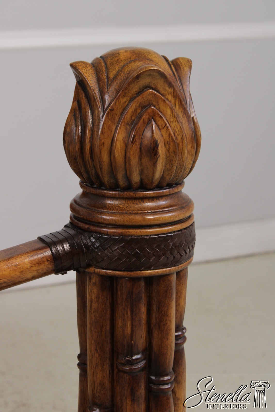 Details: British Colonial Style Fine Carved Details High Quality Construction Large Impressive Bed Leather Wrappings Bamboo Crafted Turned Poster Columns Decorative Metal Accents Un-Marked As To Manufacture - Attributed To Tommy Bahama Offered @ Fraction Original Retail Cost