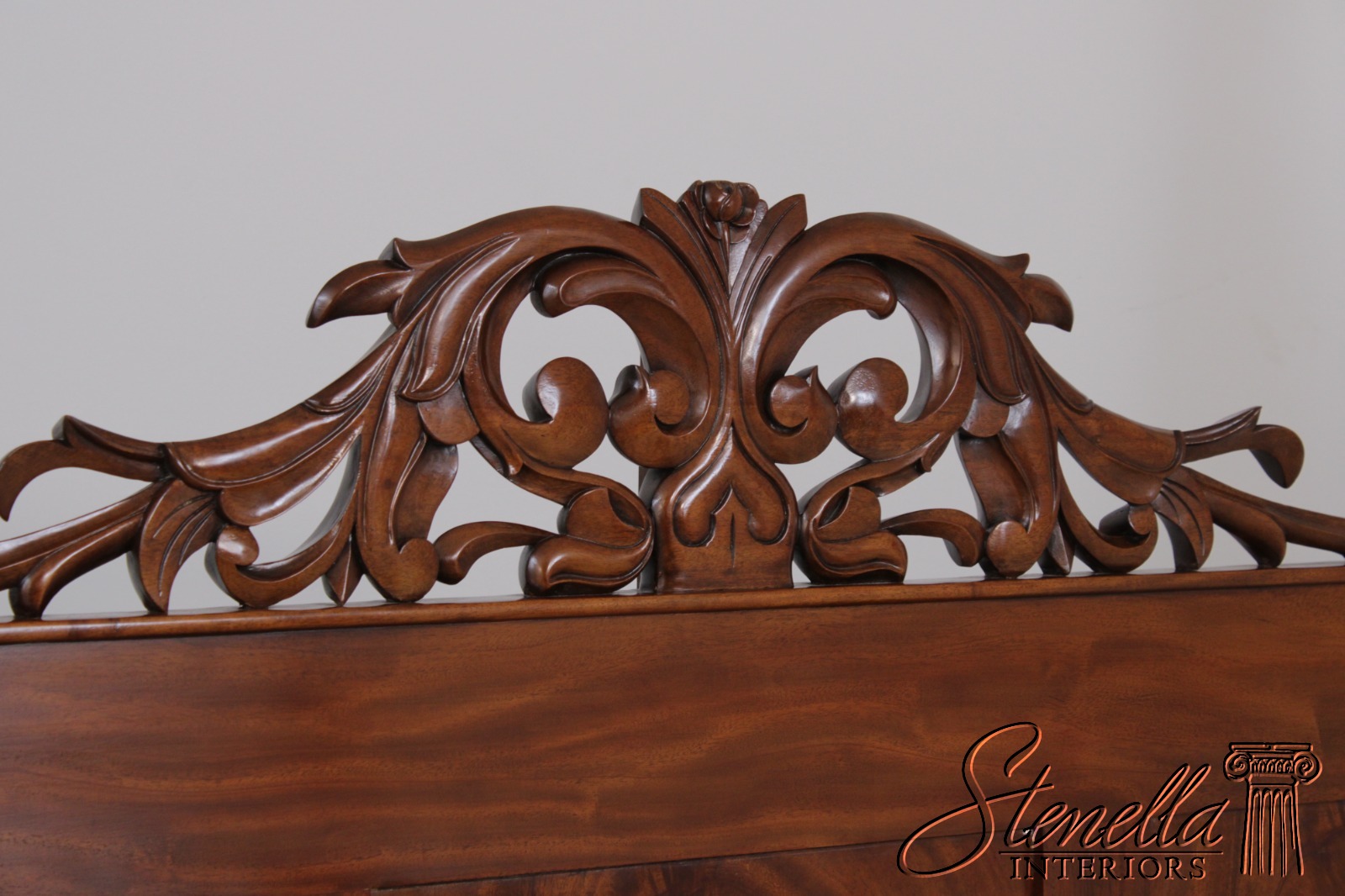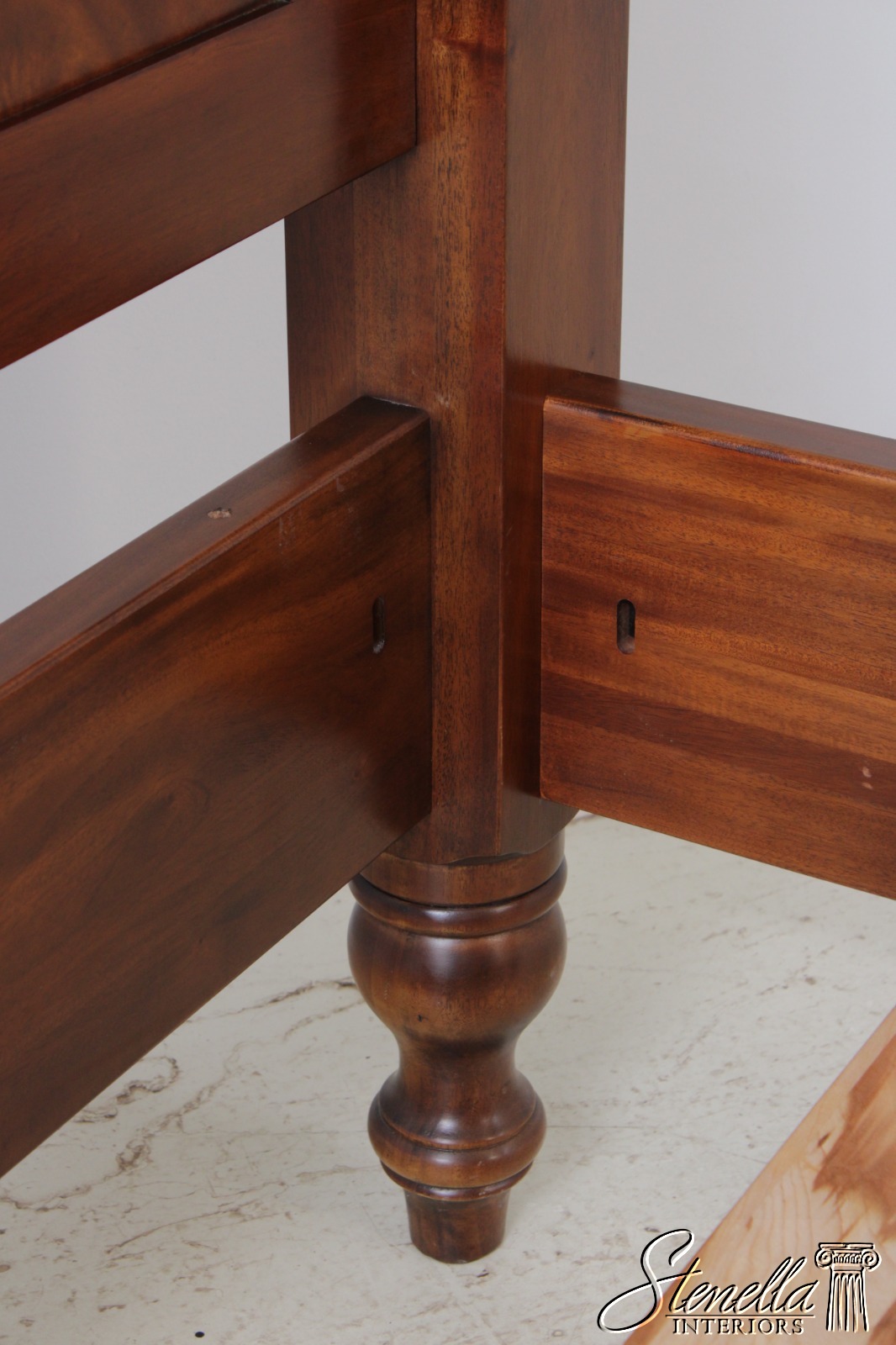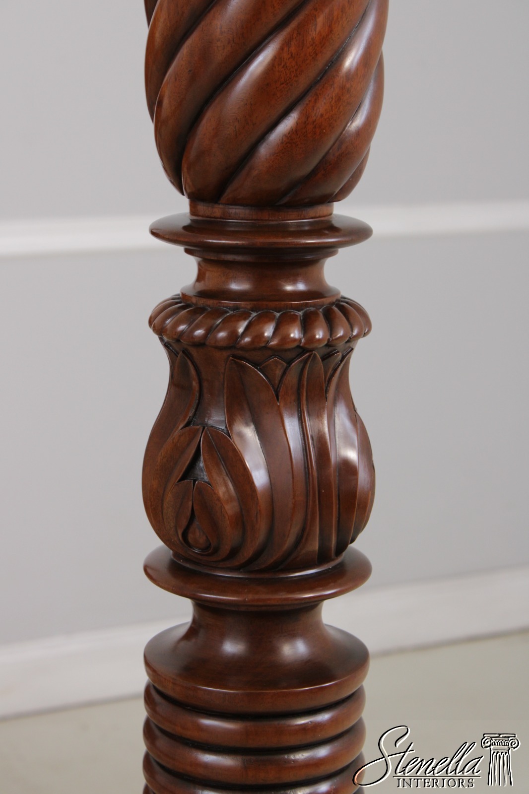 Details: Mahogany Fine Carved Details High Quality Construction Large Impressive Bed Figural Mahogany Headboard Twisted Posts Bolted Rail Construction Offered @ Fraction Original Retail Cost