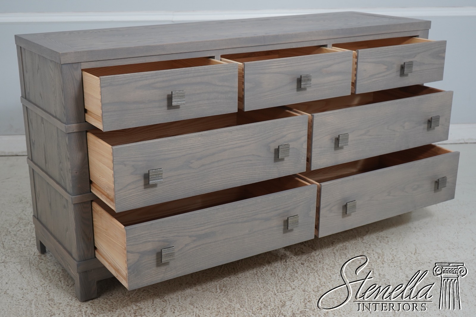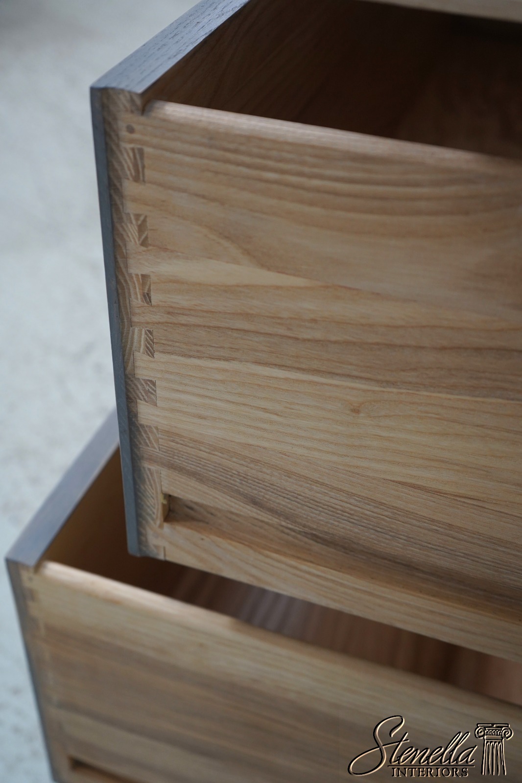 Details: Finish no.1001 Modern Style Dovetailed Drawer Construction High Quality Construction Gray Painted Wash Ash Finish See Other Offerings For Matching Nightstand Offered @ Fraction Original Retail Cost