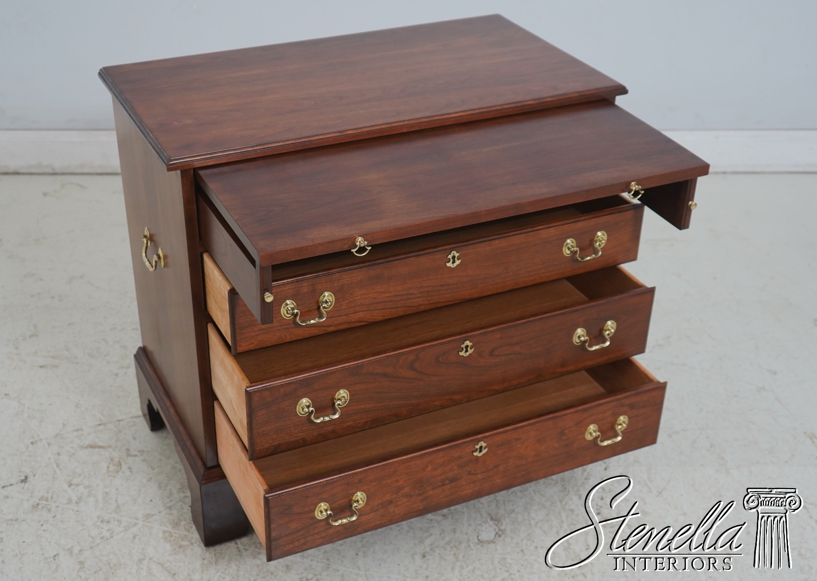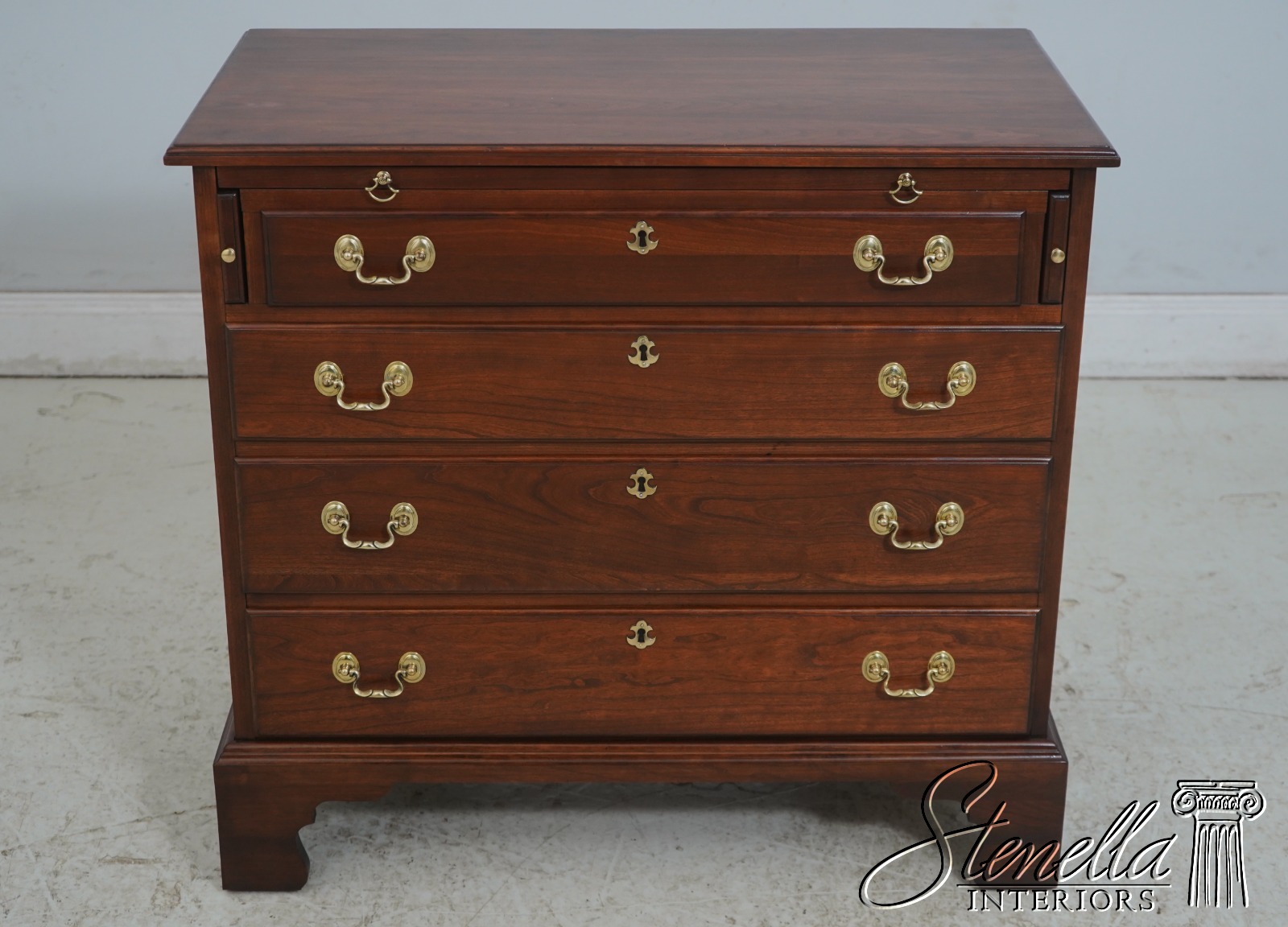 Details: Bracket Feet Dovetailed Drawer Construction Fine Carved Details High Quality Construction Rich High Sheen Finish Solid Brass Hardware Faux Key Hole Euscheons Pull Out Writing Surface Brushing 4 Drawers Offered @ Fraction Original Retail Cost