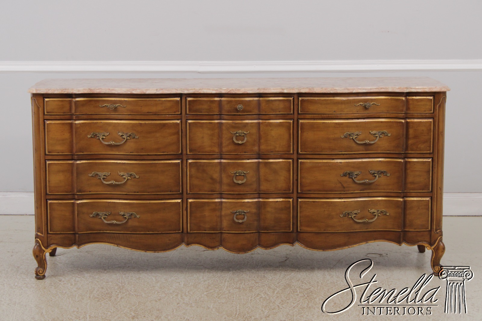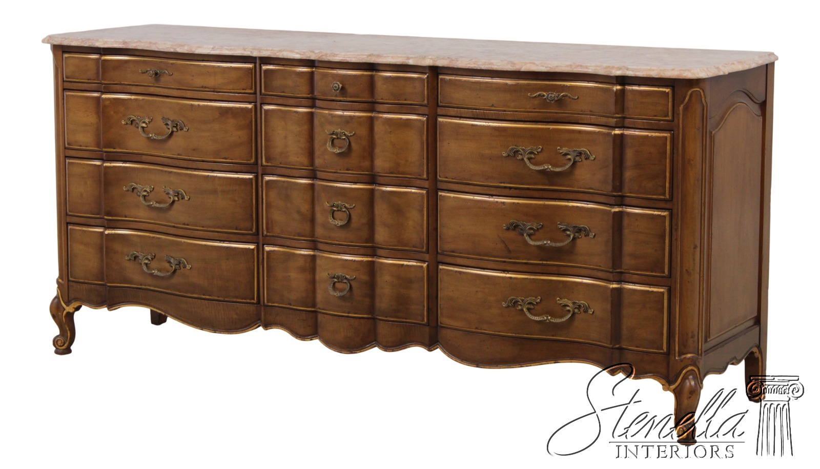 72573: Vintage French Provincial Mahogany Marble Top Dresser
