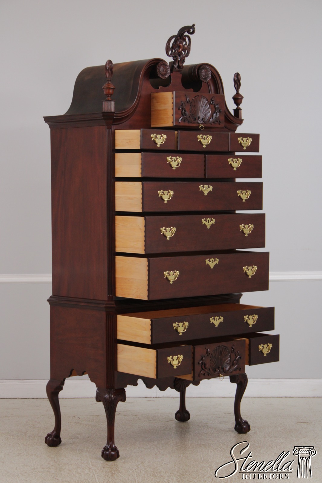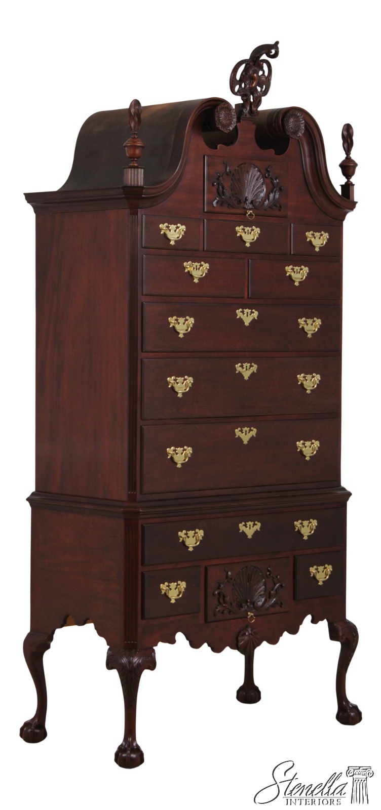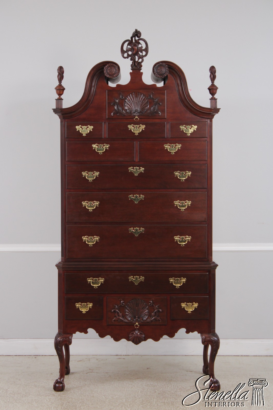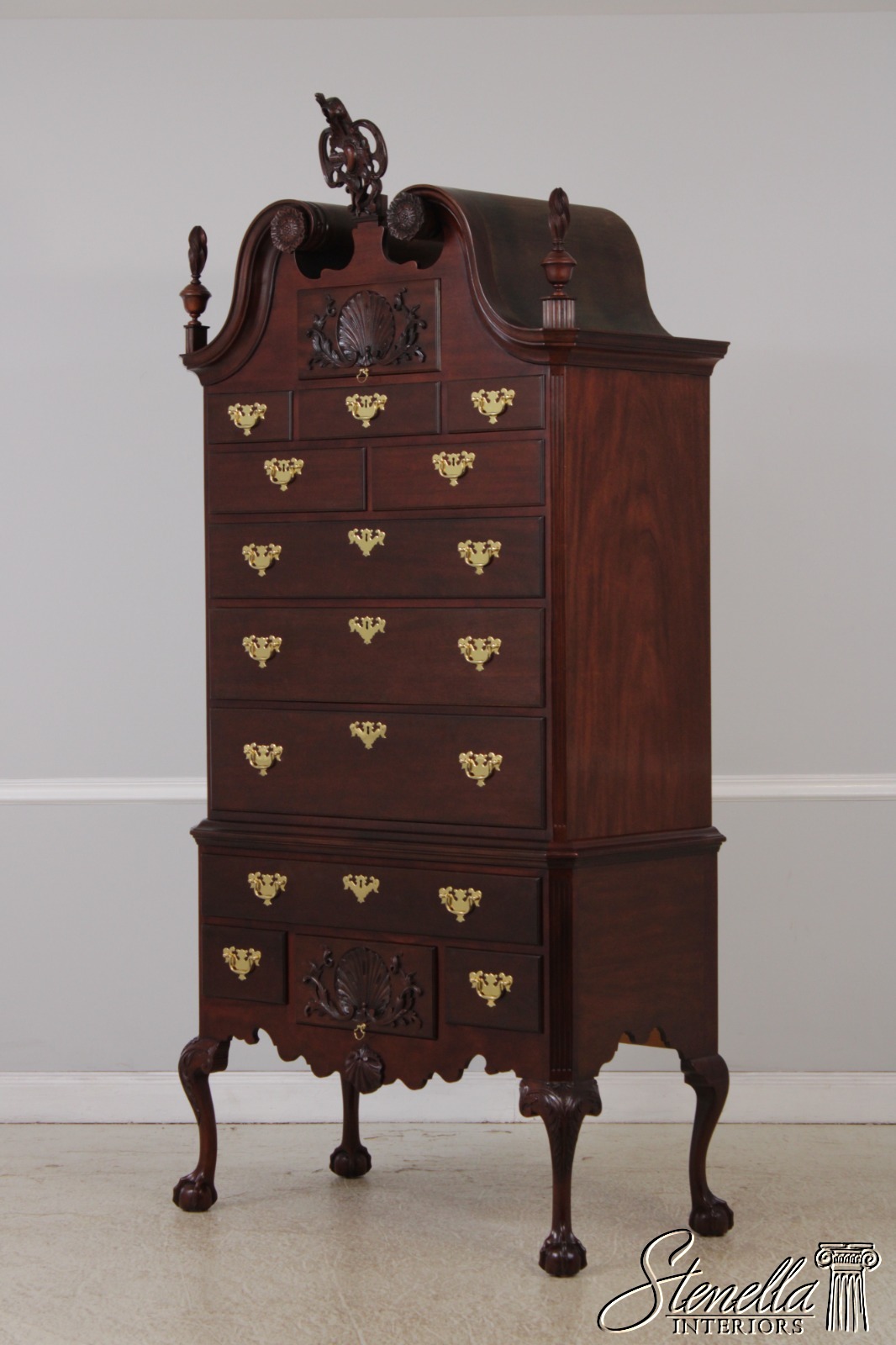 72594: BAKER Clawfoot Colonial Williamsburg Mahogany Highboy