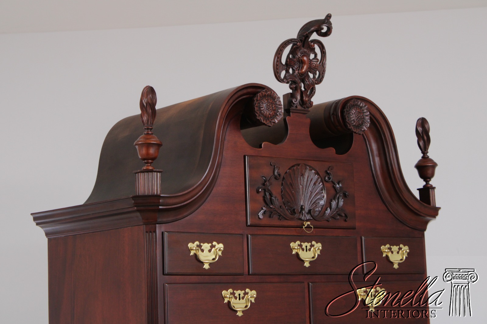 Details: Model 8807 Colonial Williamsburg 2 Piece Construction Dovetailed Drawer Construction High Quality Construction Large Impressive Chest Pediment Top w. Finials 18 C. Design Chippendale Style Pine Secondary Drawer Construction Rare Model Traditional Style Enclosed Bonnet Top Offered @ Fraction Original Retail Cost