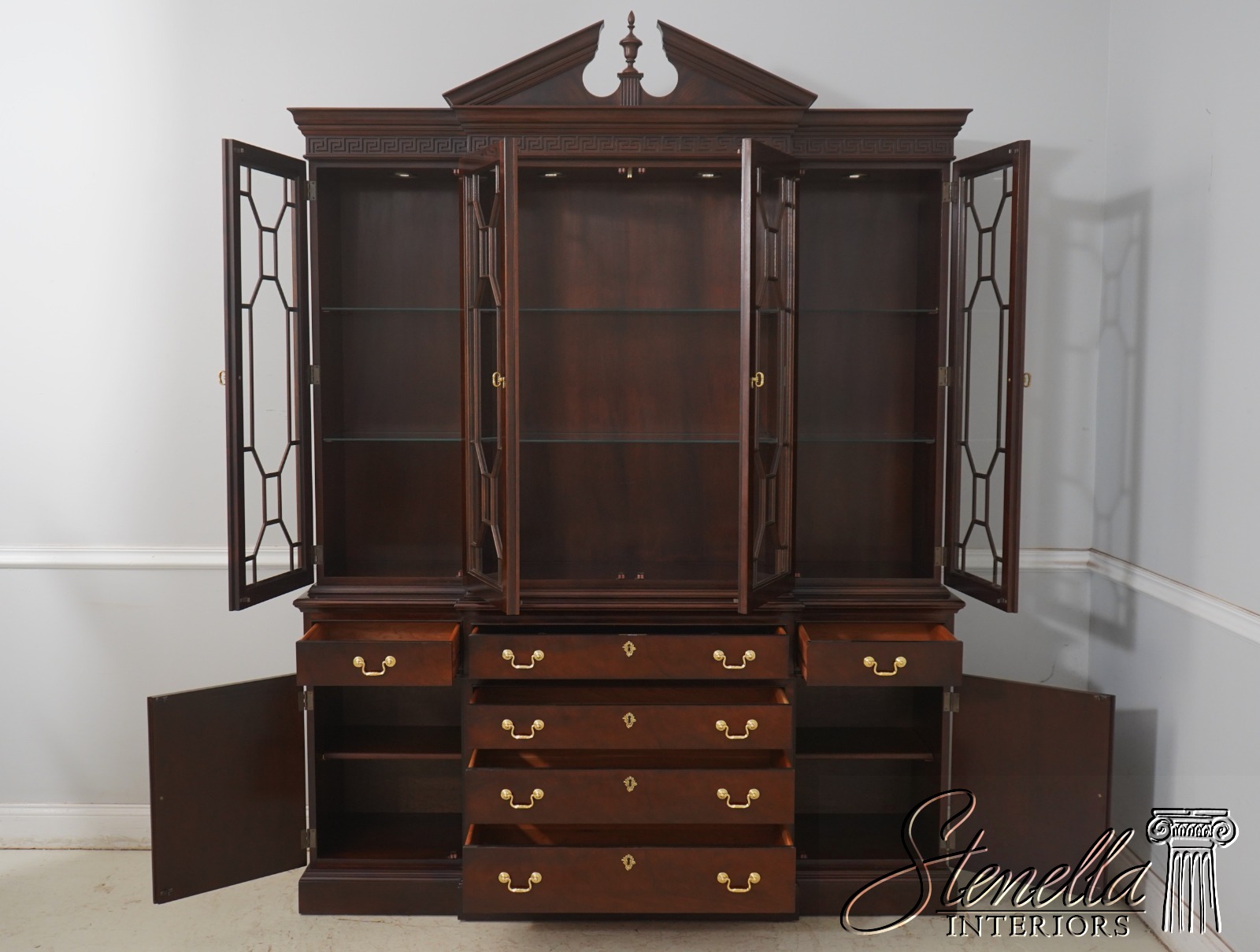 65746: STICKLEY Chippendale Style 4 Door Mahogany Breakfront