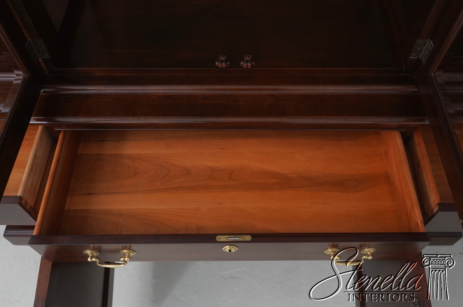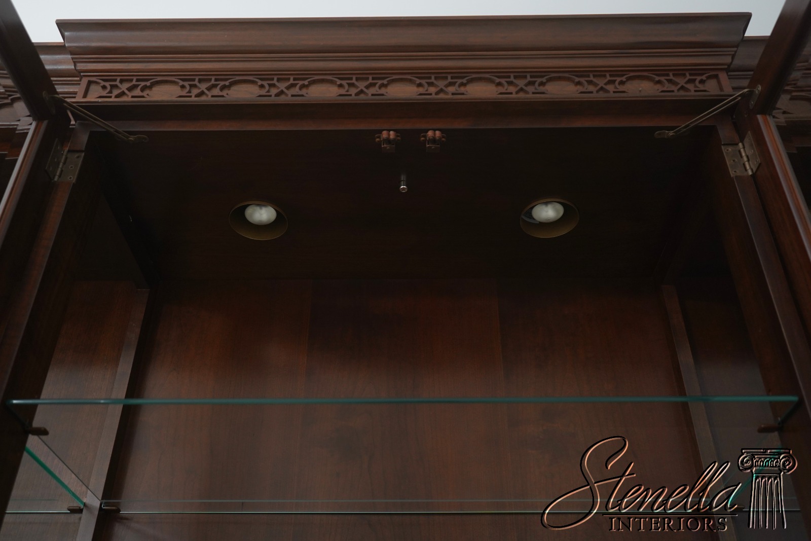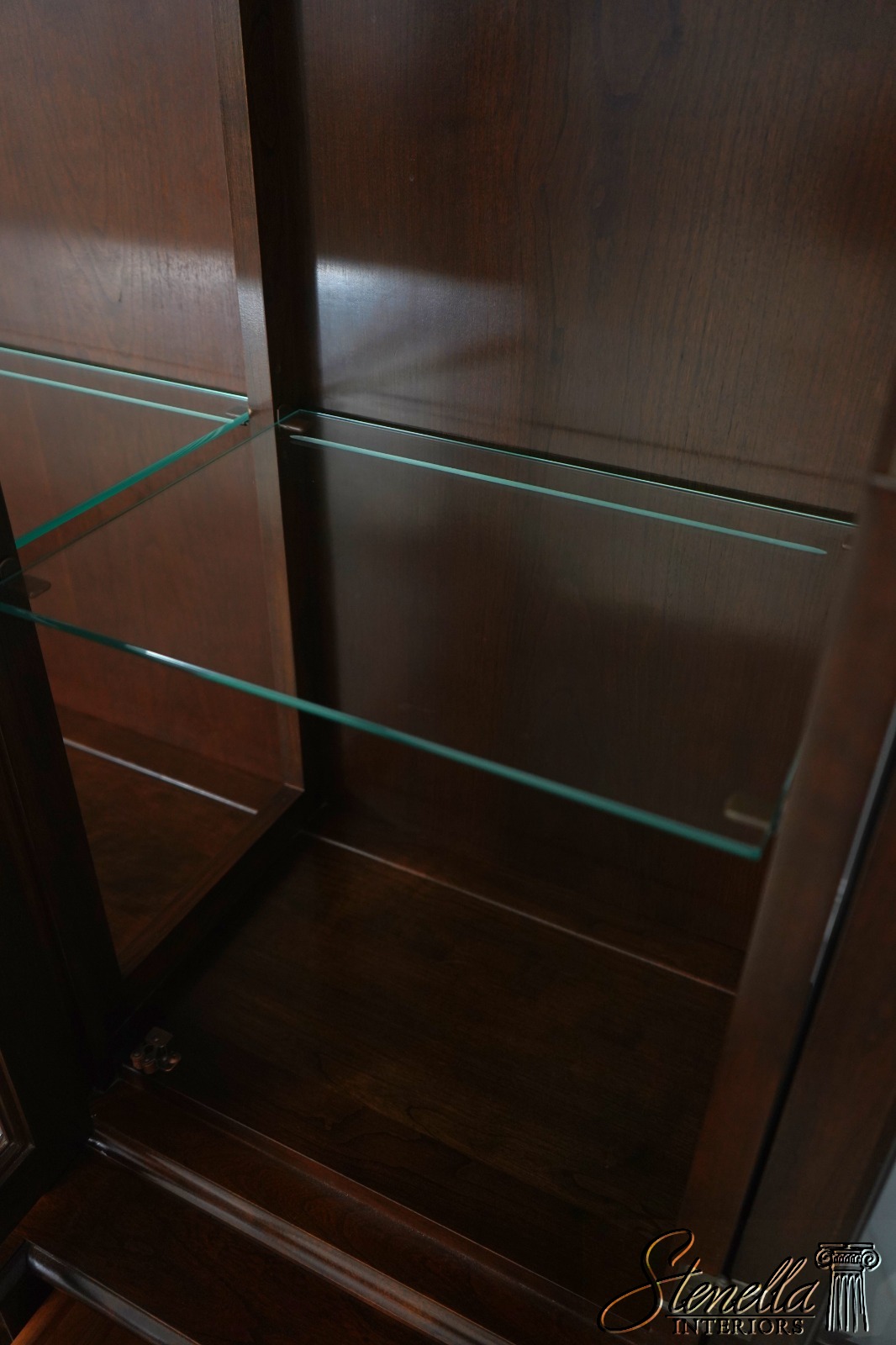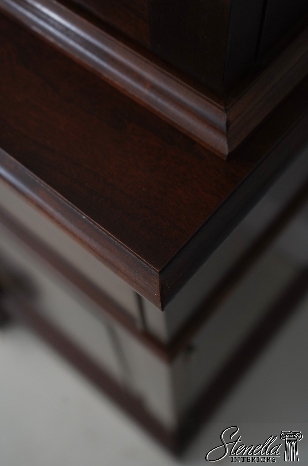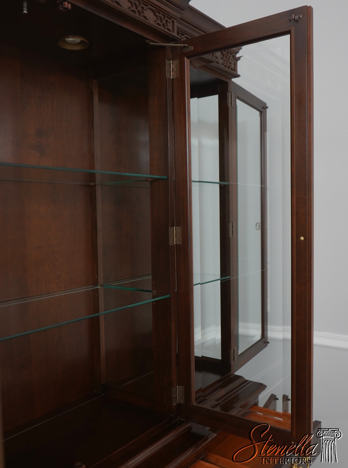 Details: Finish no.14 2 Piece Construction Adjustable Shelves Beveled Glass Dovetailed Drawer Construction High Quality Construction Raised Panel Doors Traditional Style Solid Brass Hardware Carved Lattice Crown Molding Offered @ Fraction Original Retail Cost