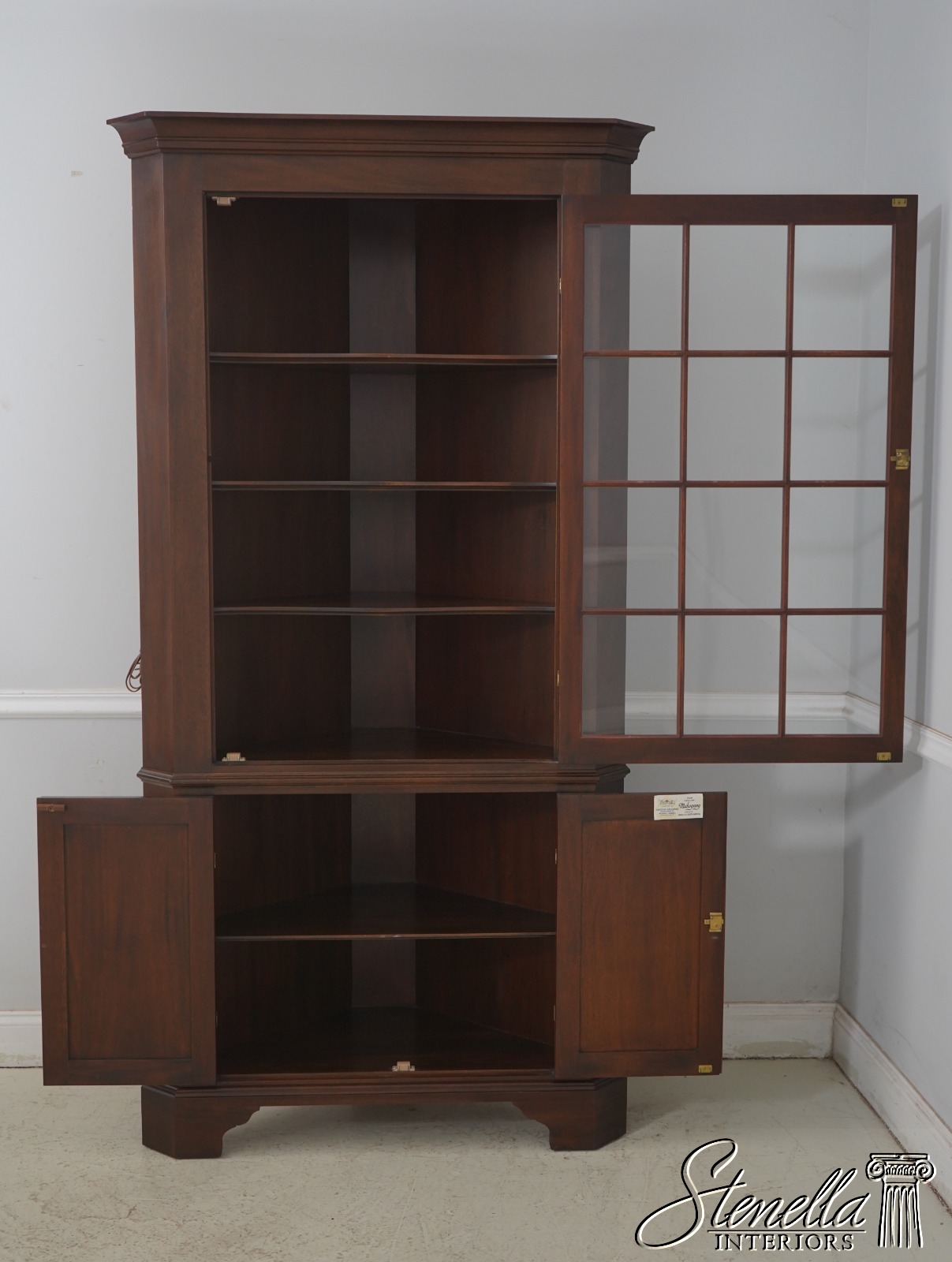 68199: HENKEL HARRIS Mahogany 12 Pane Corner China Cabinet