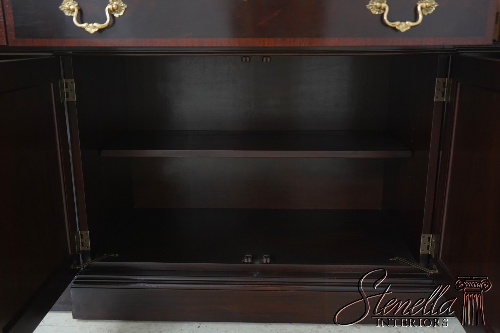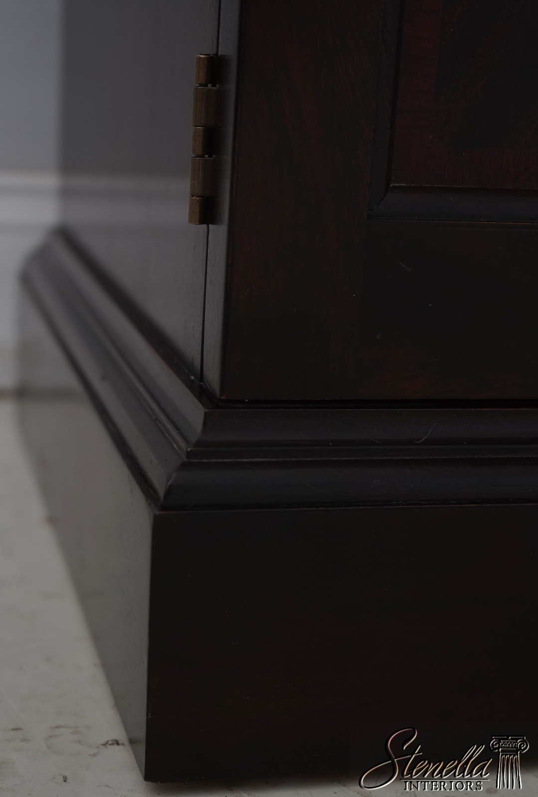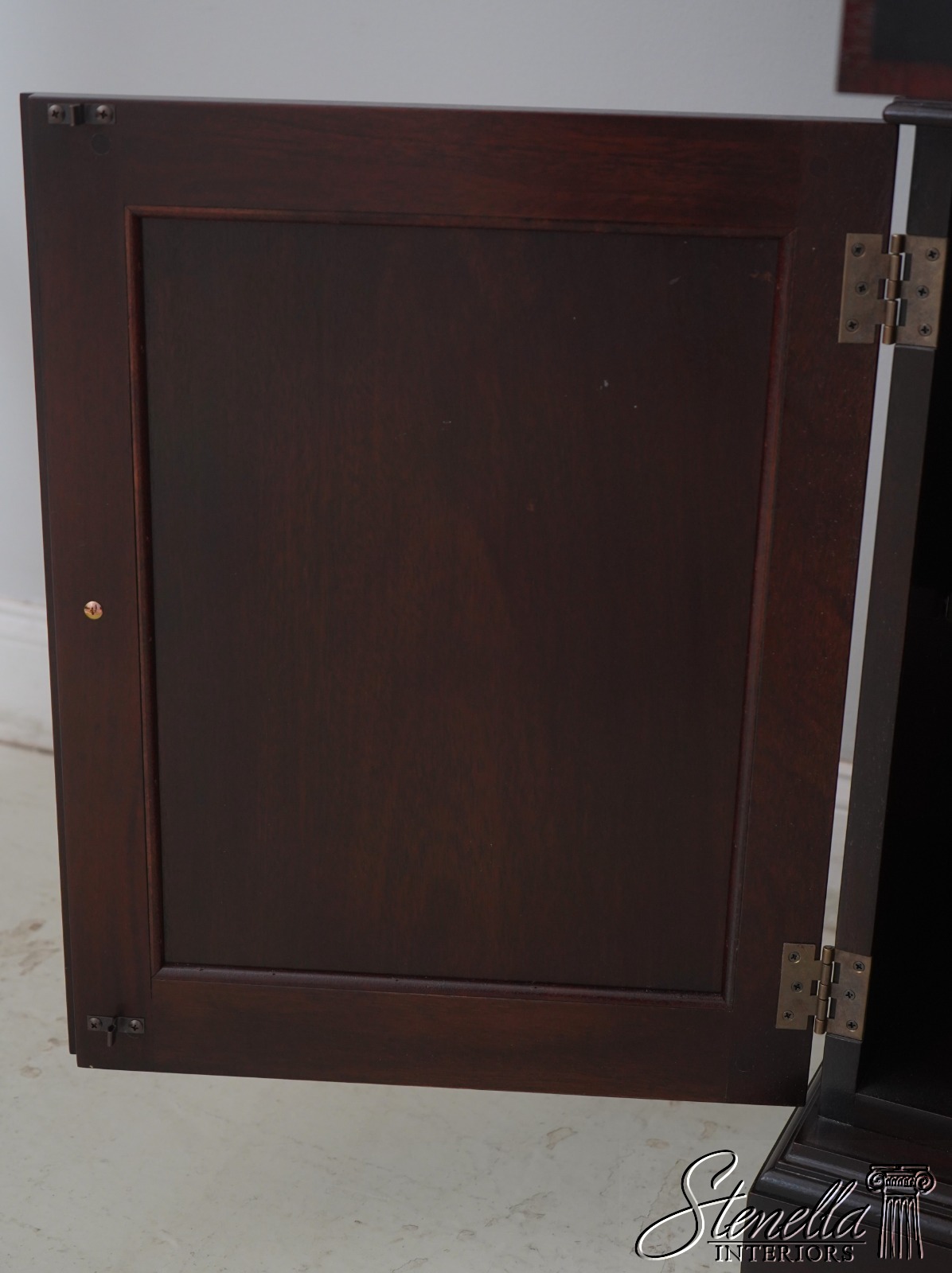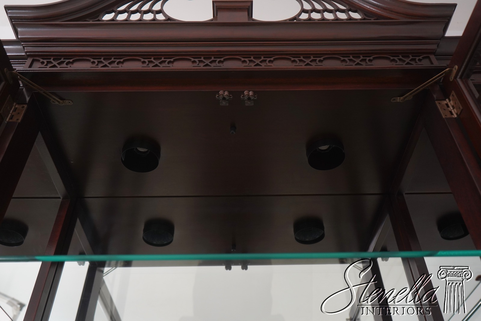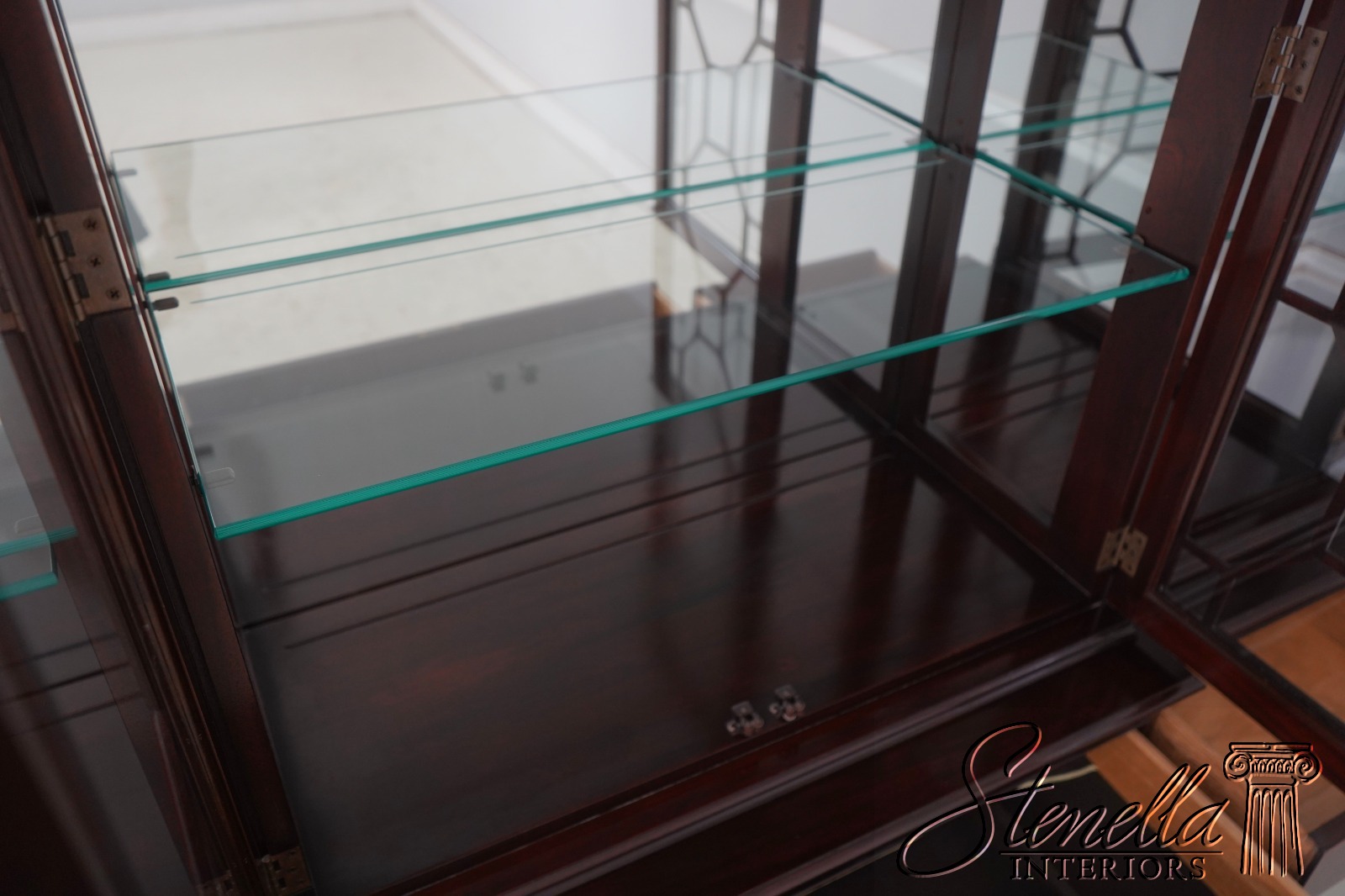 Details: Finish No.1 Mahogany Adjustable Shelves Dovetailed Drawer Construction Fine Carved Details High Quality Construction Large Impressive Cabinet Lighted Interior Mirrored Back Nice Inlay Work Throughout Pediment Top Raised Panel Doors Individual Pane Glass Doors Rich High Sheen Finish 18 C. Design Traditional Style Solid Brass Hardware Figural Mahogany Cabinet Doors 2 Piece Construction Felt Lined Drawer Key Locking w. Key Offered @ Fraction Original Retail Cost