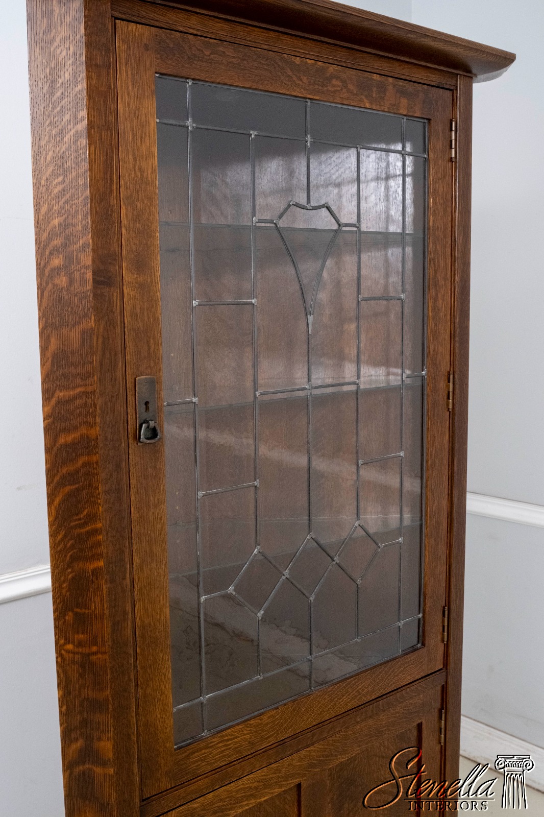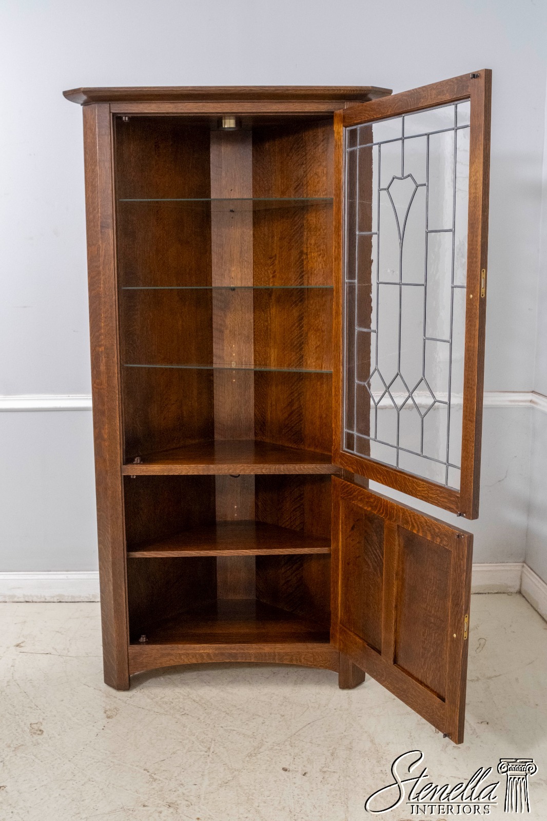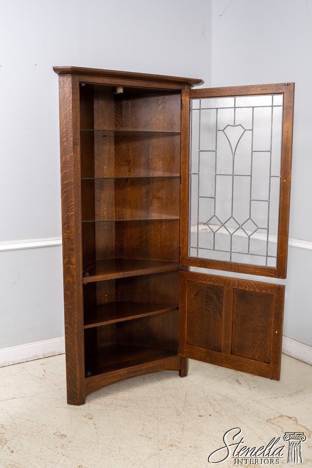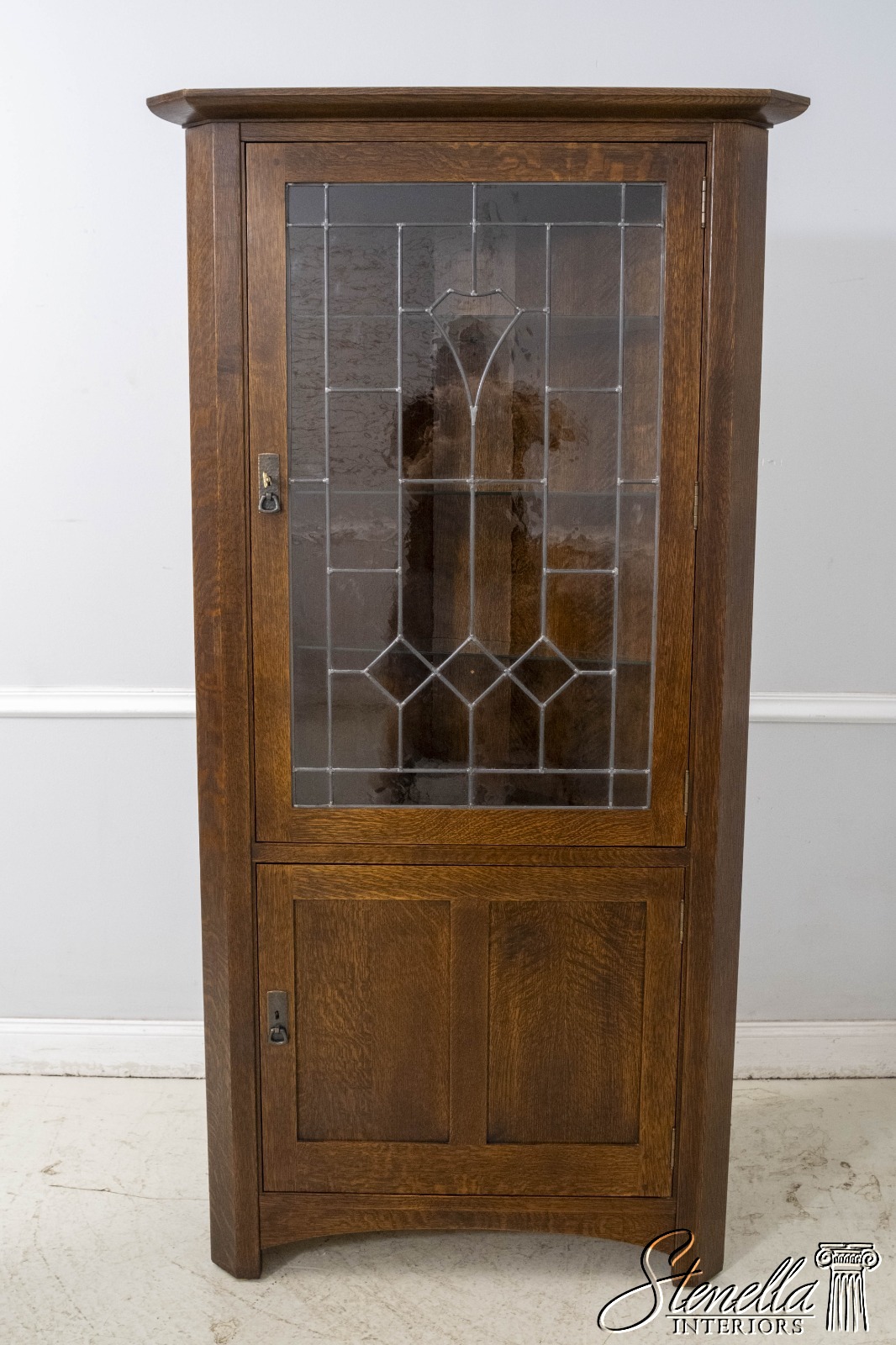 70238: STICKLEY Leaded Glass Mission Oak Corner China Cabinet
