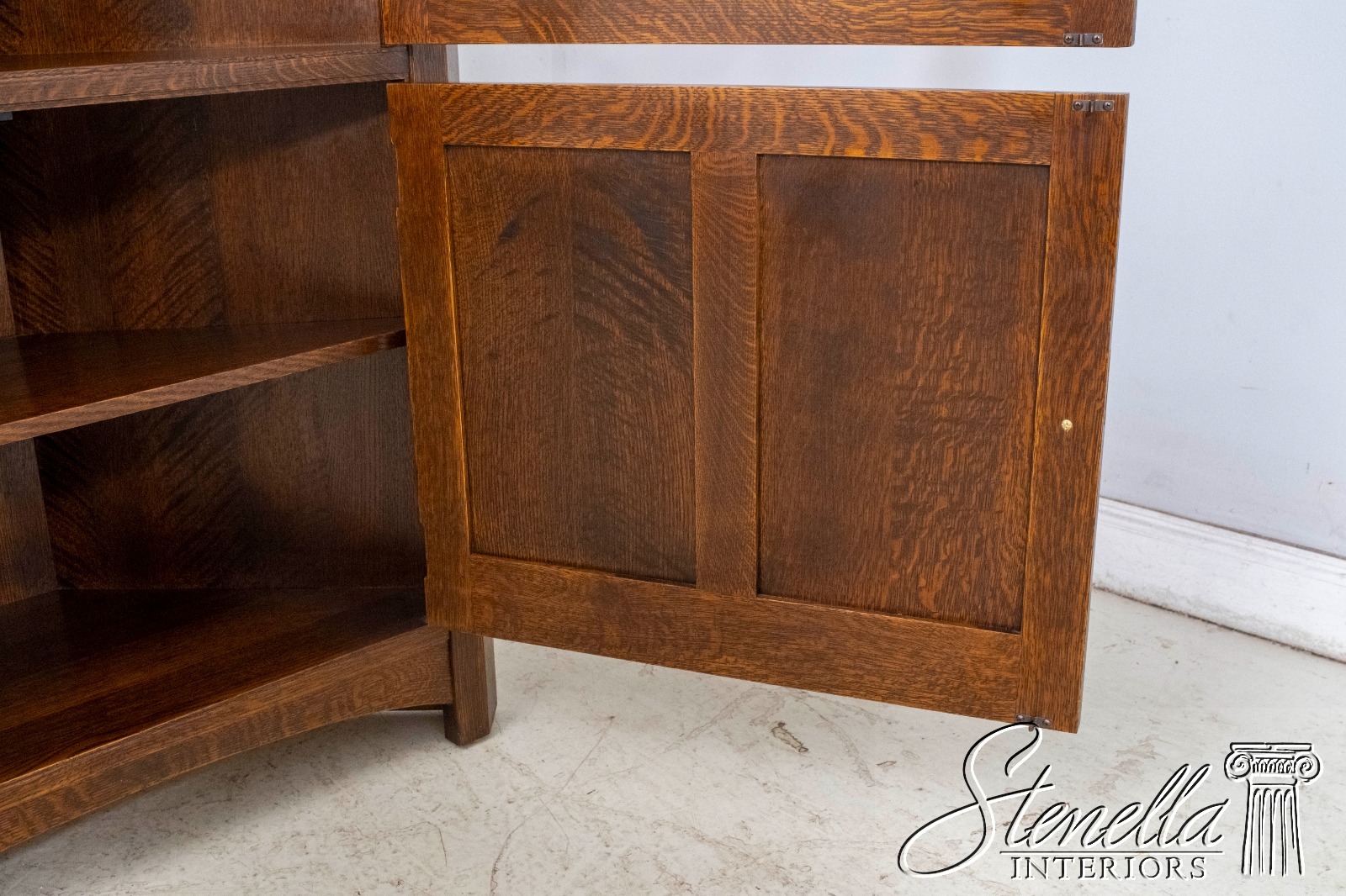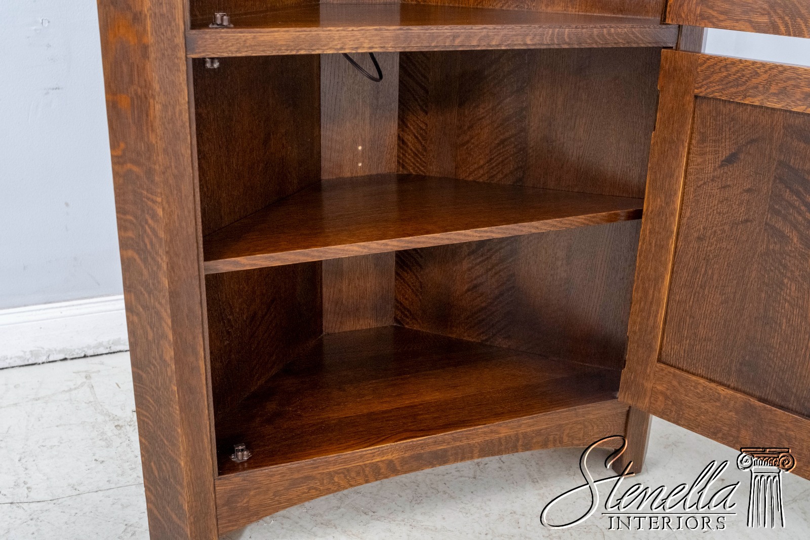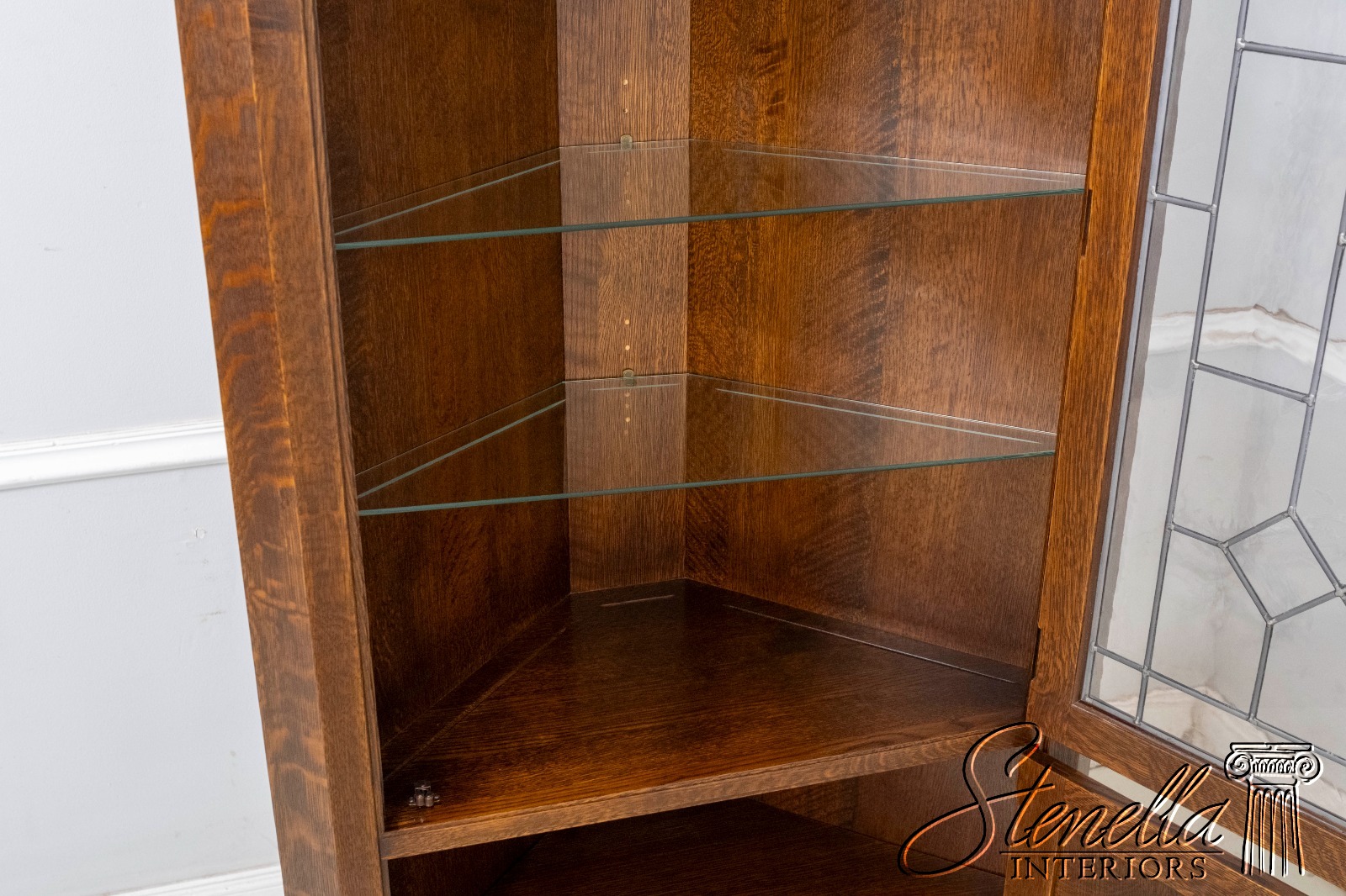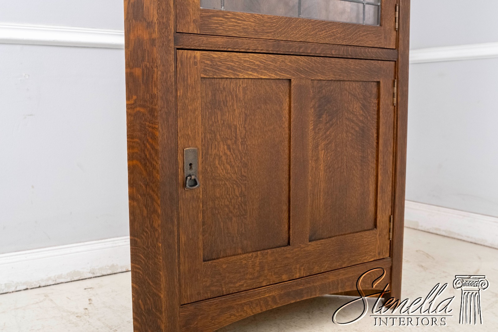 70238: STICKLEY Leaded Glass Mission Oak Corner China Cabinet