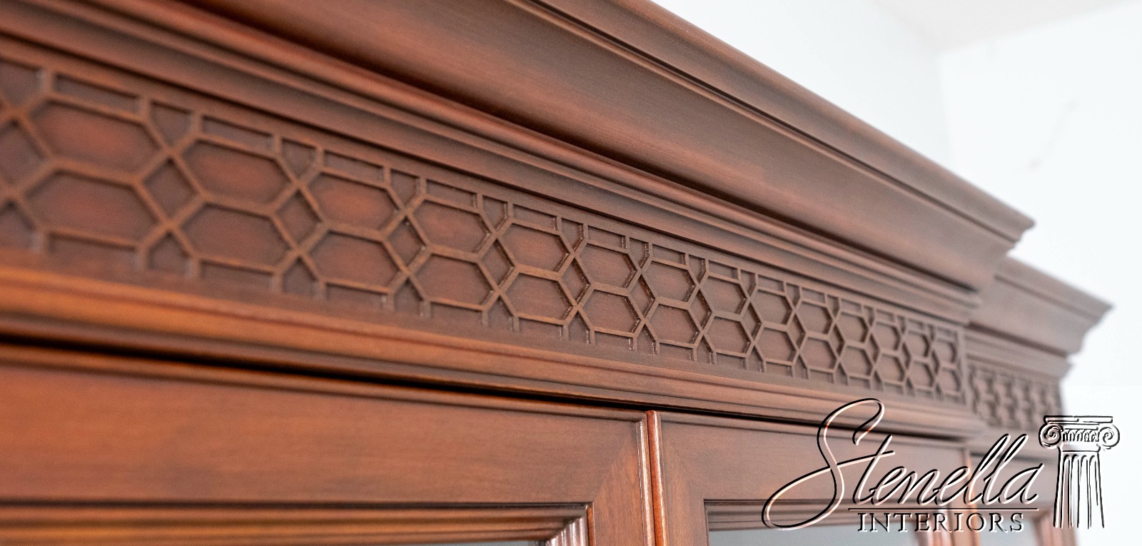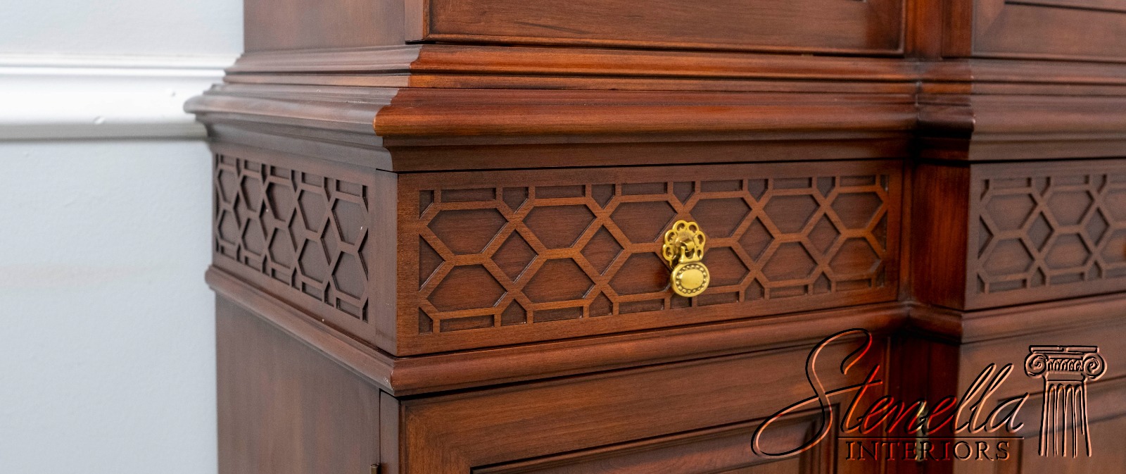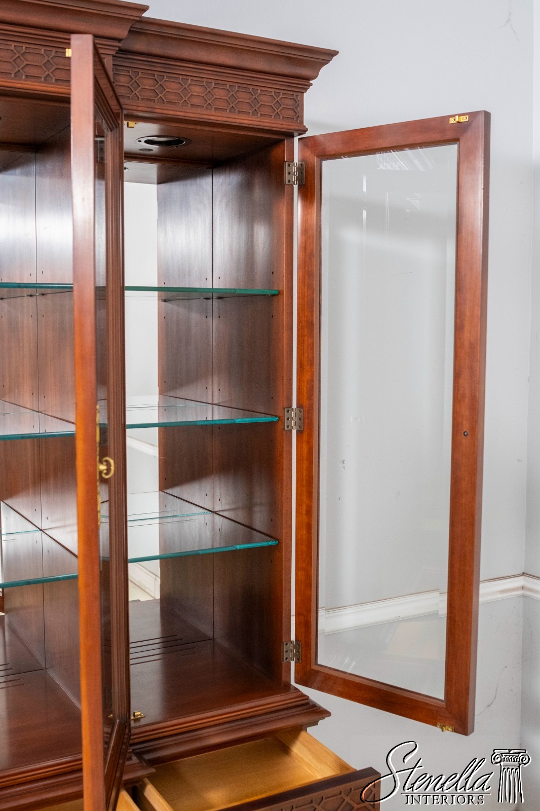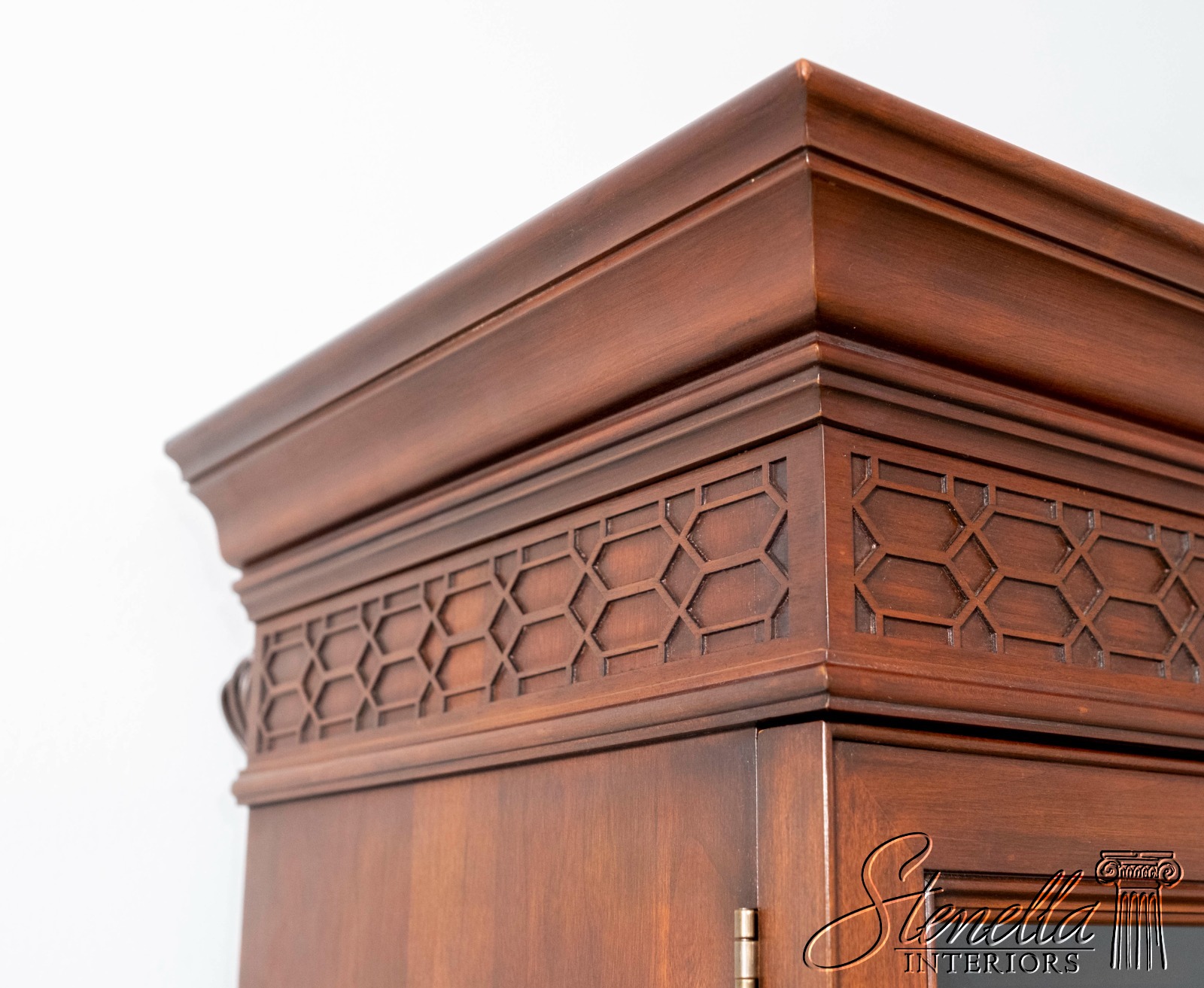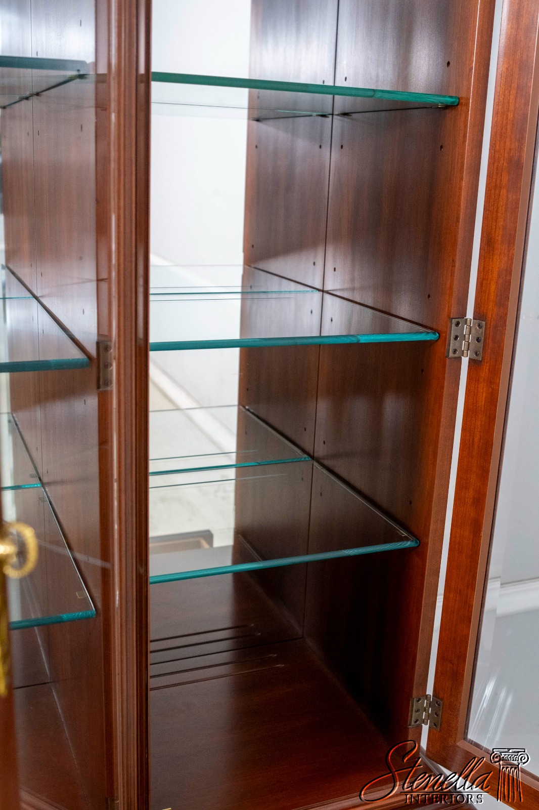 Details: Finish no.24 Model 2386 Cherry Adjustable Shelves Dovetailed Drawer Construction Fine Carved Details High Quality Construction Large Impressive Cabinet Lighted Interior Mirrored Back Raised Panel Doors Individual Pane Glass Doors Solid Brass Hardware Offered @ Fraction Original Retail Cost