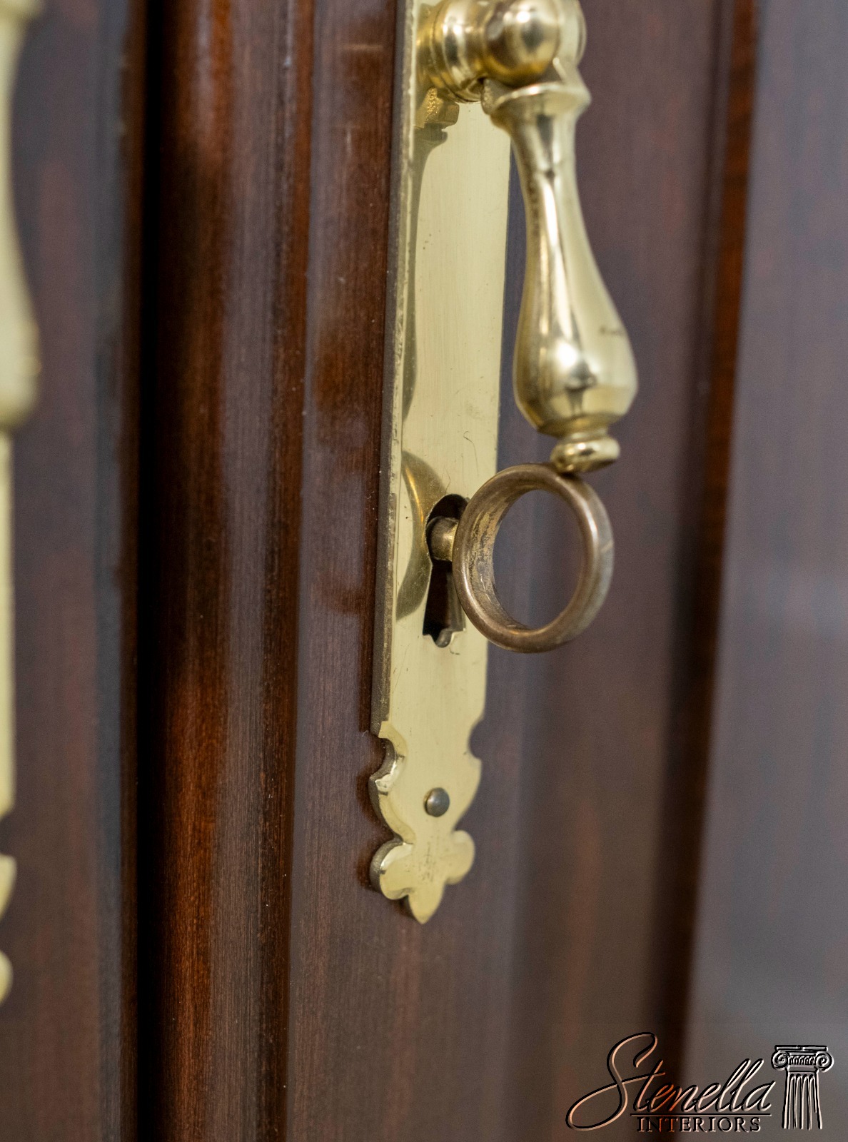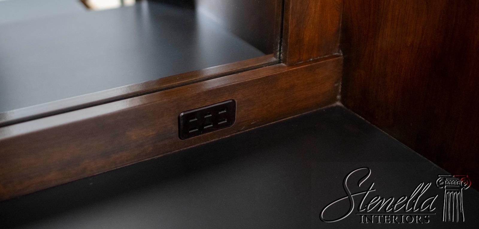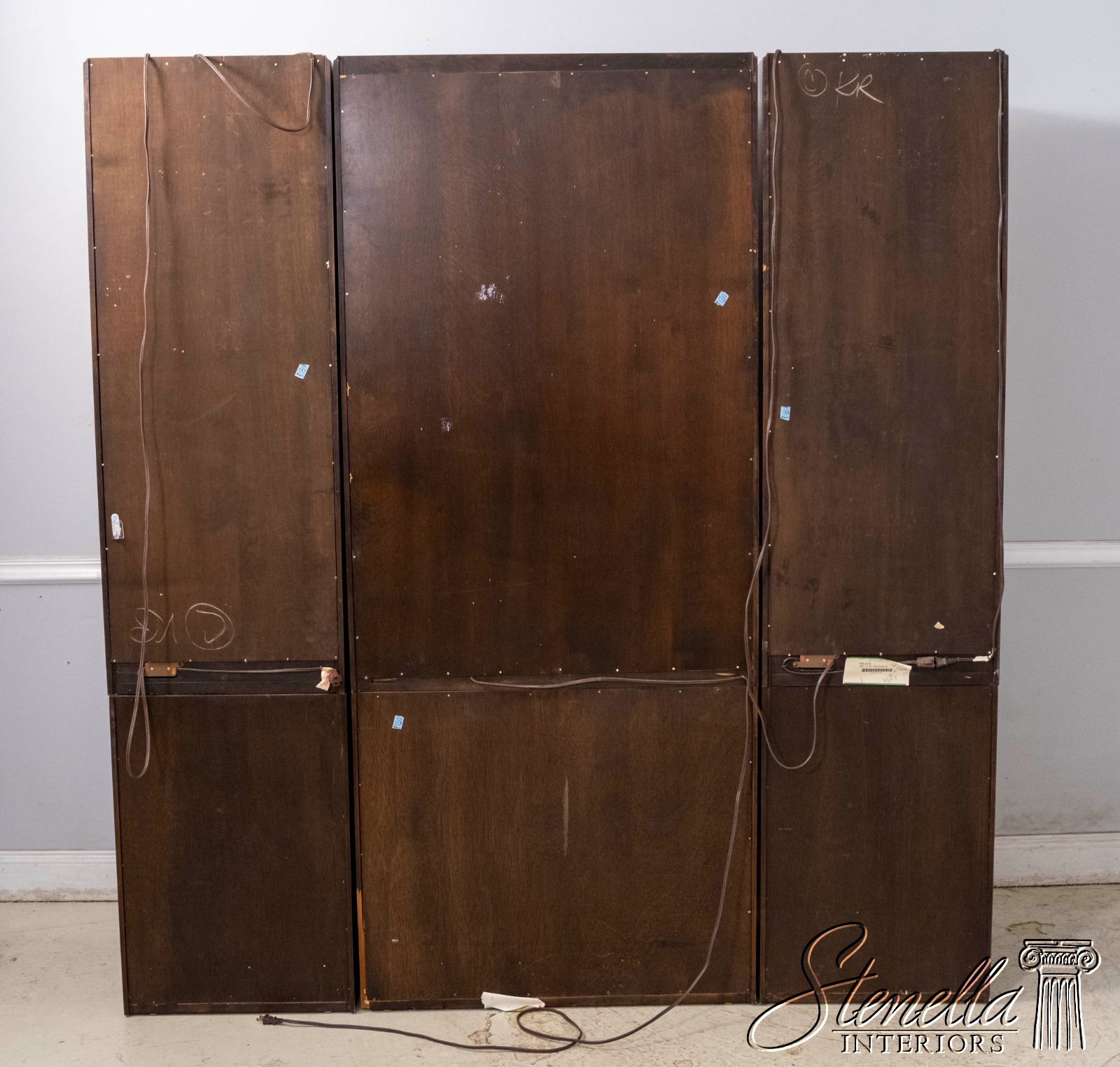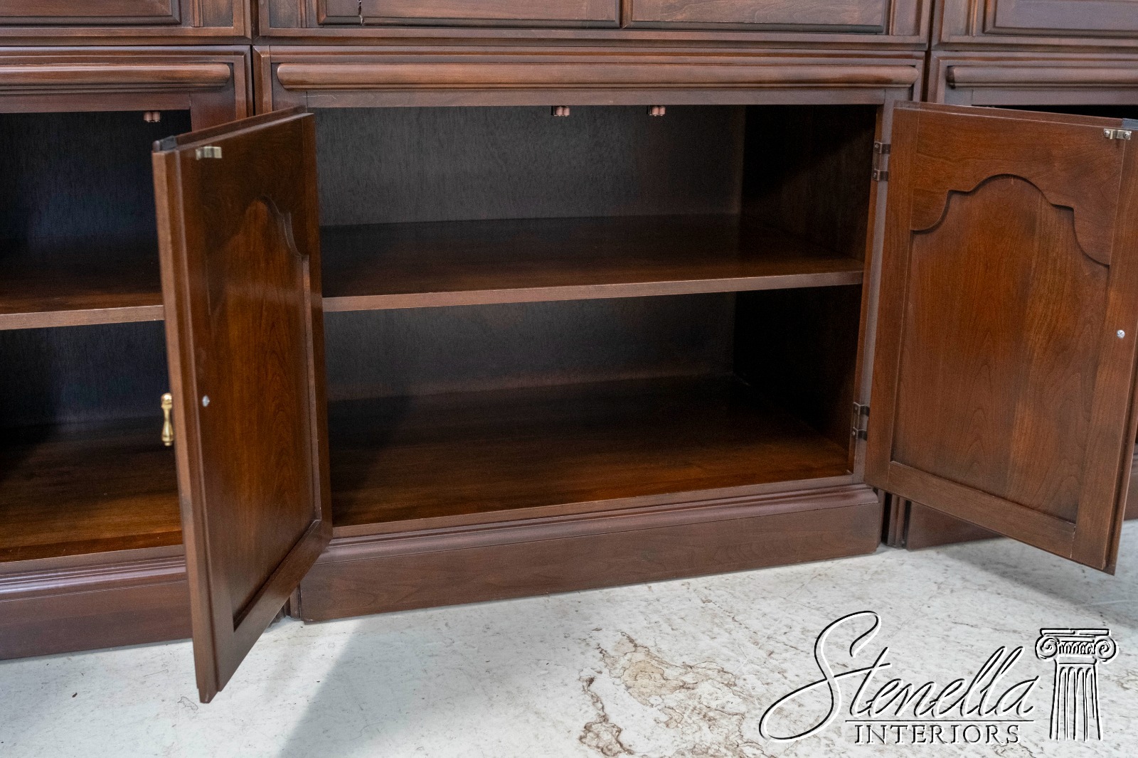 Details: Cherry Dovetailed Drawer Construction Adjustable Shelves High Quality Construction Large Impressive Cabinet Lighted Interior Mirrored Back Interior Center Raised Panel Doors Individual Pane Glass Doors Solid Brass Hardware Wired Outlet Inside Key Locking w. Key Pull Out Surface