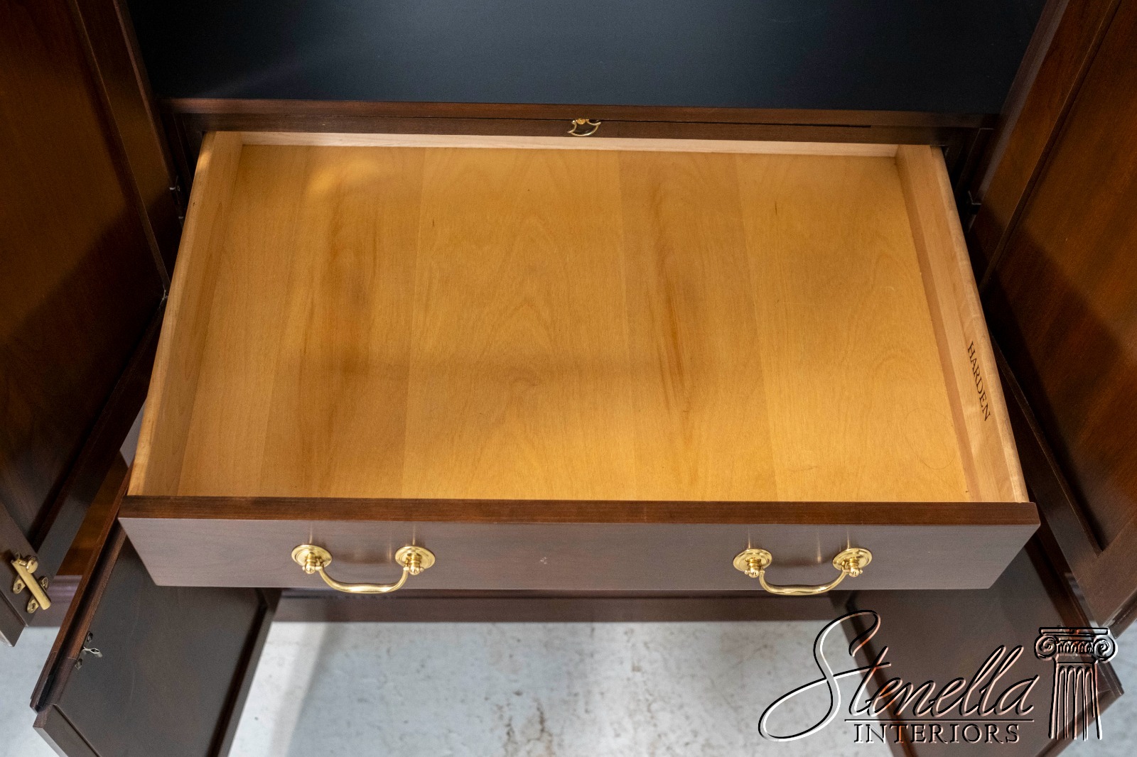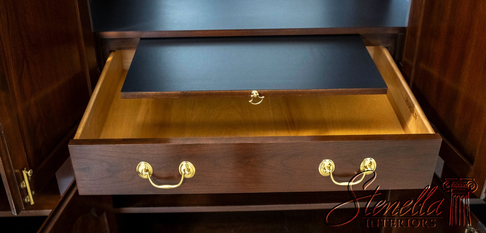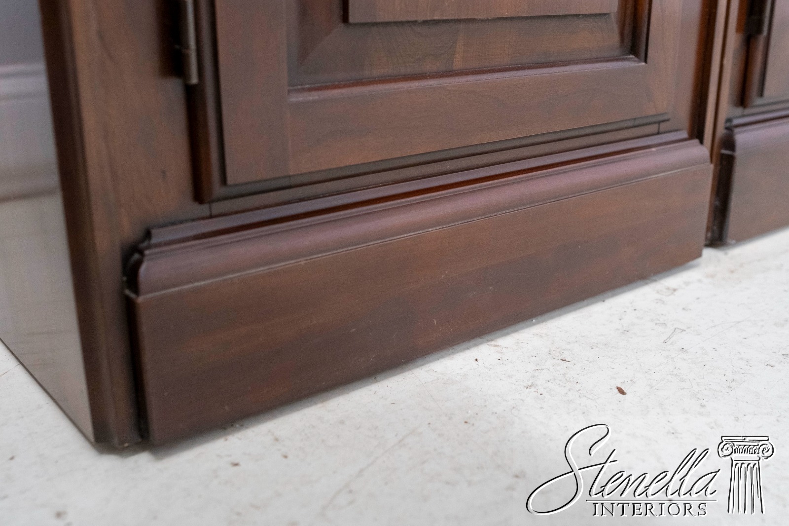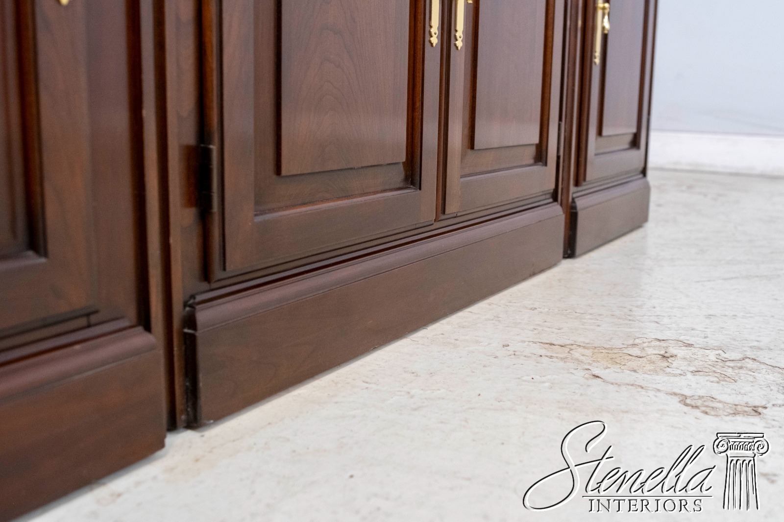Details: Cherry Dovetailed Drawer Construction Adjustable Shelves High Quality Construction Large Impressive Cabinet Lighted Interior Mirrored Back Interior Center Raised Panel Doors Individual Pane Glass Doors Solid Brass Hardware Wired Outlet Inside Key Locking w. Key Pull Out Surface