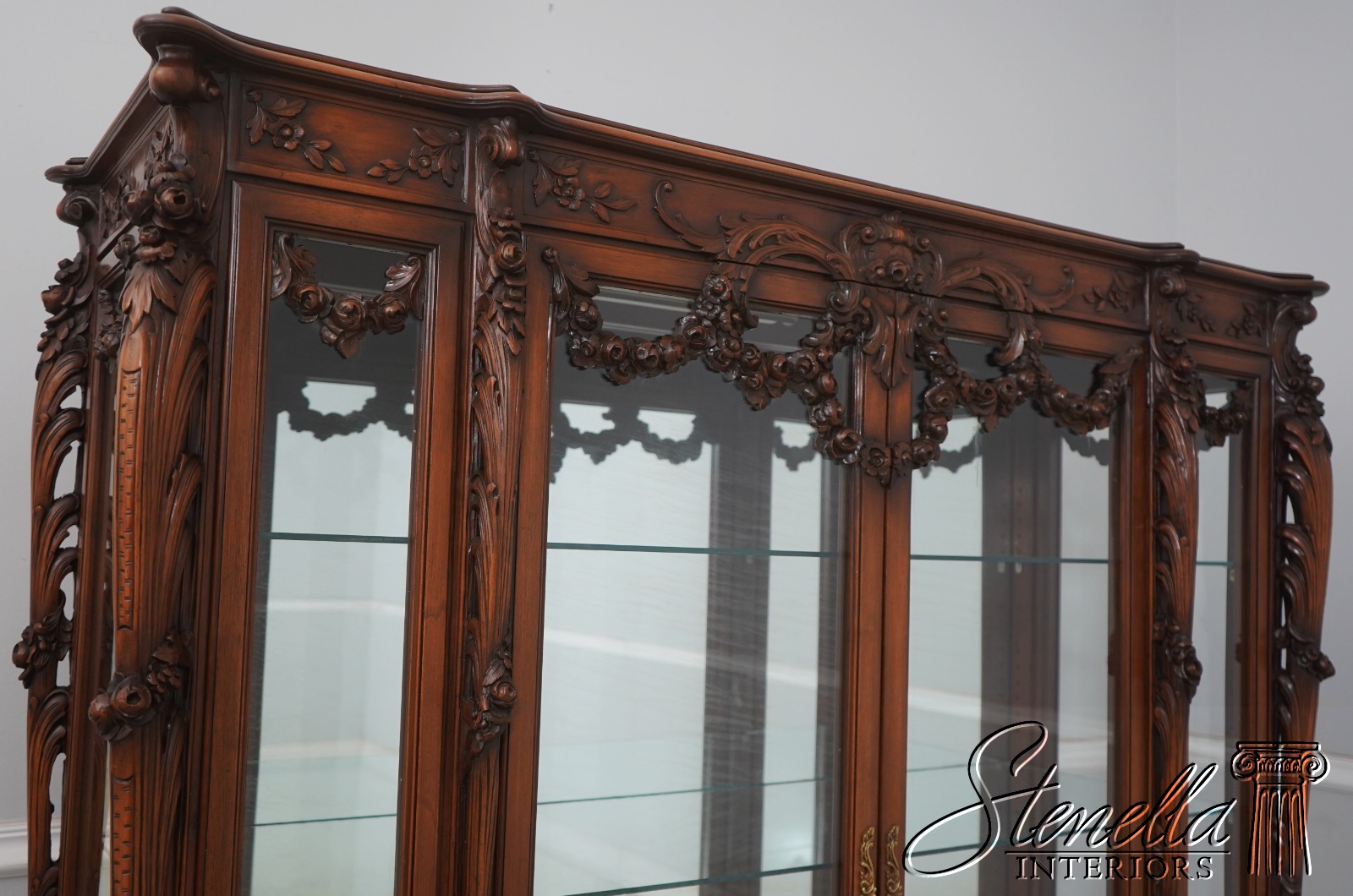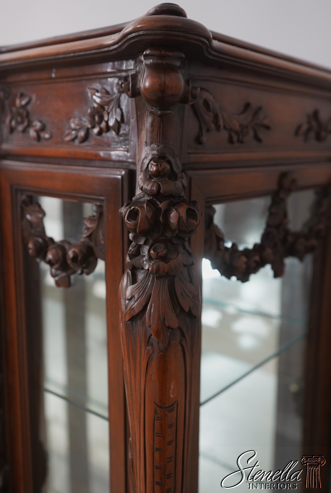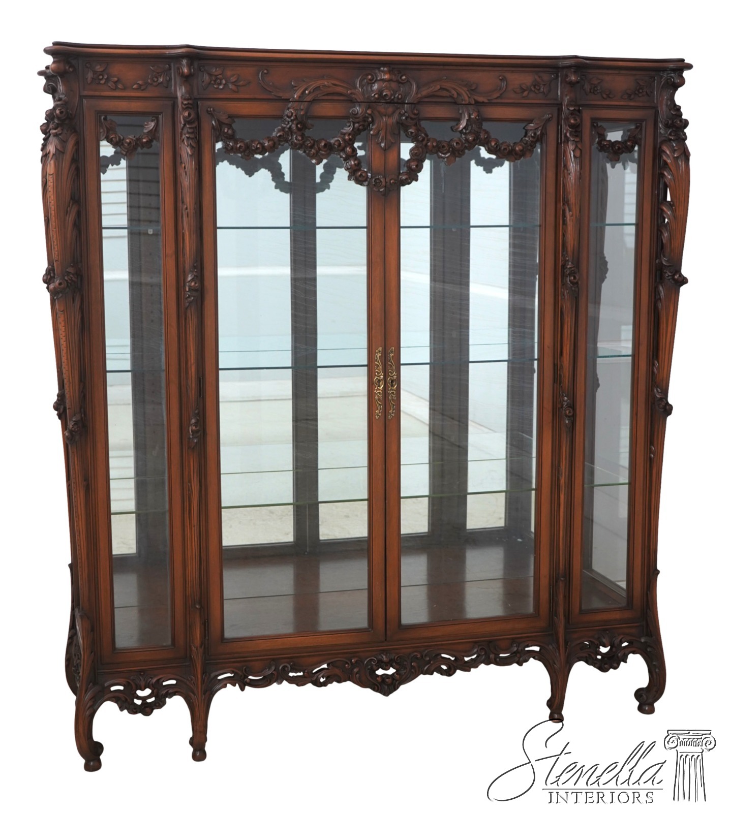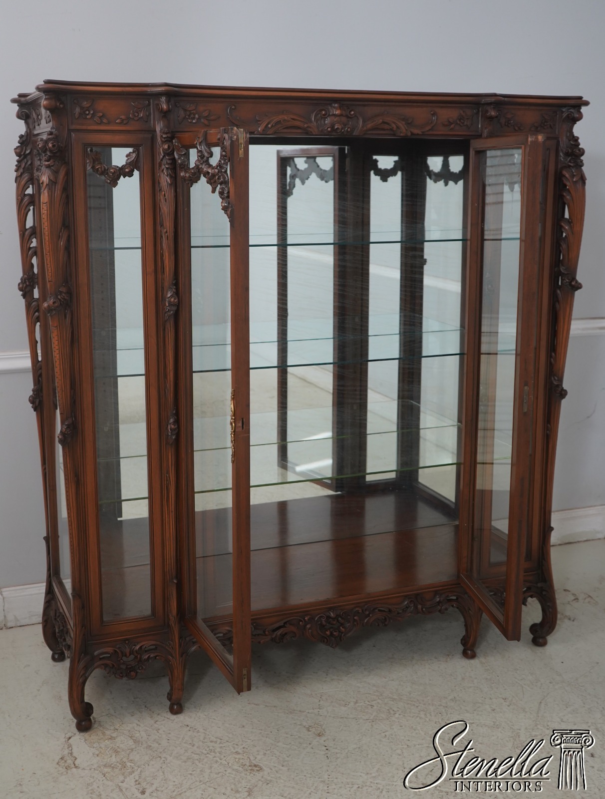 70670: French Rococo Carved Walnut Curio Display Cabinet Vitrine