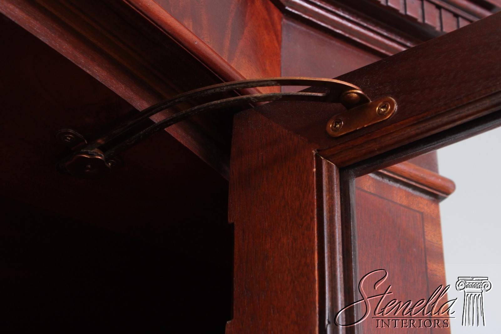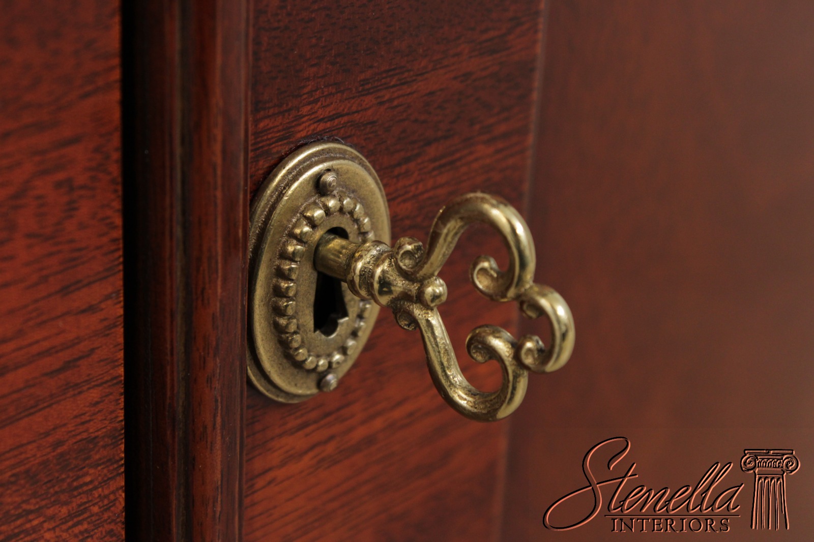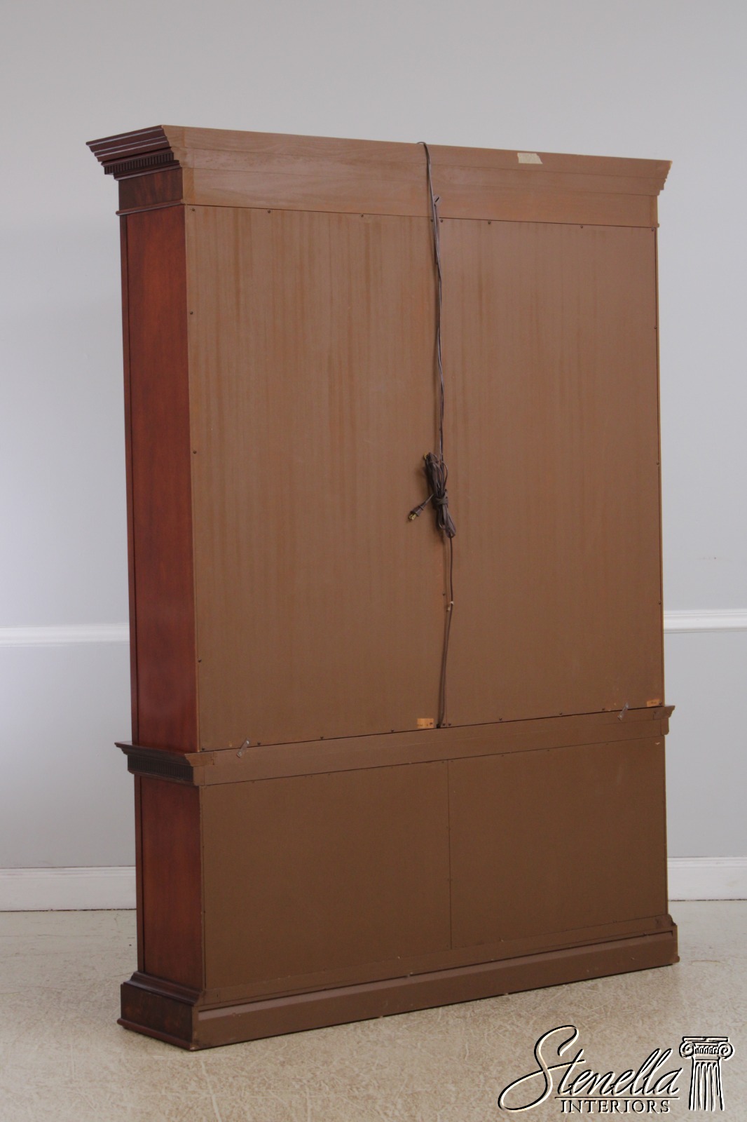 Details: Historic Charleston Collection Mahogany Adjustable Shelves High Quality Construction Large Impressive Cabinet Lighted Interior Nice Inlay Work Throughout Raised Panel Doors Reddish Mahogany Finish Dentil Crown Molding Solid Brass Hardware Key Locking w. Key 2 Pieces Offered @ Fraction Original Retail Cost