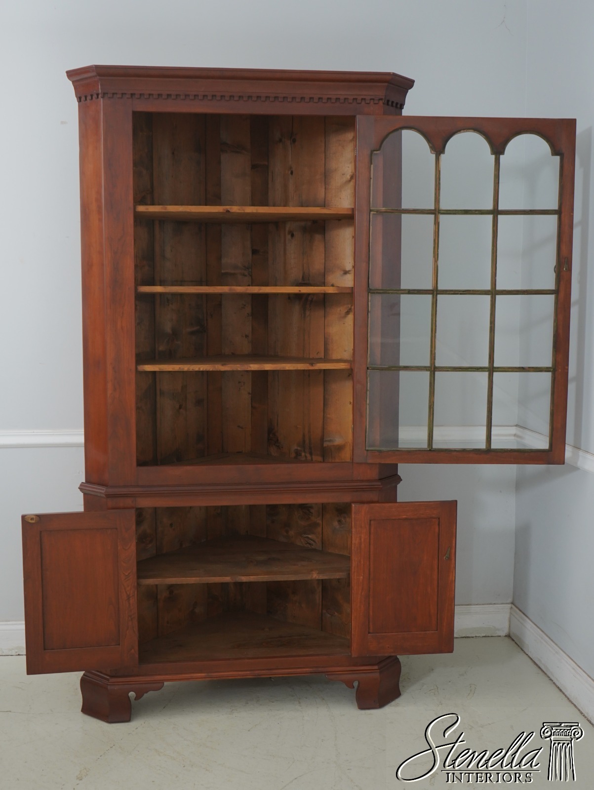 F69055: Antique American Cherry Country Chippendale Corner Cabinet
