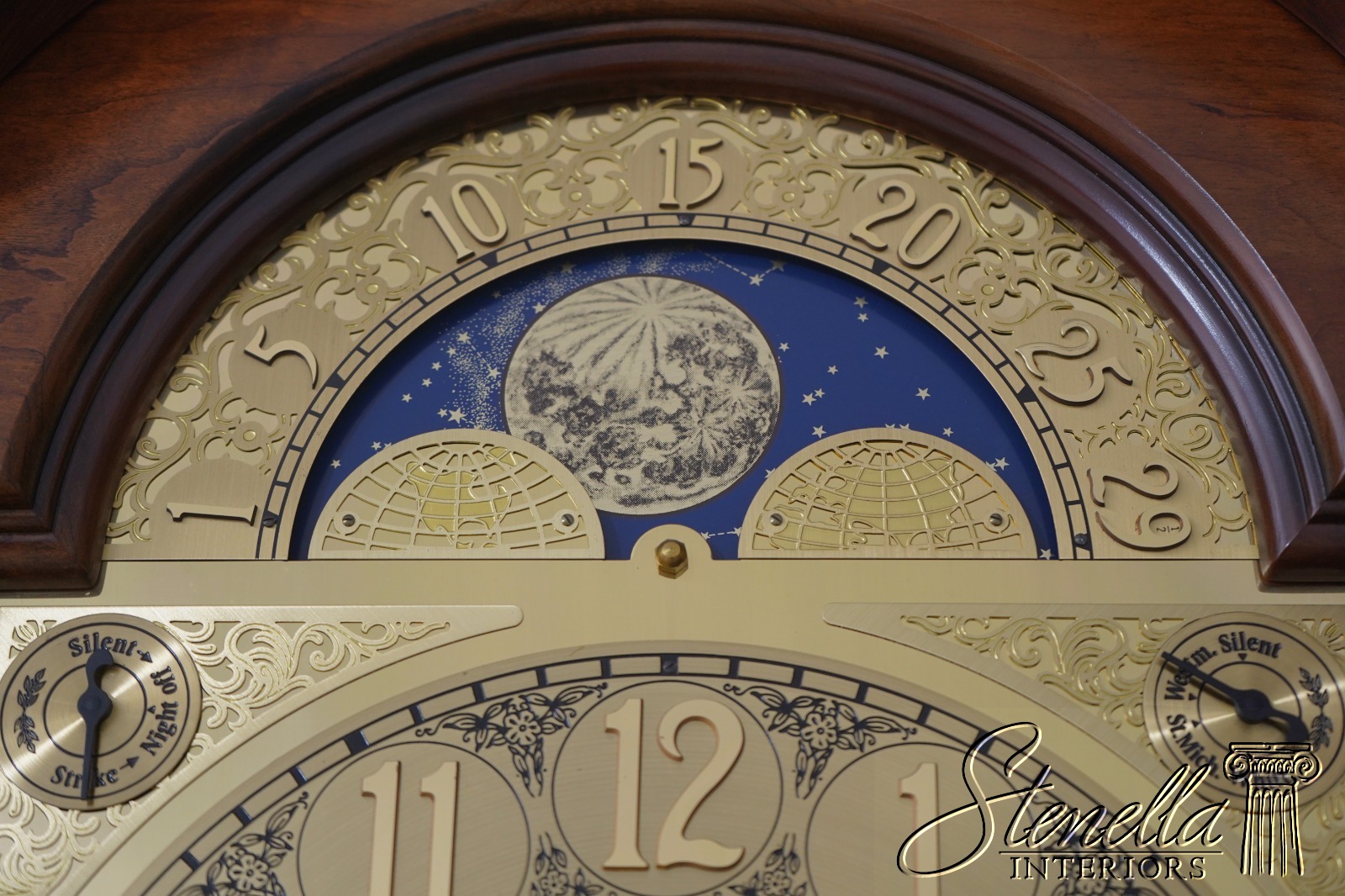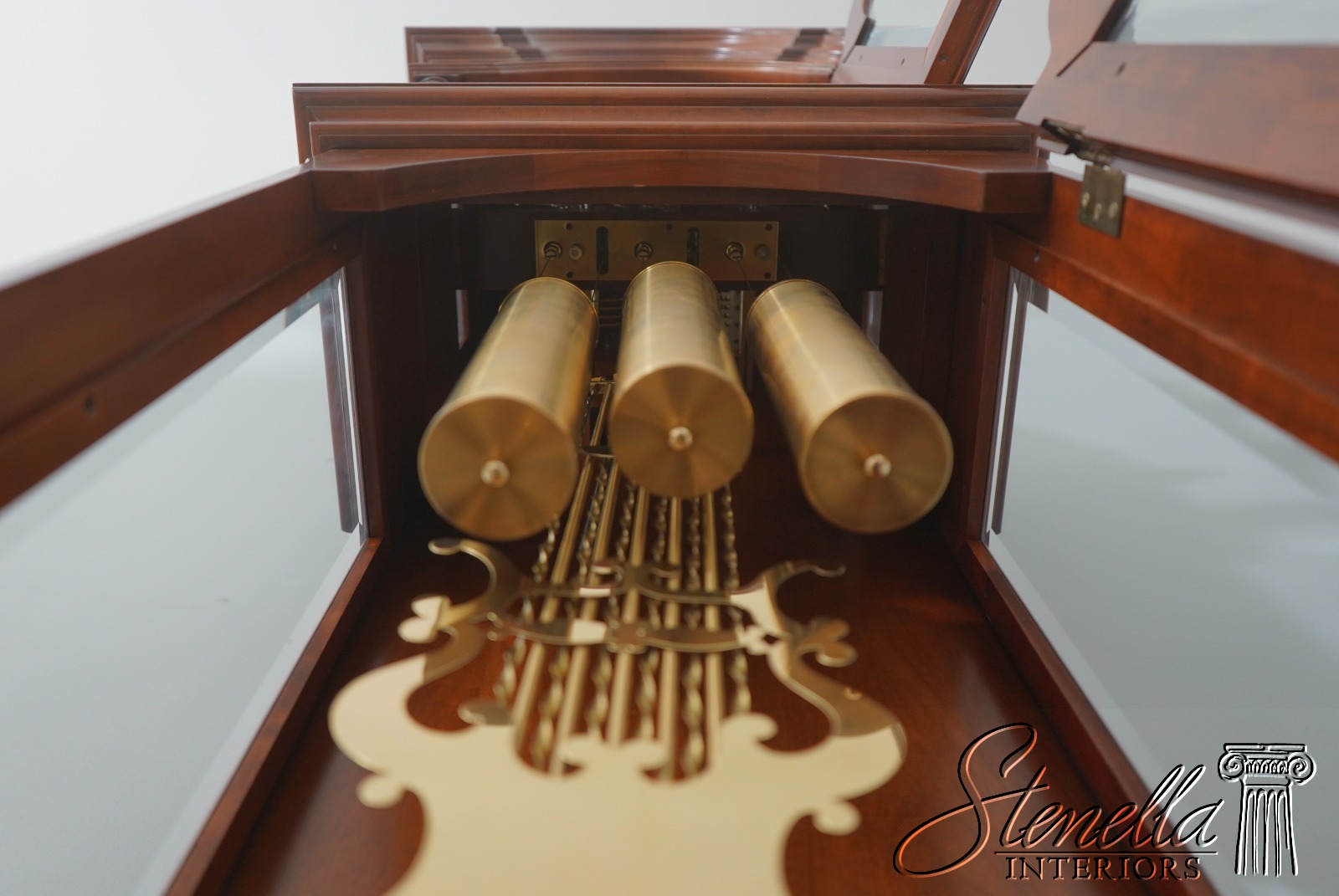 Stenella Antiques always recommends having a clock setup, tuned and adjusted by a professional after being moved. Most clock movement manufacturers recommend having a clock tuned or adjusted every two years or so, and now would be a good time to have that done. We are not clock experts, but feel free to email us any questions and we will gladly try to answer them for you. This clock is setup at our location to ensure it is in working order. We make sure all parts are here and in basic functioning order. We do not inspect or guarantee timing, wear to bushings or moving parts etc. Normal age appropriate wear should be expected. Be sure to view our additional offerings for additional quality furniture items for your home. Feel free to message any questions.