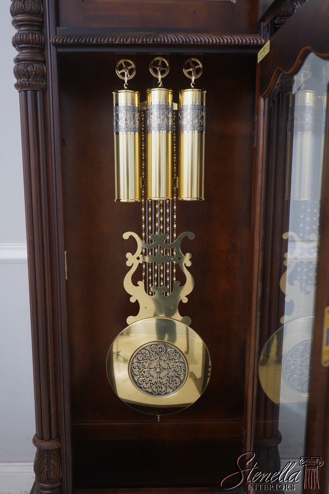 Stenella Antiques always recommends having a clock setup, tuned and adjusted by a professional after being moved. Most clock movement manufacturers recommend having a clock tuned or adjusted every two years or so, and now would be a good time to have that done. We are not clock experts, but feel free to email us any questions and we will gladly try to answer them for you. This clock is setup at our location to ensure it is in working order. We make sure all parts are here and in basic functioning order. We do not inspect or guarantee timing, wear to bushings or moving parts etc. Normal age appropriate wear should be expected. Be sure to view our additional offerings for additional quality furniture items for your home. Feel free to message any questions.