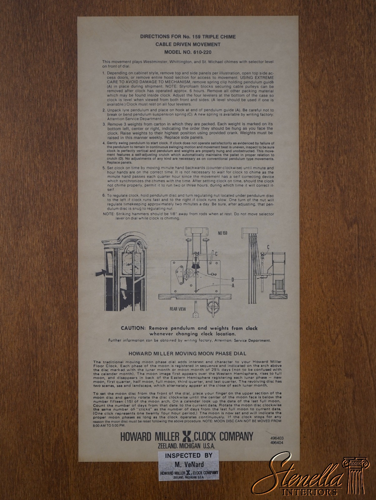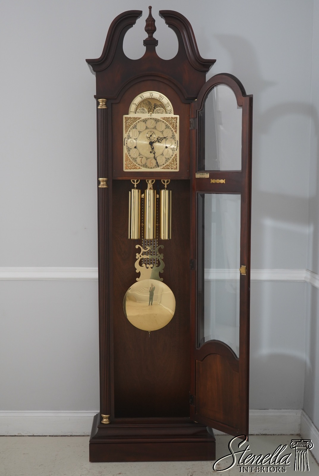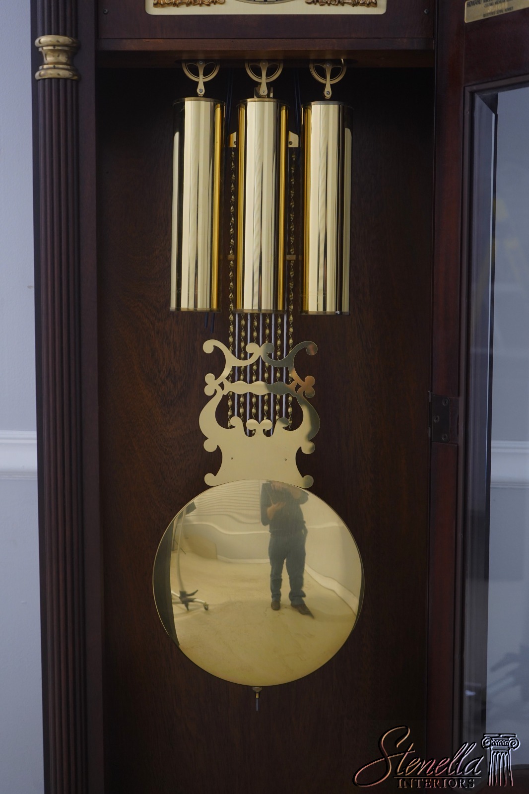 Stenella Antiques always recommends having a clock setup, tuned and adjusted by a professional after being moved. Most clock movement manufacturers recommend having a clock tuned or adjusted every two years or so, and now would be a good time to have that done. We are not clock experts, but feel free to email us any questions and we will gladly try to answer them for you. This clock is setup at our location to ensure it is in working order. We make sure all parts are here and in basic functioning order. We do not inspect or guarantee timing, wear to bushings or moving parts etc. Normal age appropriate wear should be expected. Be sure to view our additional offerings for additional quality furniture items for your home. Feel free to message any questions.