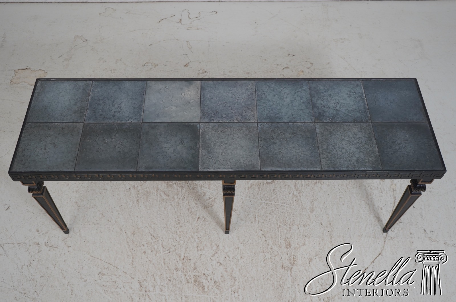 Details: Smoked Glass Panels On Top High Quality Construction Mirrored Top Neoclassical Design Tapered Legs Un-Marked As To Manufacture Greek Key Design On Apron Offered @ Fraction Original Retail Cost