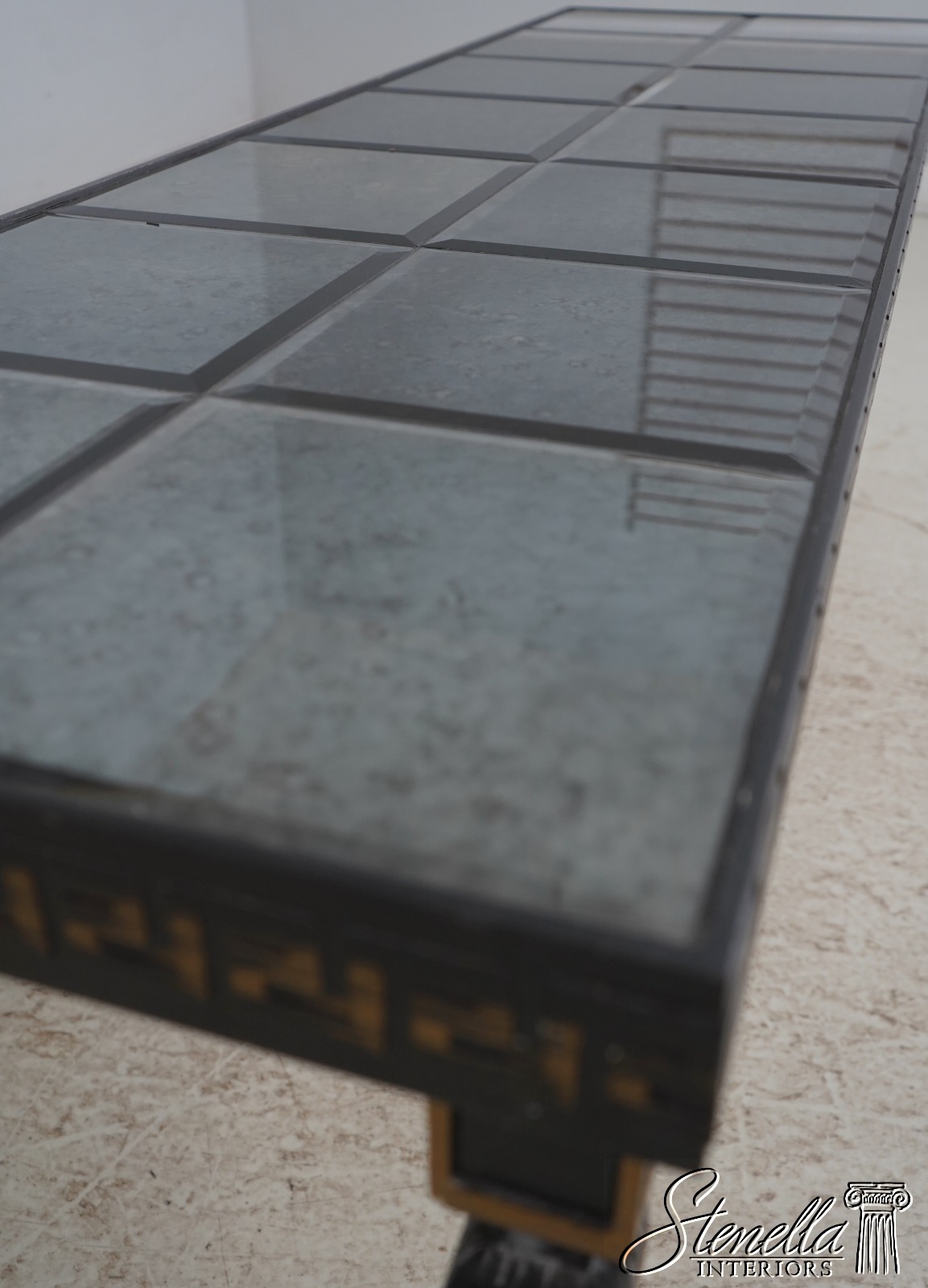 69703: Neoclassical Design Ebony & Gold Smoke Glass Top Console Table