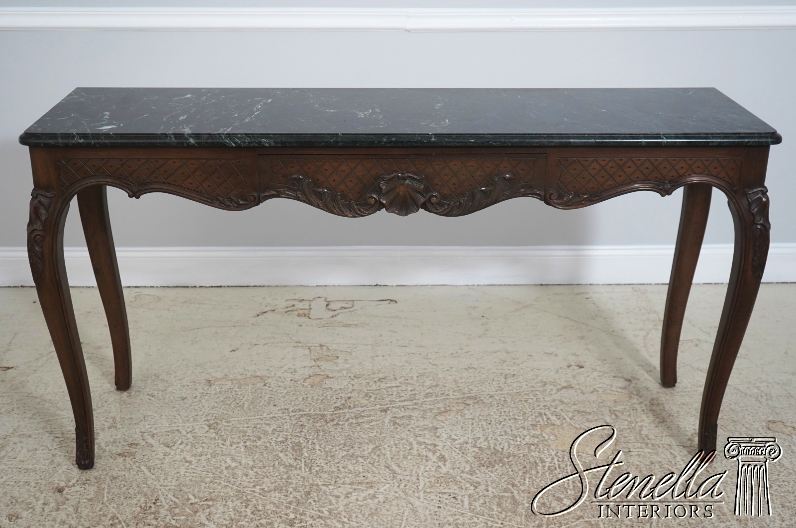 Details: Green Marble Top Dovetailed Drawer Construction Quality Construction Federal Style Felt Lined Silverware Drawer French Louis XV Style Nice Hall Console Or Serving Table Un-Marked As To Manufacture - Possibly Bodart Or Similar Manufacture