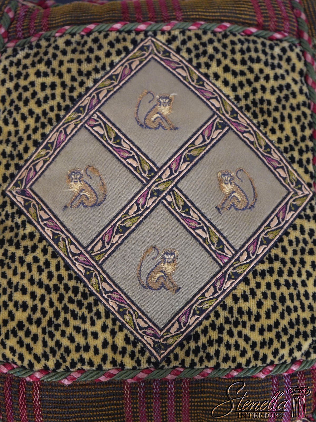 F42059: Square Throw Pillow Monkey & Animal Print w. Tassels