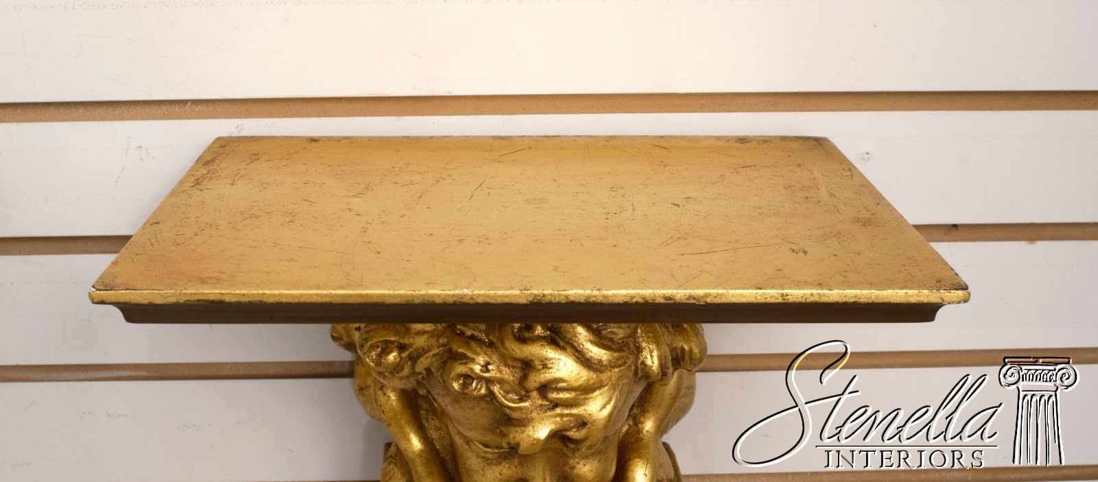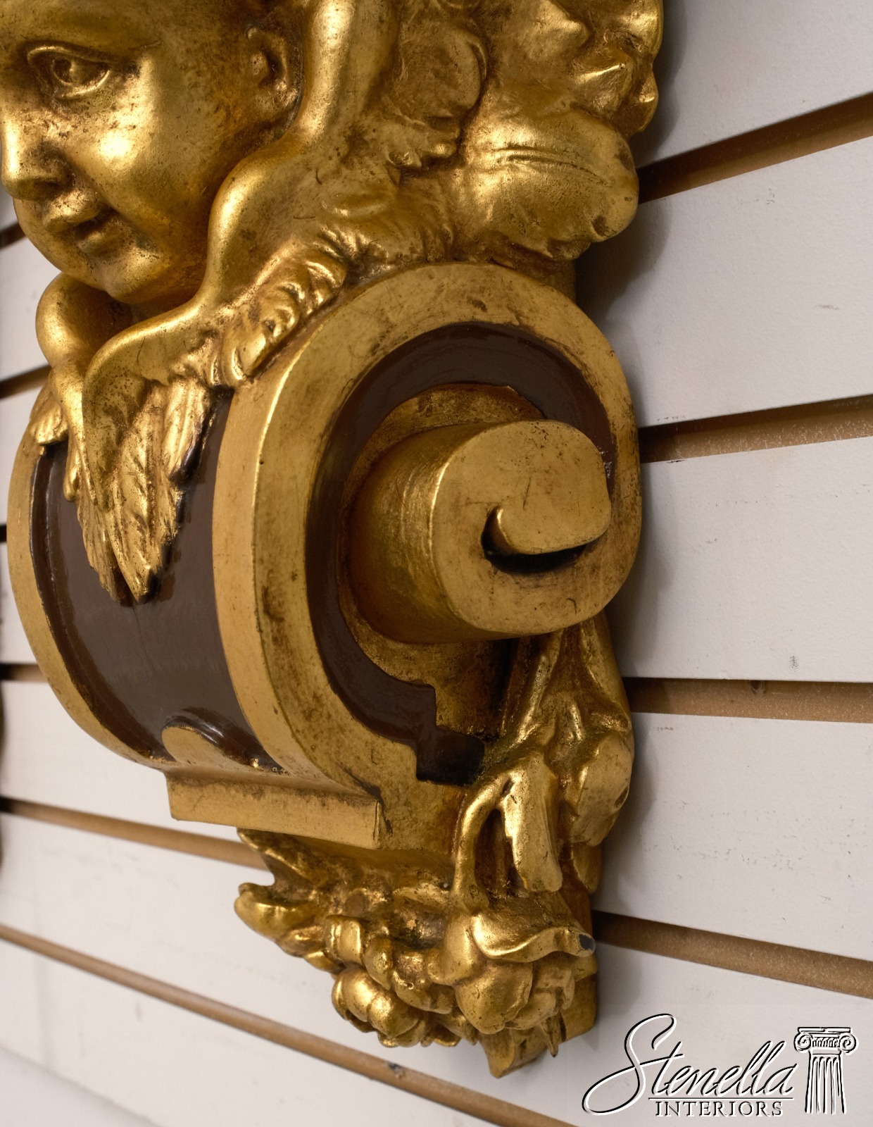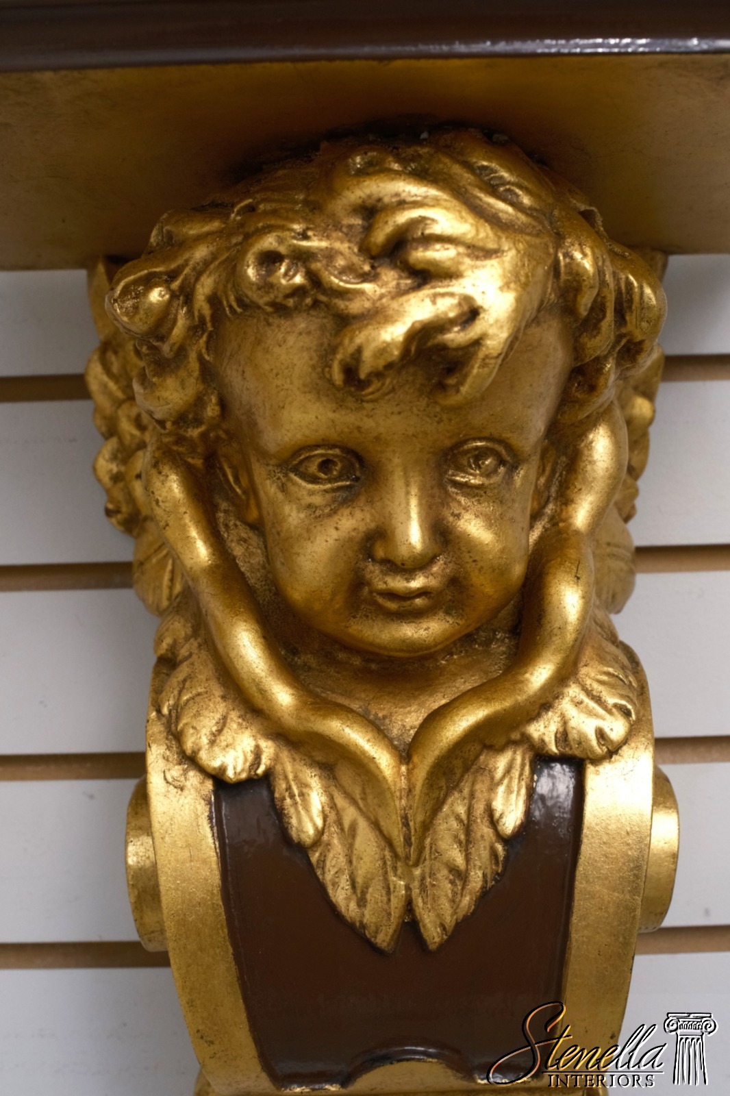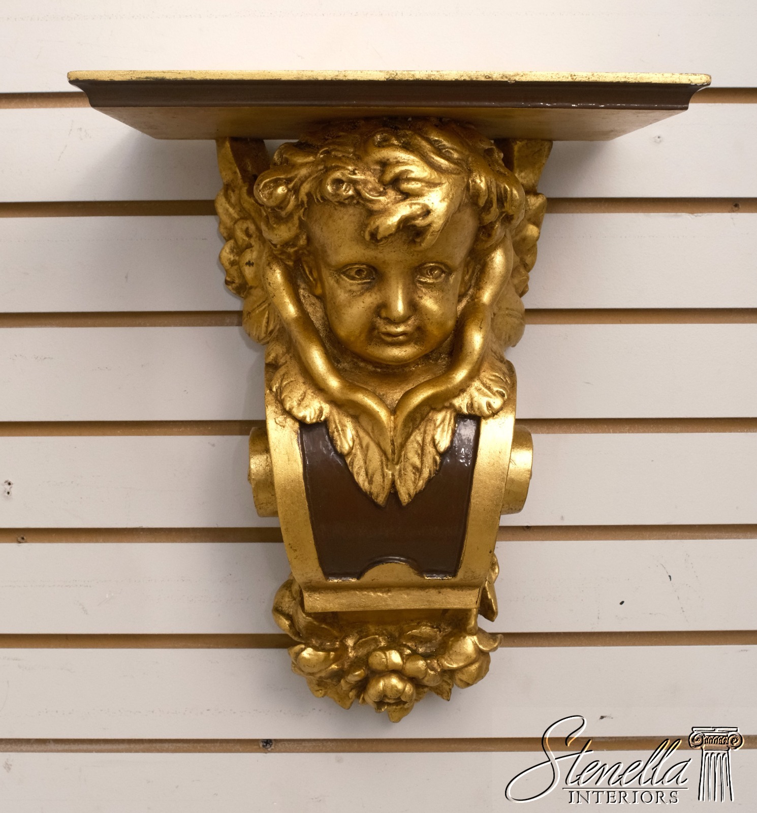 F68287: Pair Cherub Gold Finish Wall Sconce Shelves