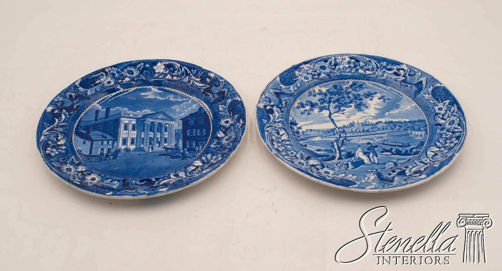 F68458: Pair Of Philadelphia Staffordshire English Blue & White Plates