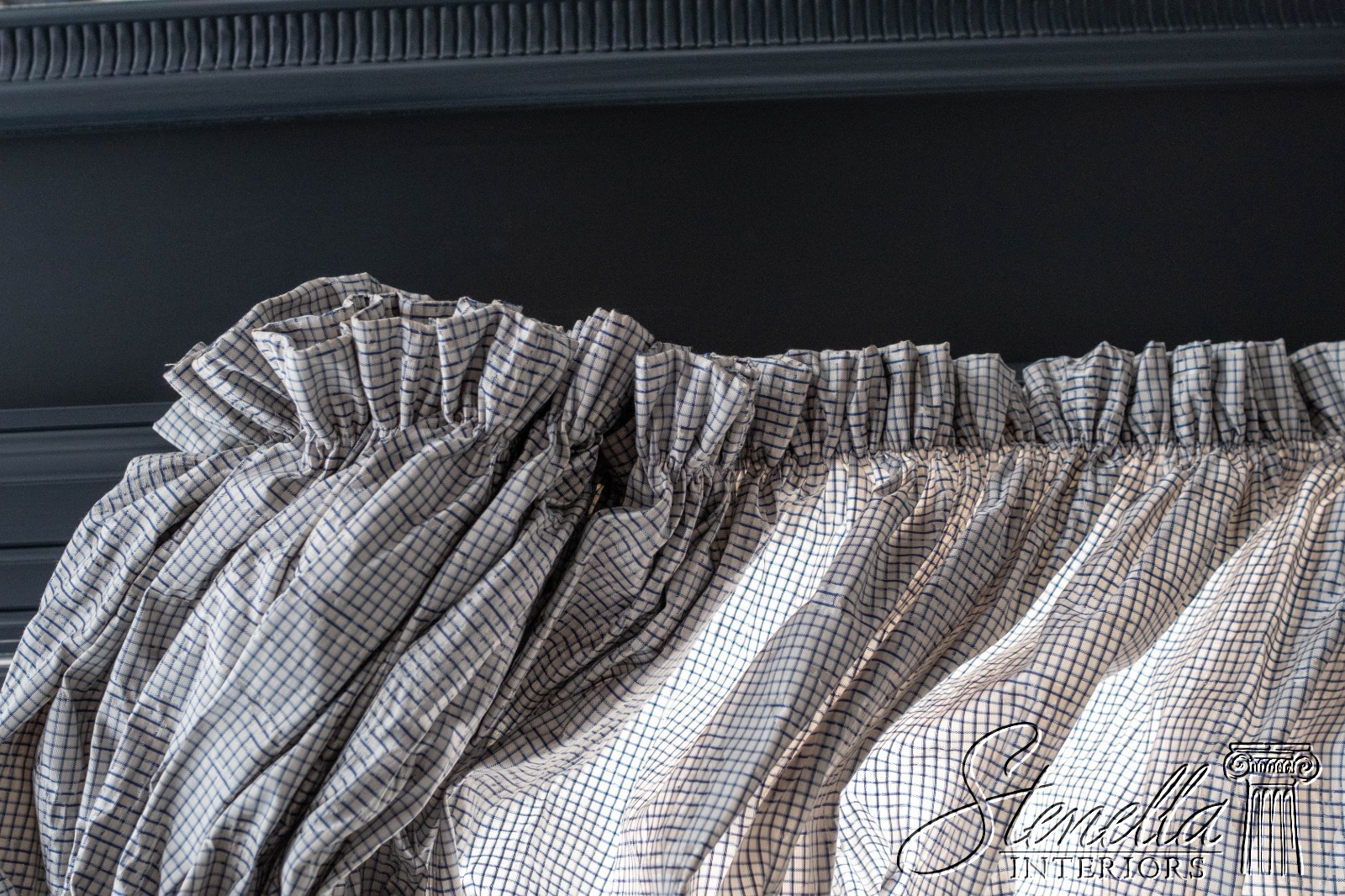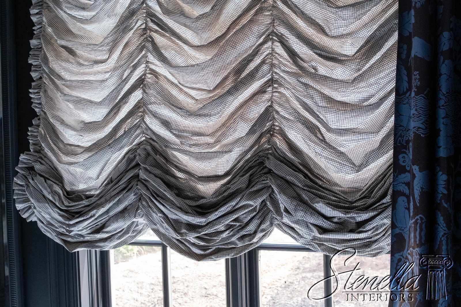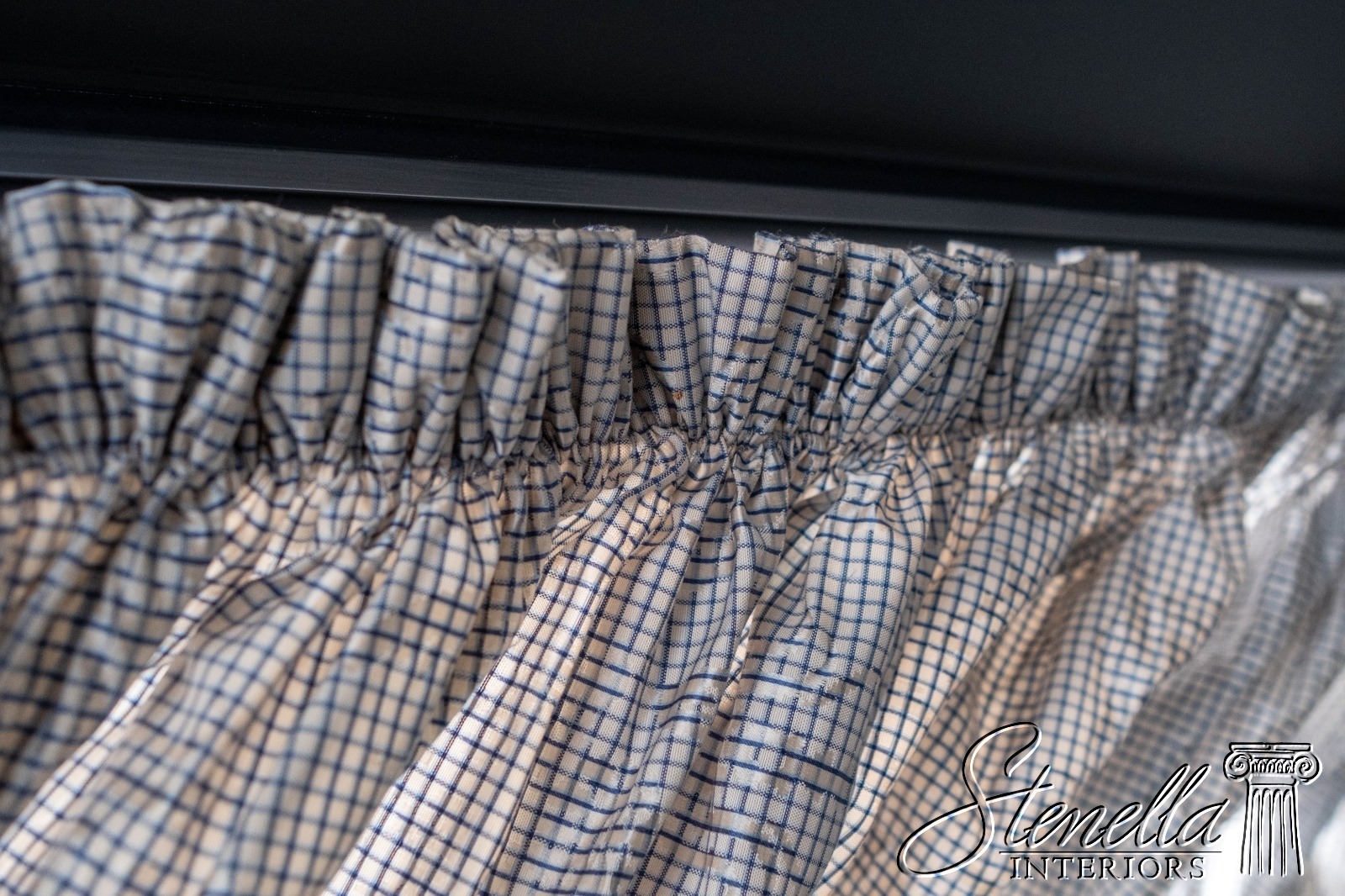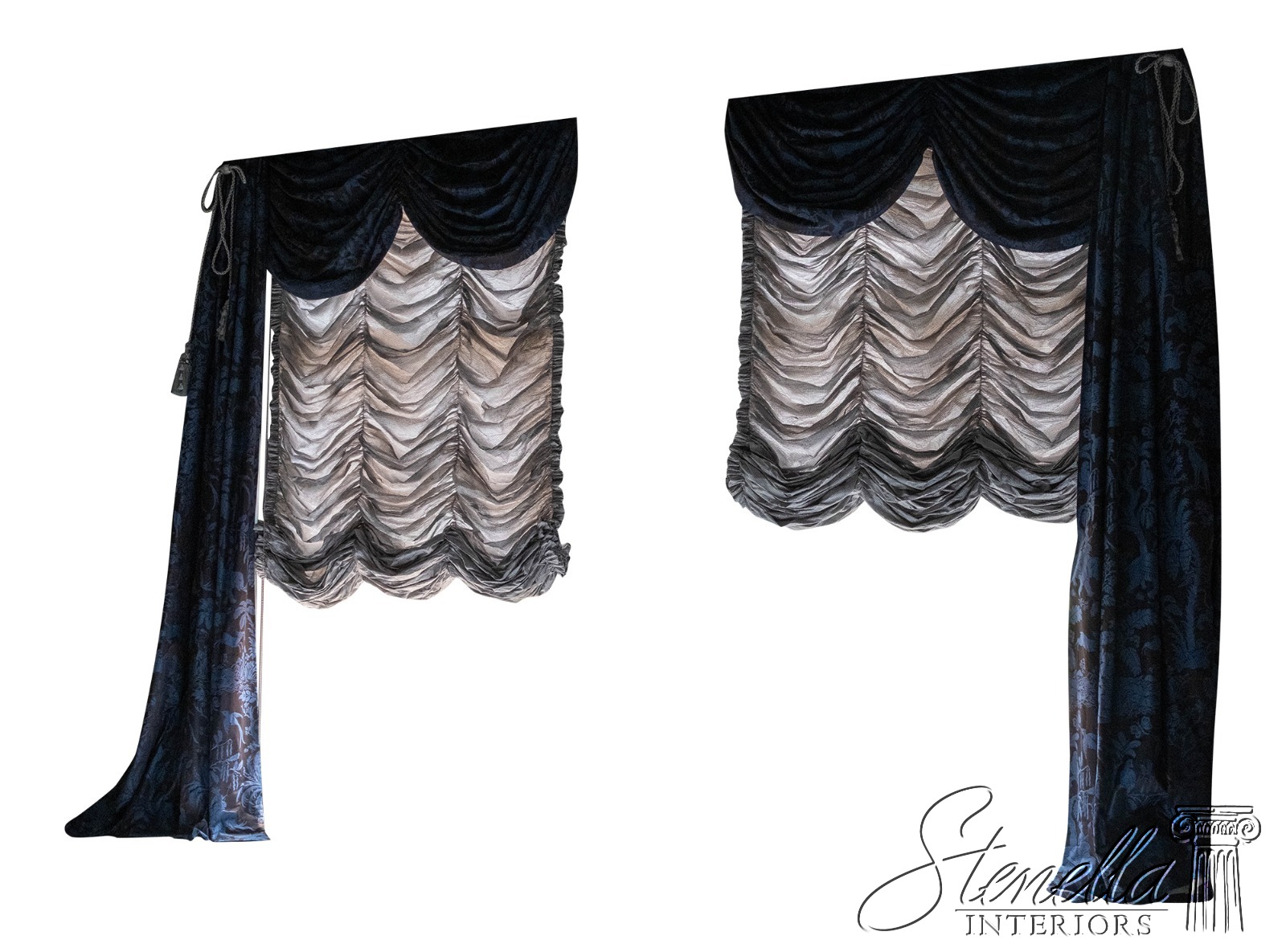 These custom-made blinds were crafted from the highest quality fabrics and originally designed for the elegant estate we are currently liquidating. The materials and craftsmanship reflect a premium, designer-level finish. Please refer to the provided photos for details and note that the dimensions listed are approximate, as shown. The blinds can potentially be tailored or altered to suit your specific décor or space requirements.