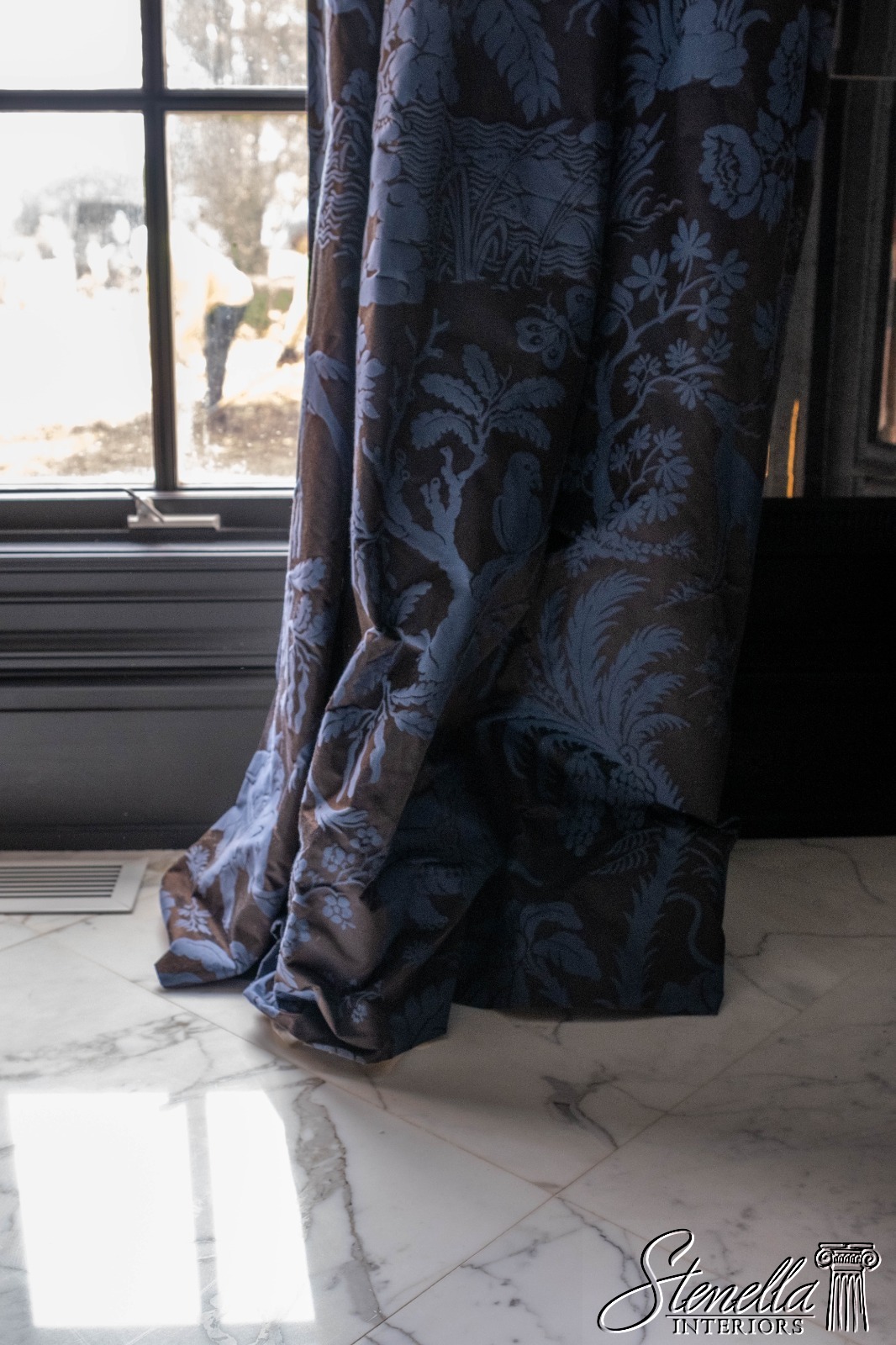 F68894: Custom SCALAMANDRÉ Blue Damask Drapes