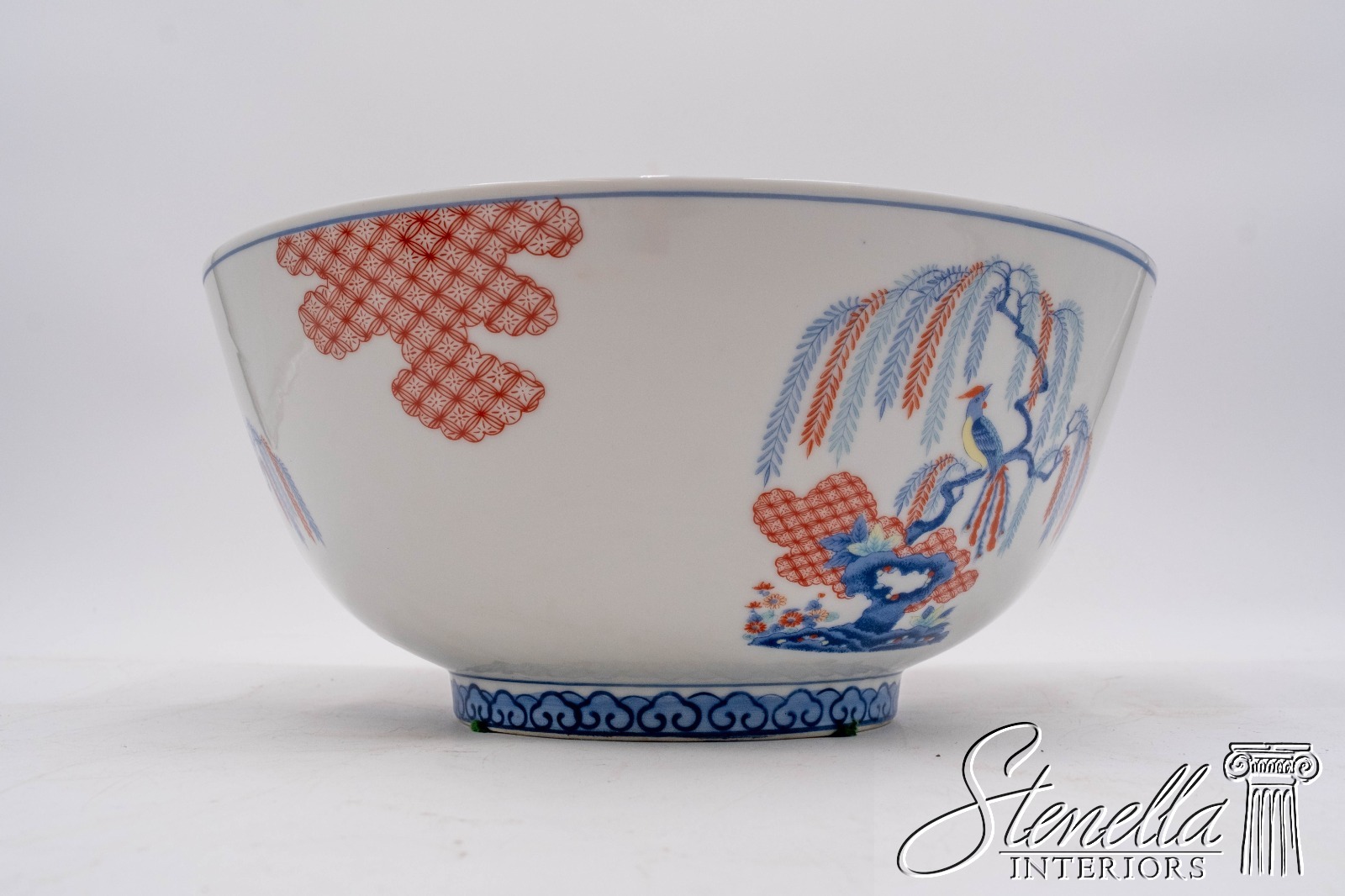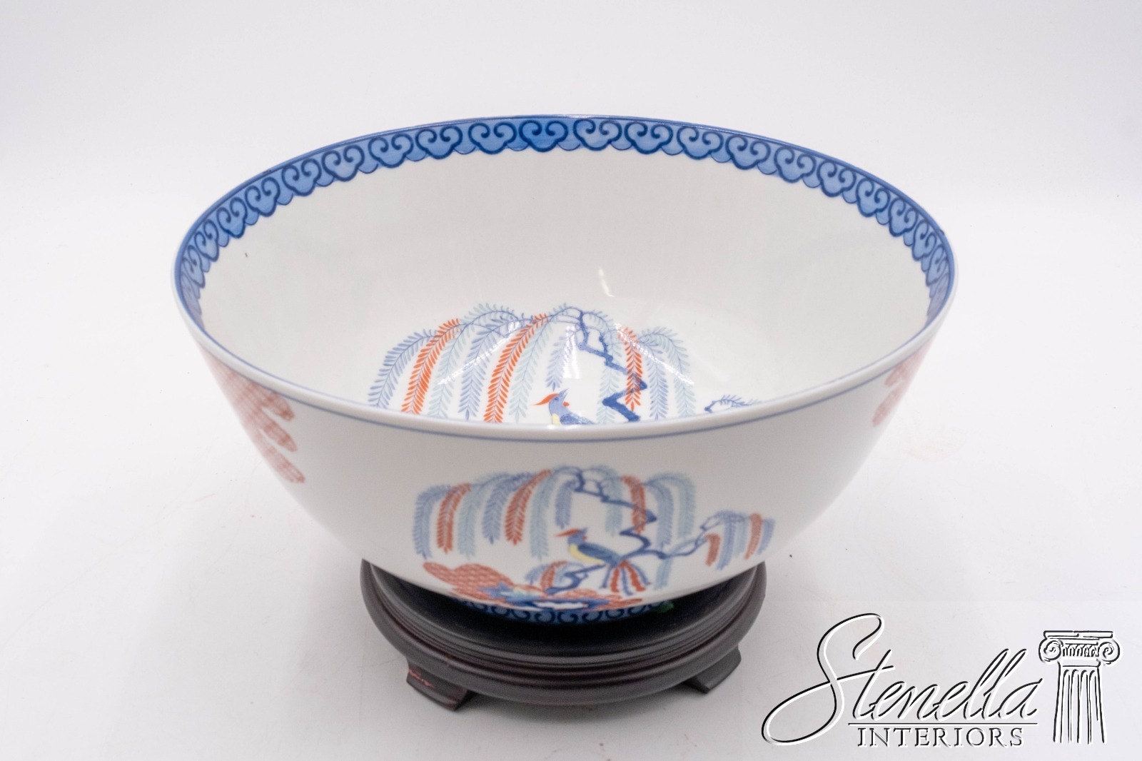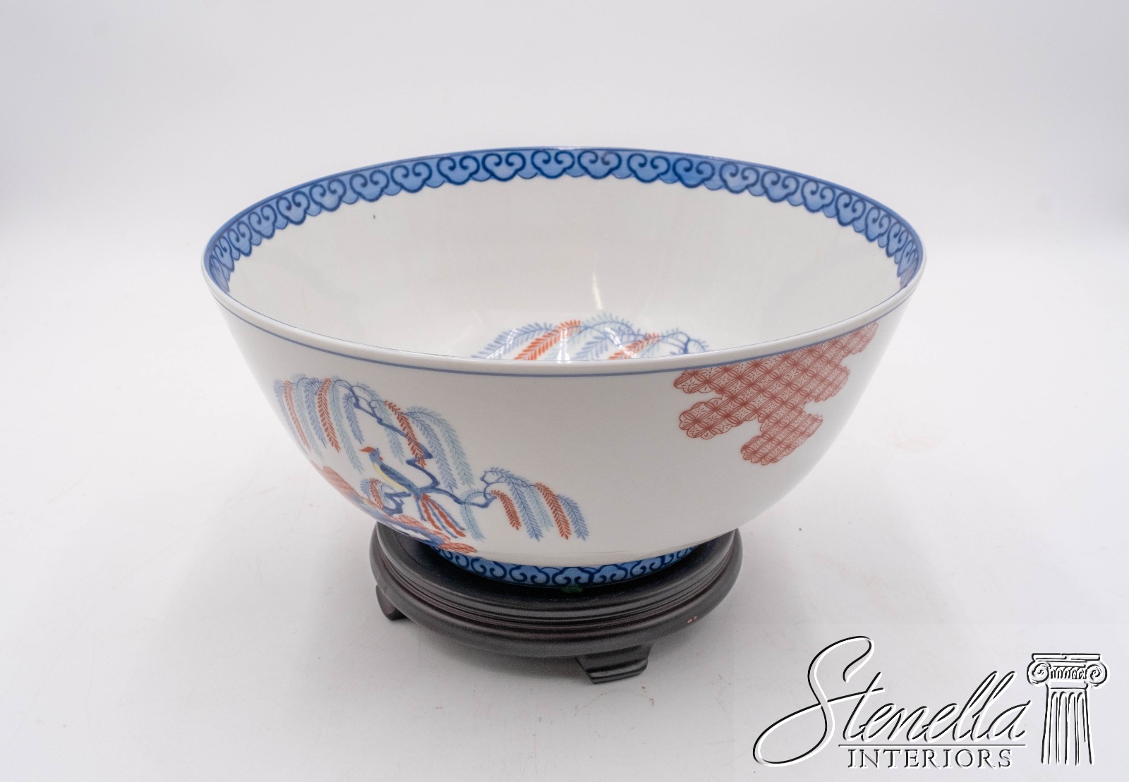 F69113: MOTTAHEDEH Imariware Chinoiserie Bird of Paradise Bowl on Wood base