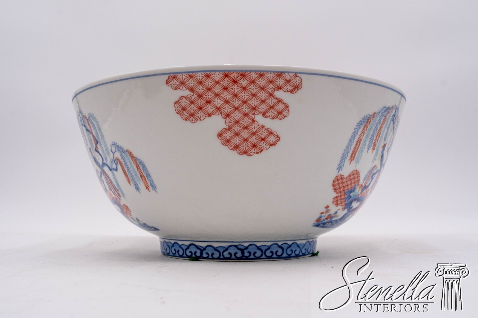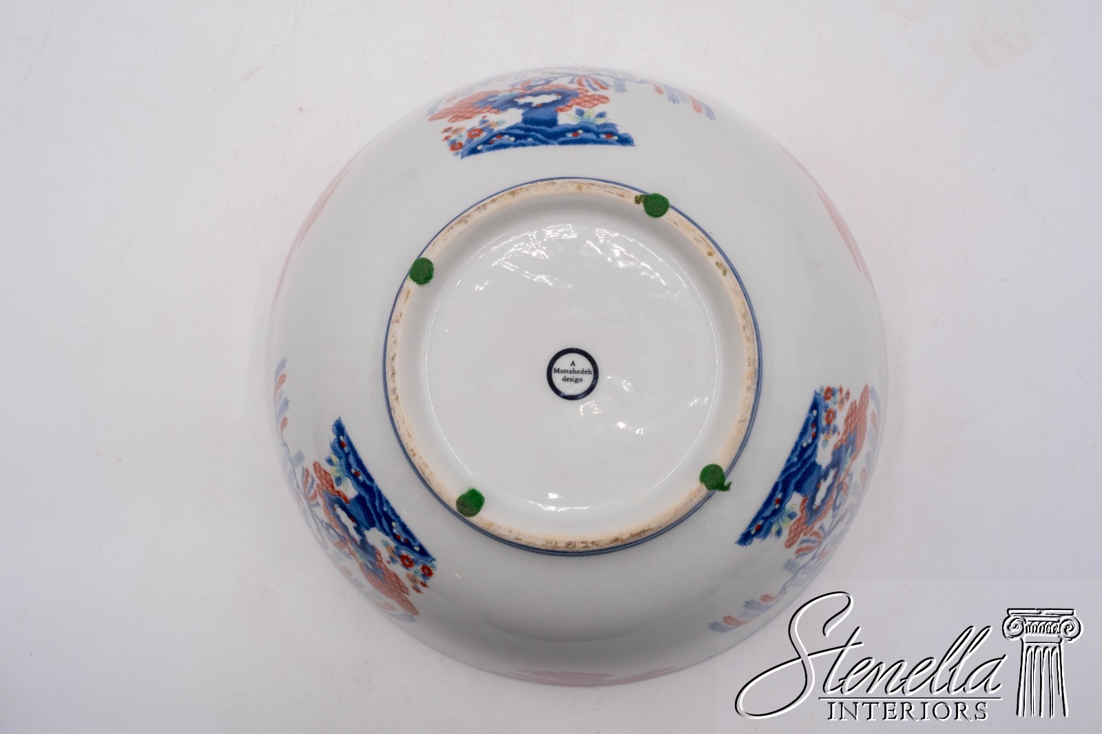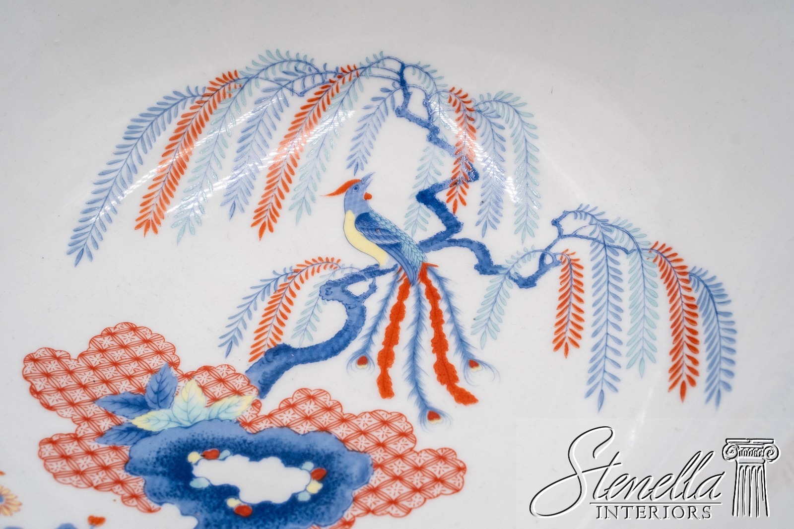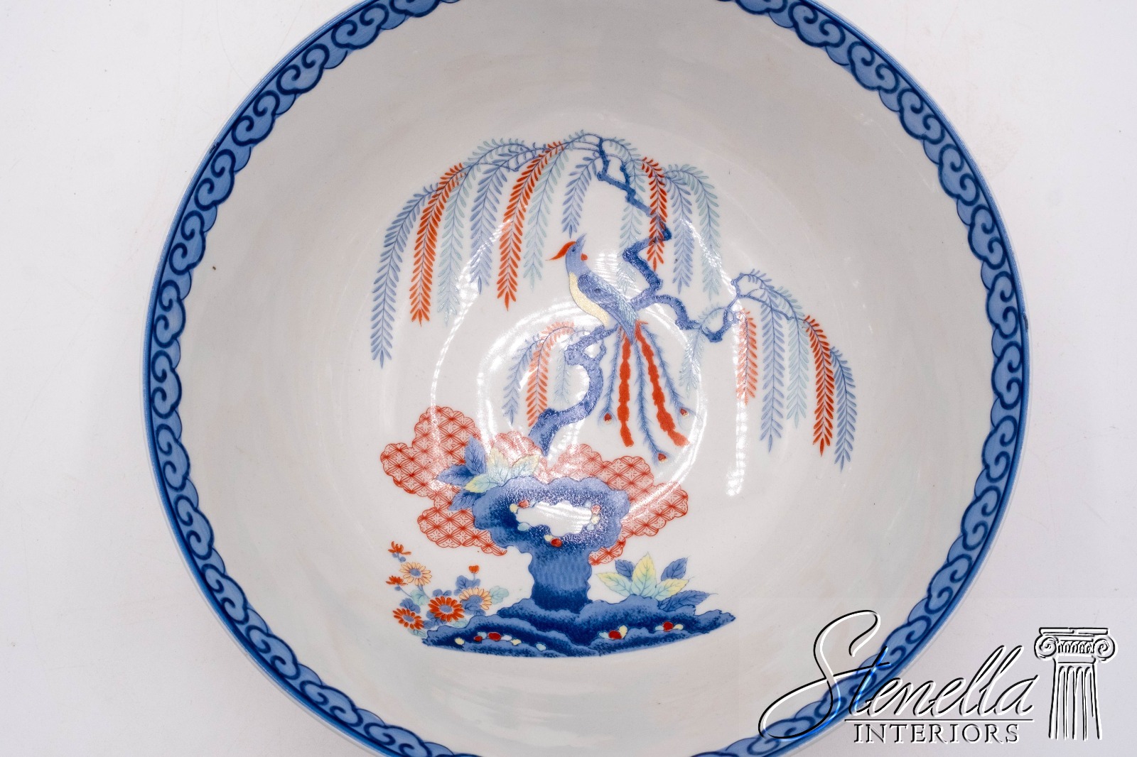 F69113: MOTTAHEDEH Imariware Chinoiserie Bird of Paradise Bowl on Wood base