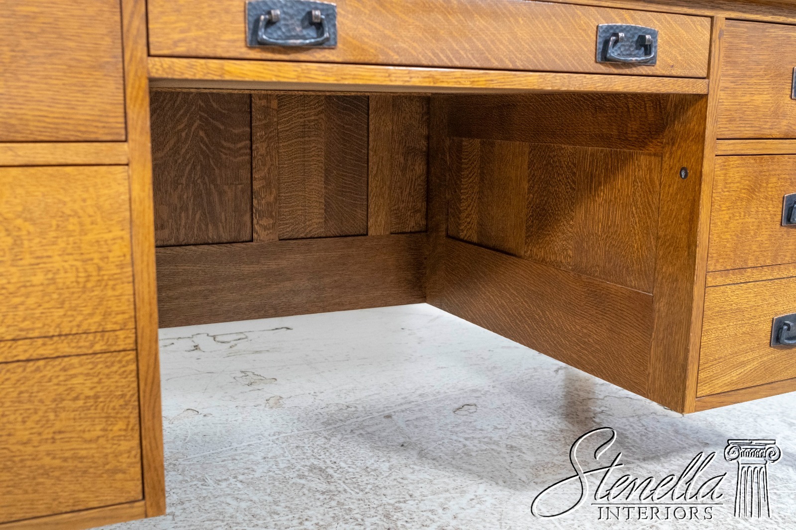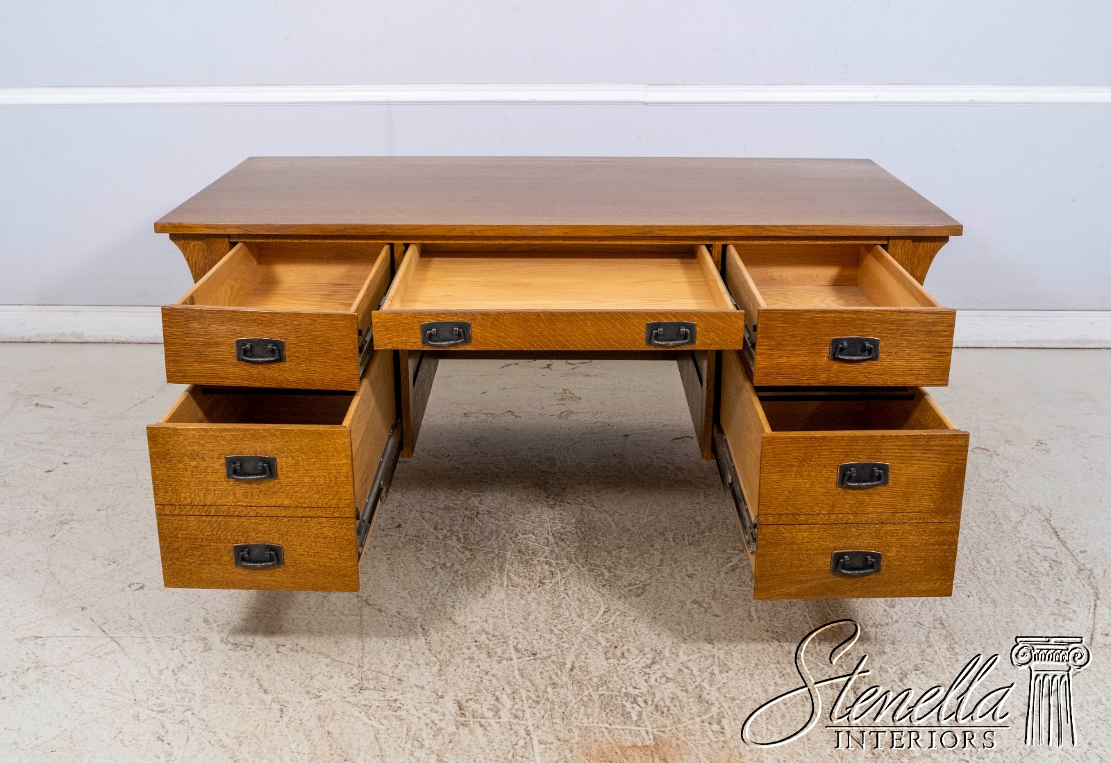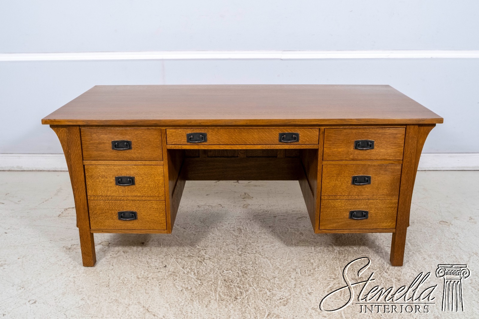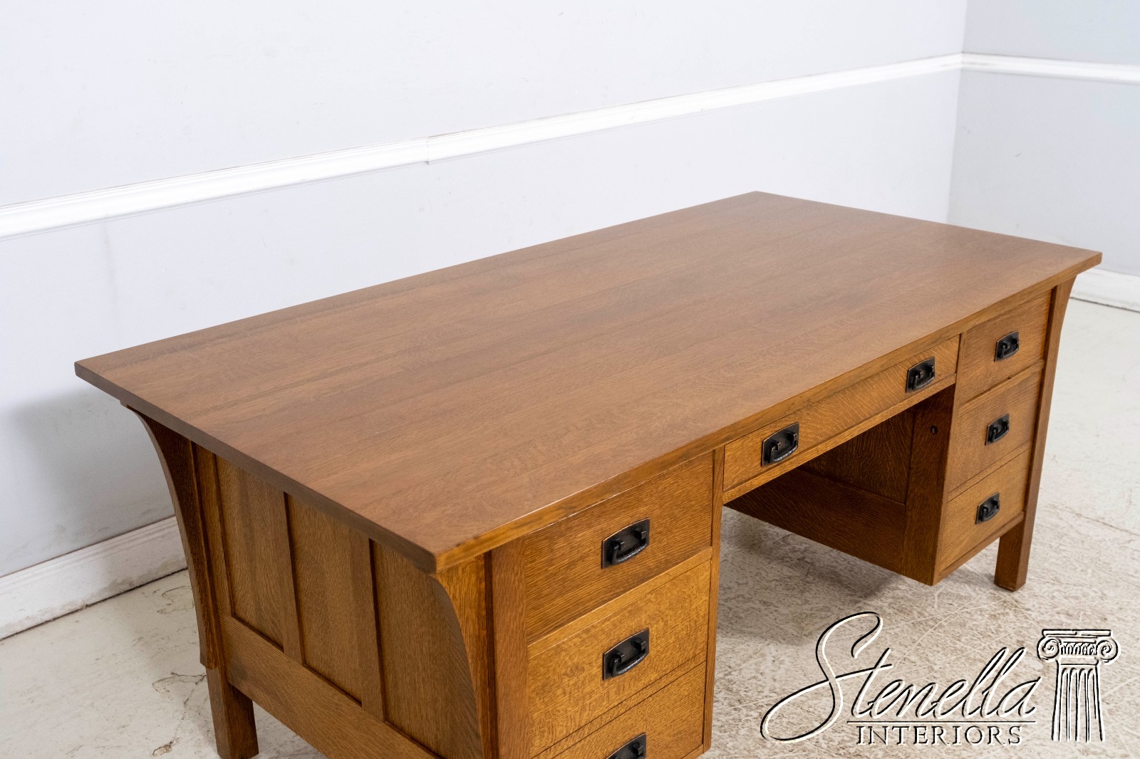 Details: Finish no.35 Fayetteville Large Impressive Desk Arts & Crafts Style Nicely Finished On All Sides No-Key All Drawers Unlocked Offered @ Fraction Original Retail Cost