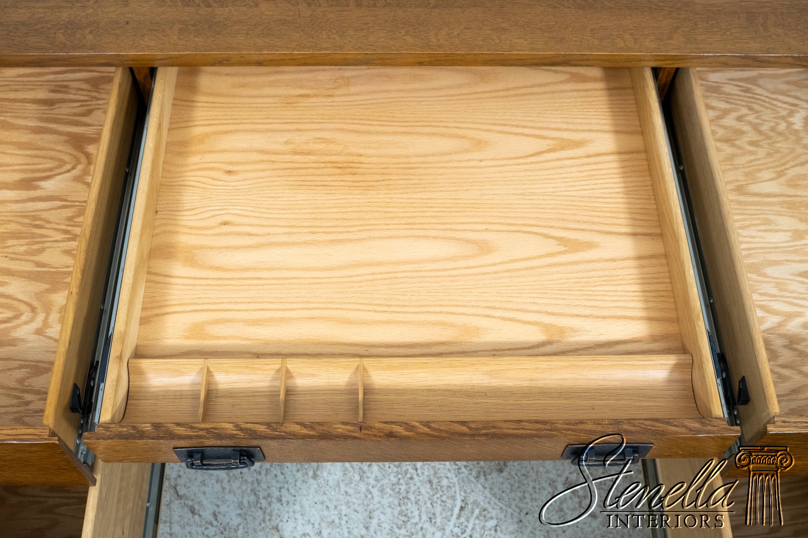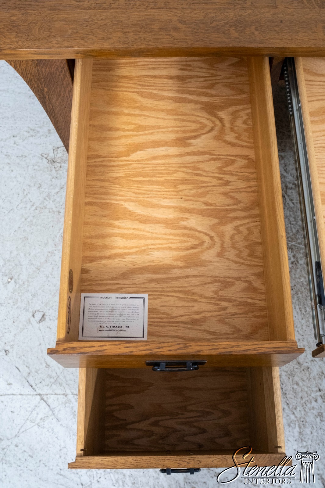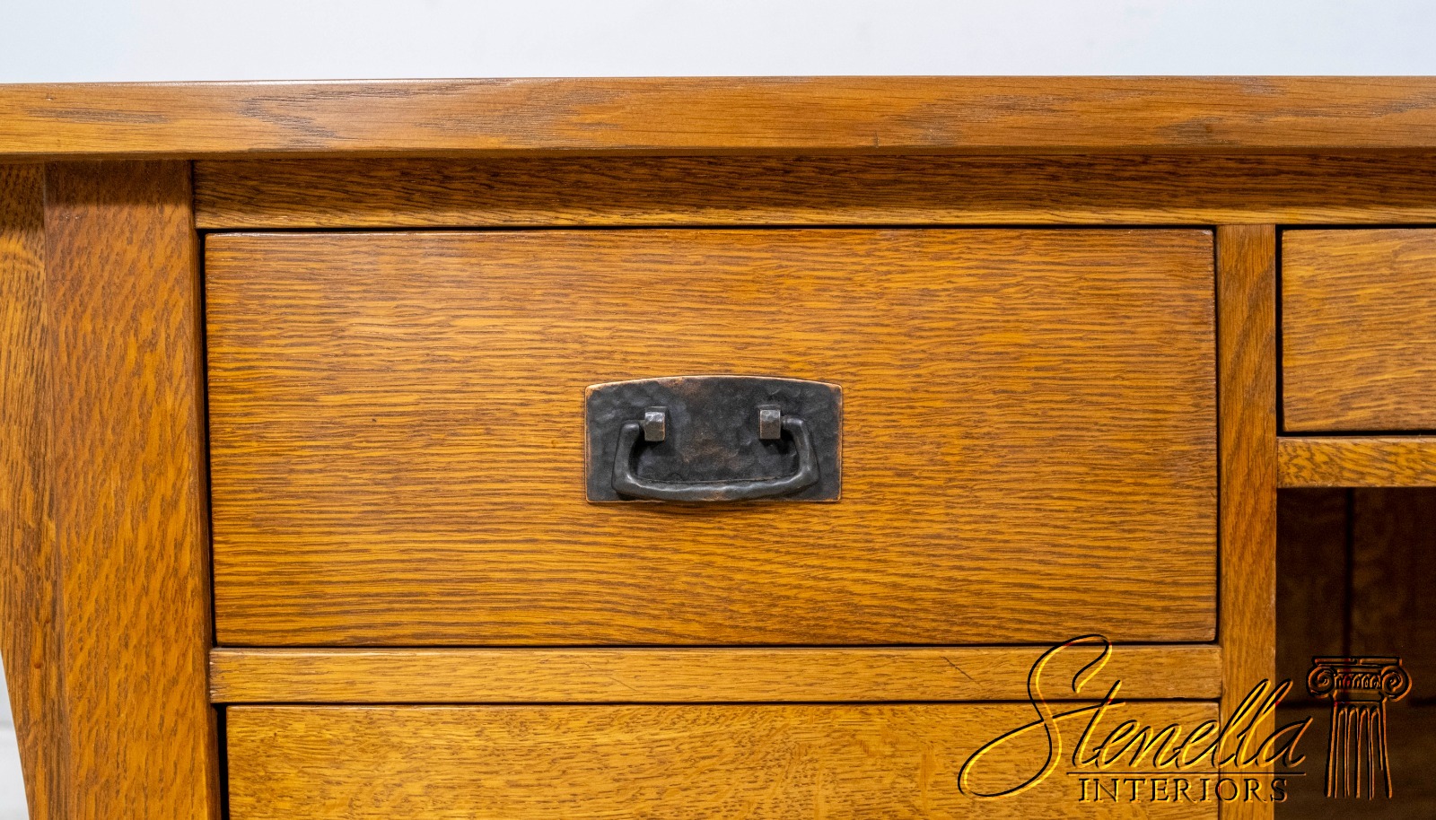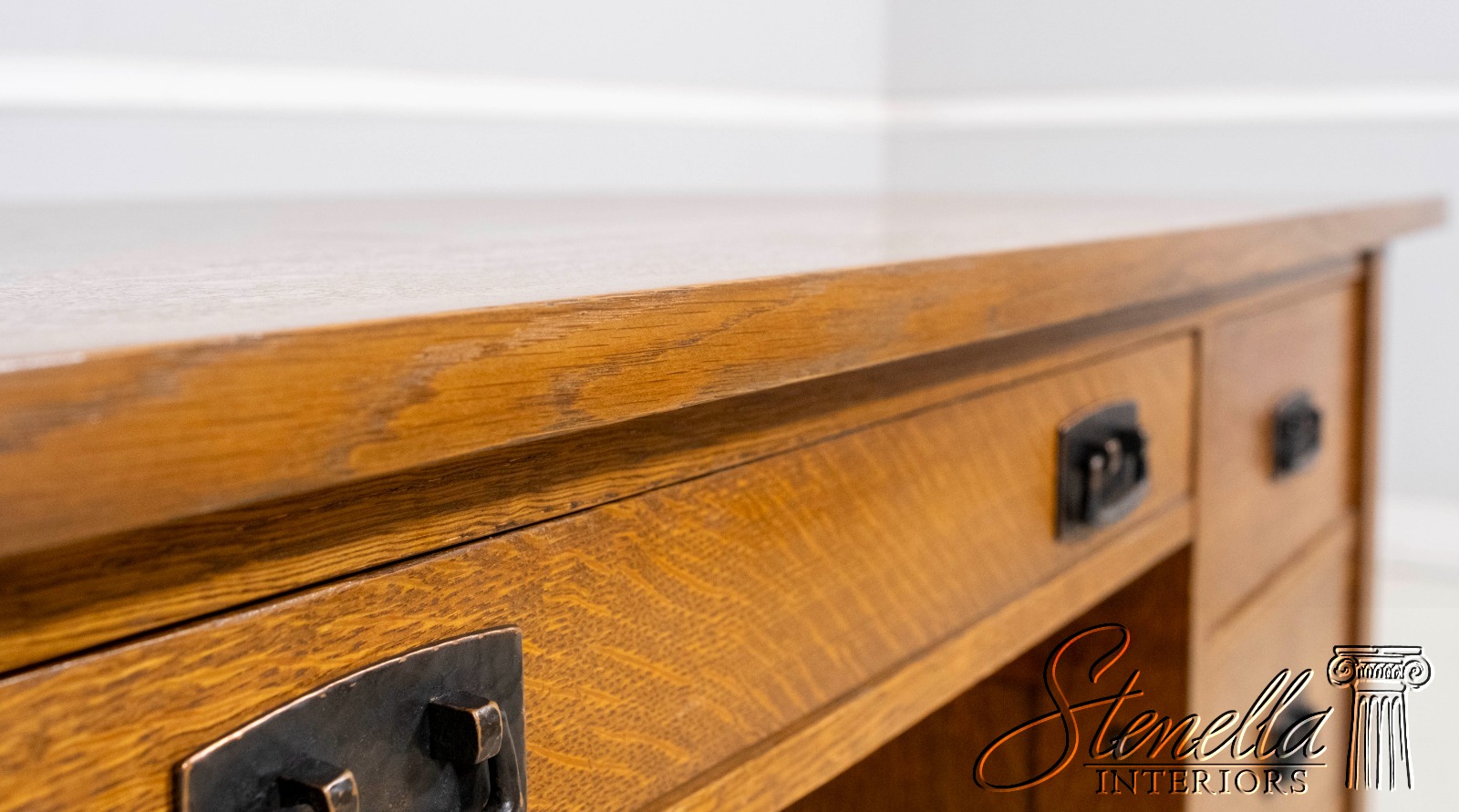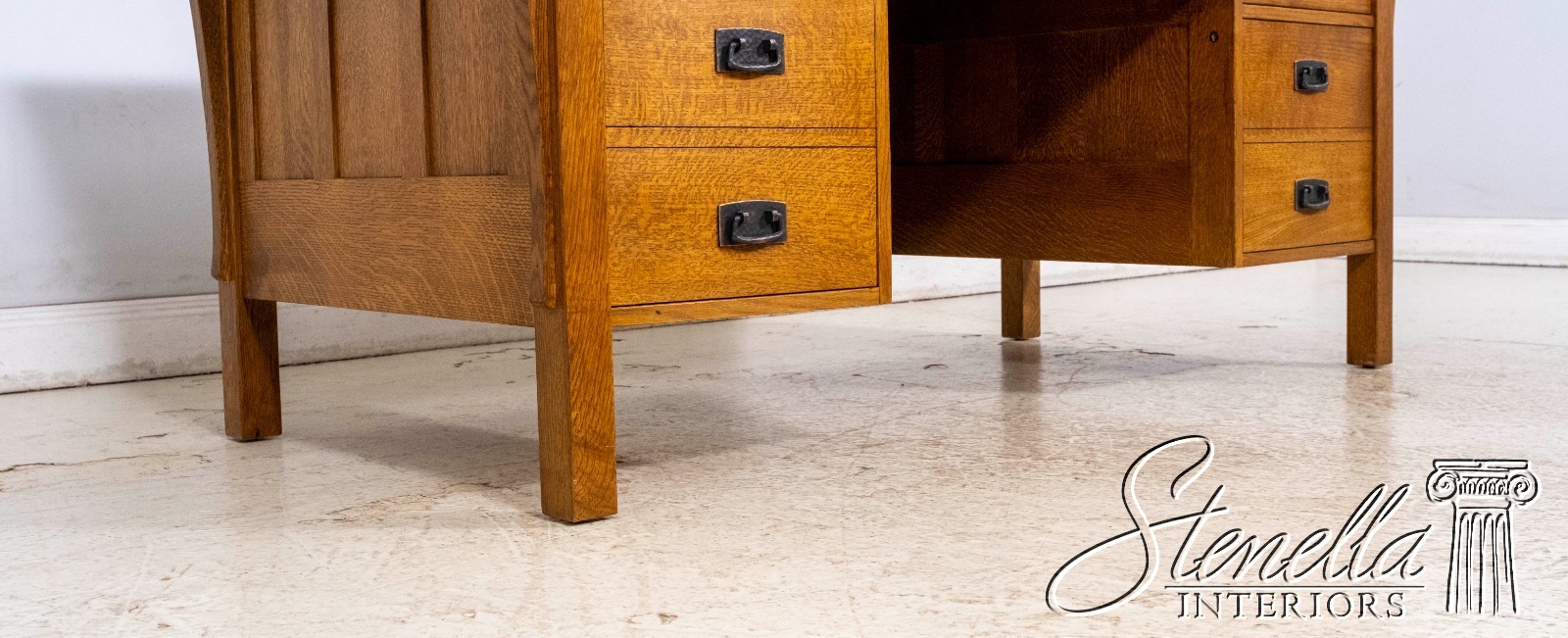 Details: Finish no.35 Fayetteville Large Impressive Desk Arts & Crafts Style Nicely Finished On All Sides No-Key All Drawers Unlocked Offered @ Fraction Original Retail Cost
