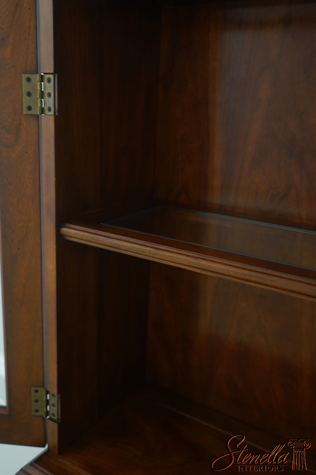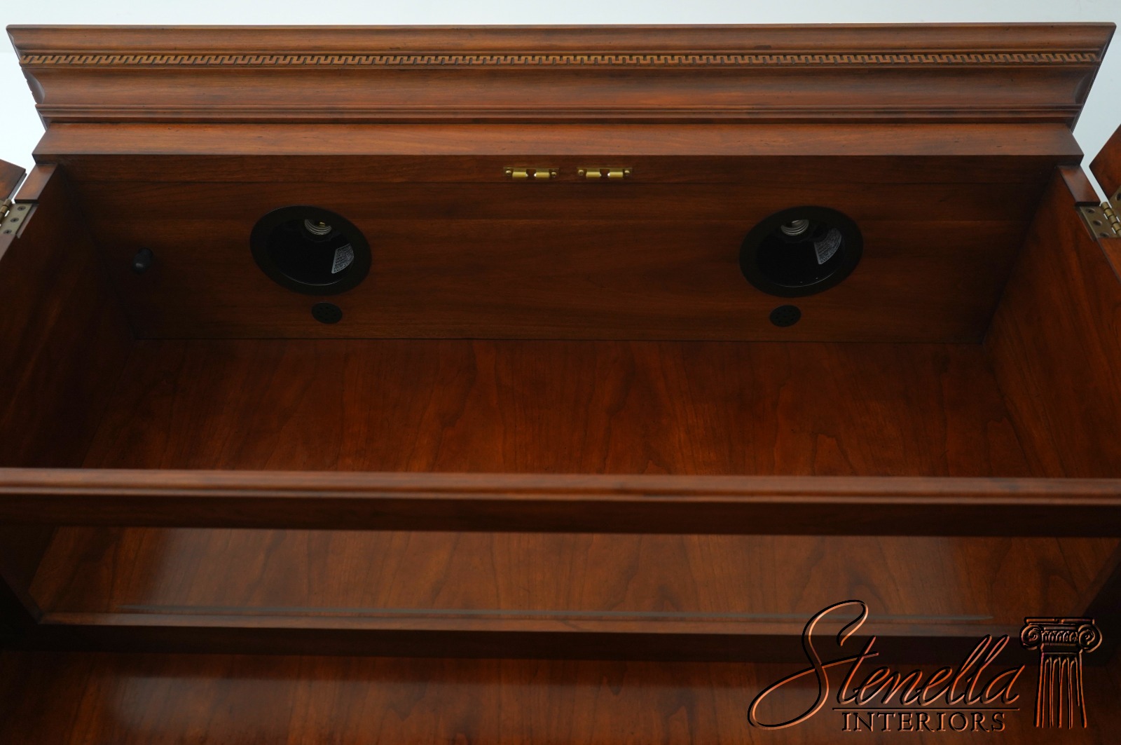 Details: Finish no.20 Model 6001 Solid Cherry 2 Piece Construction Beveled Glass Bracket Feet Dovetailed Drawer Construction High Quality Construction Hidden Compartment Interior Lighted Interior Traditional Style Greek Key Crown Molding Light Factory Distressing Newer Model w. Greek Key molding Nice Fitted Interior Offered @ Fraction Original Retail Cost