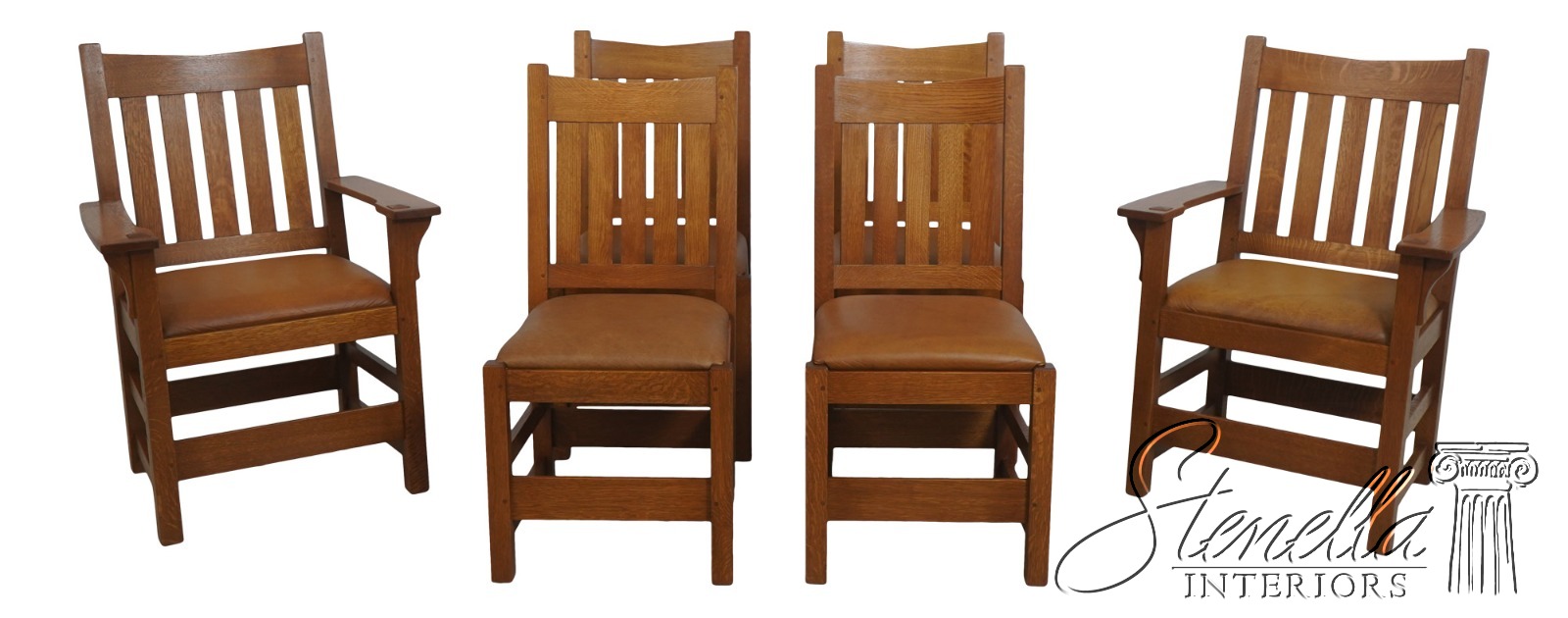 72557 : Set Of 6 STICKLEY Mission Oak Arts & Crafts Dining Chairs