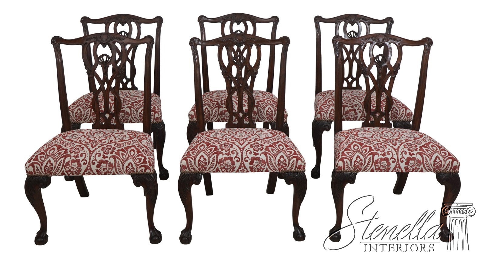 L71565: Set of 6 Mahogany Chippendale Style Dining Chairs