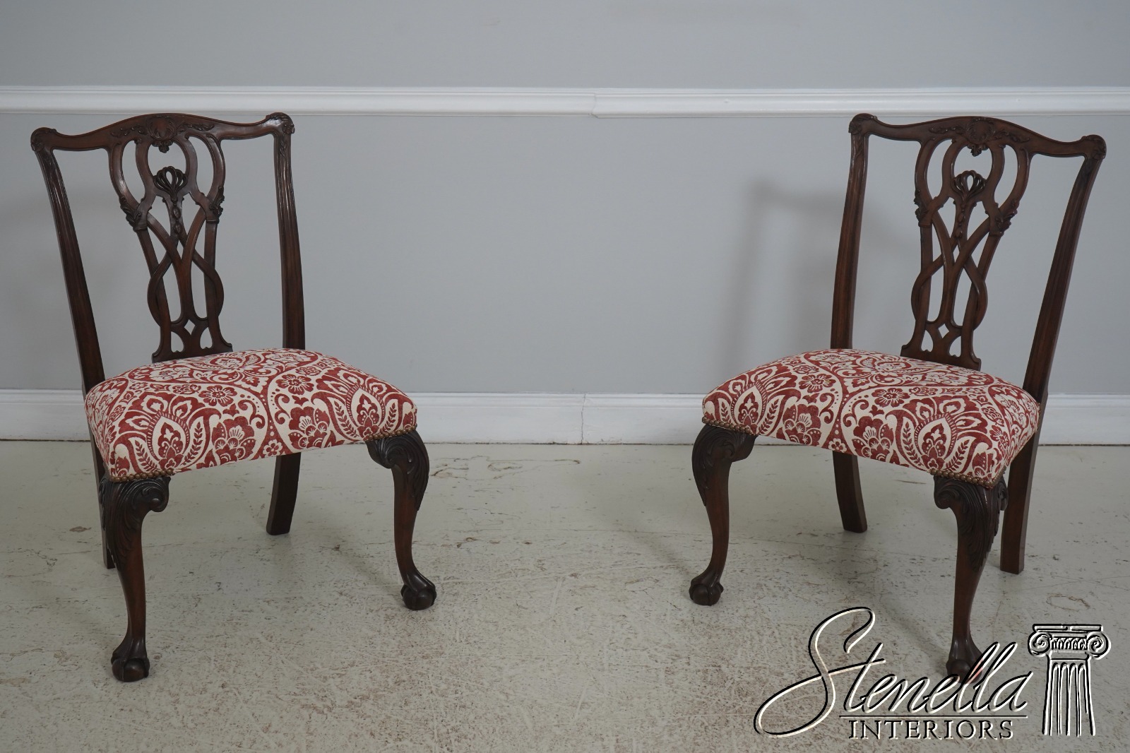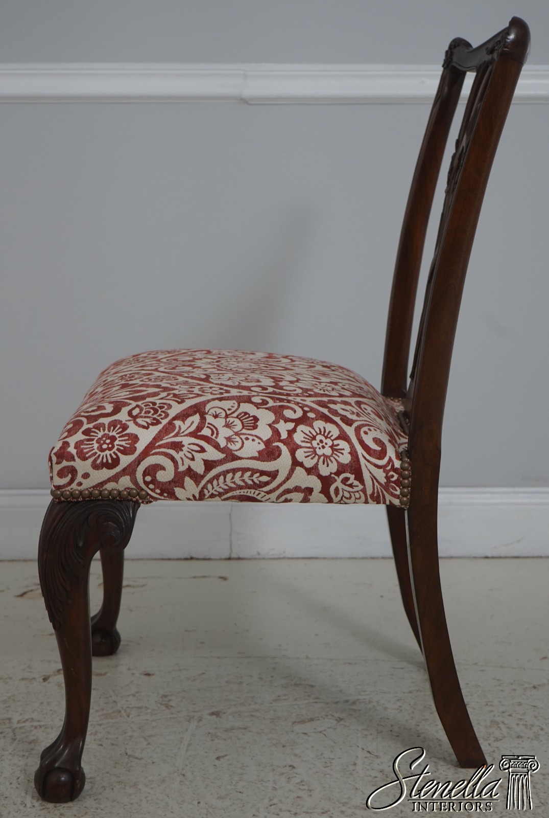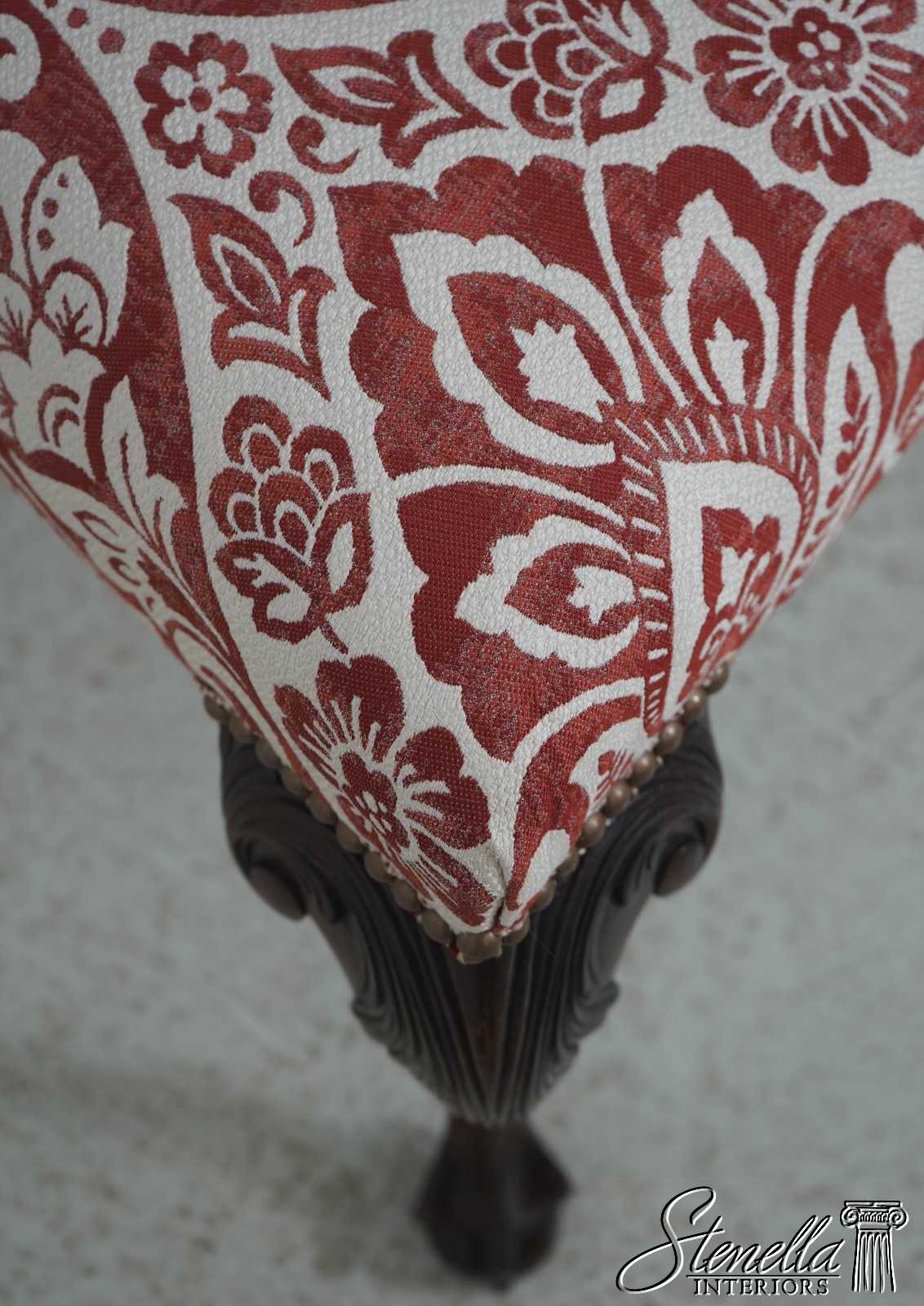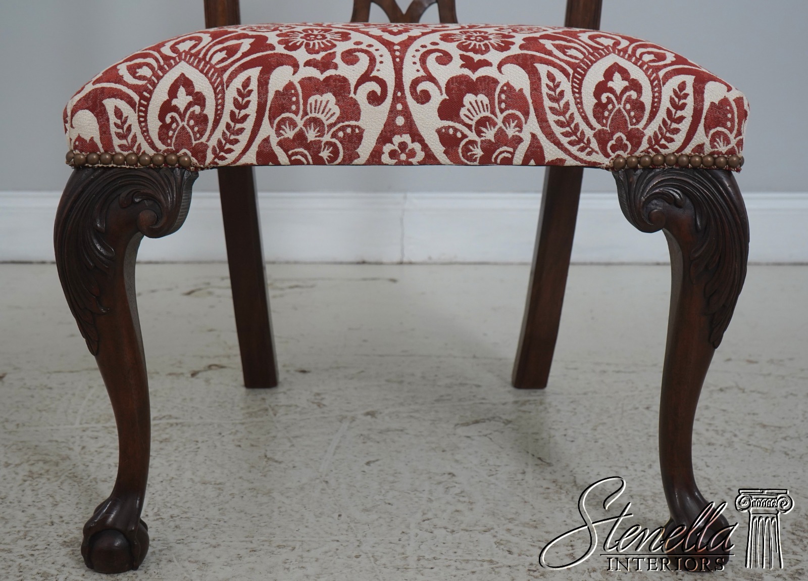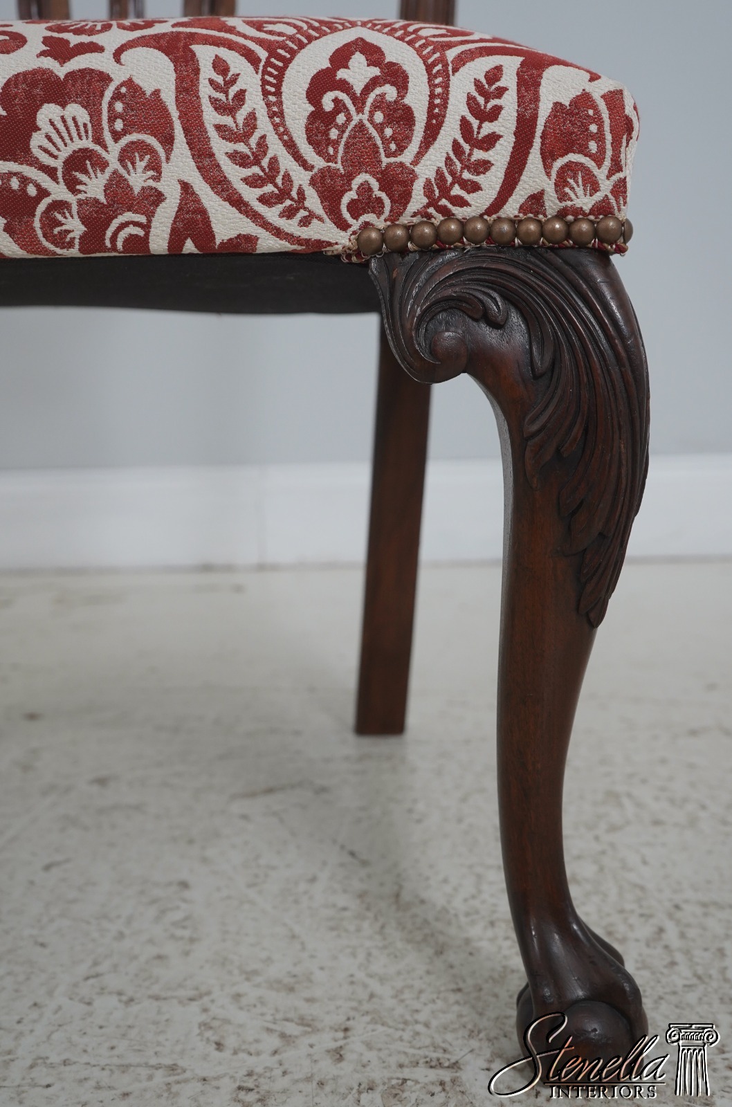 Details: Mahogany Ball & Claw Feet Fine Carved Details High Quality Construction Queen Anne Legs & Pad Feet 18 C. Design Chippendale Style Traditional Style Tack Head Trim Un-Marked As To Manufacture Offered @ Fraction Original Retail Cost