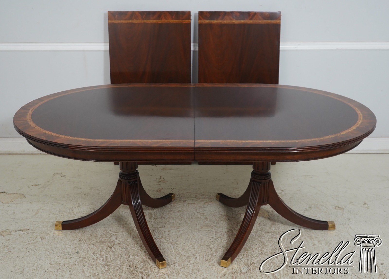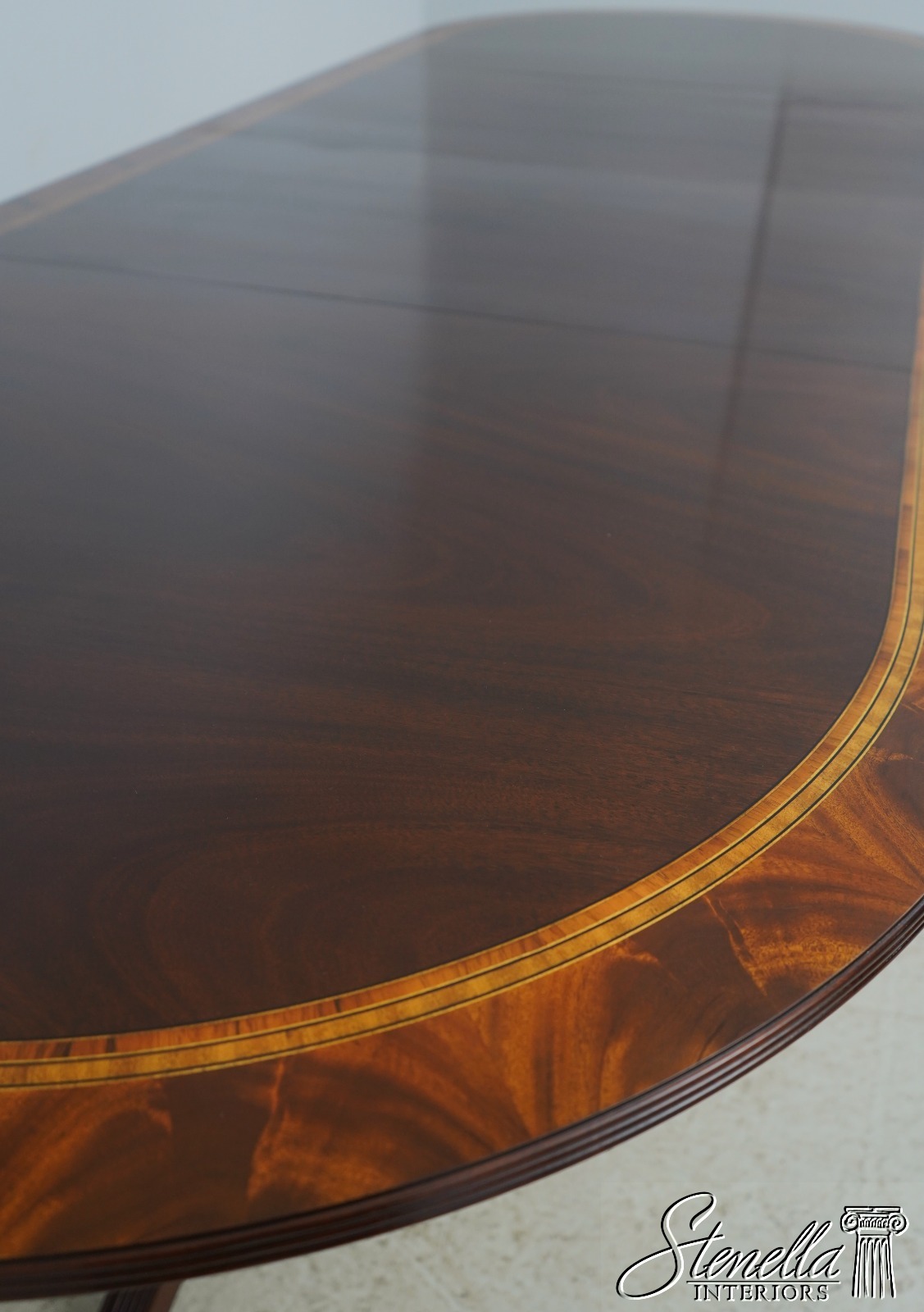 Details: Model 2235 Finish no. 29 High Quality Construction Duncan Phyfe Pedestal Legs Gorgeous Flame Mahogany Banded Border Offered @ Fraction Original Retail Cost