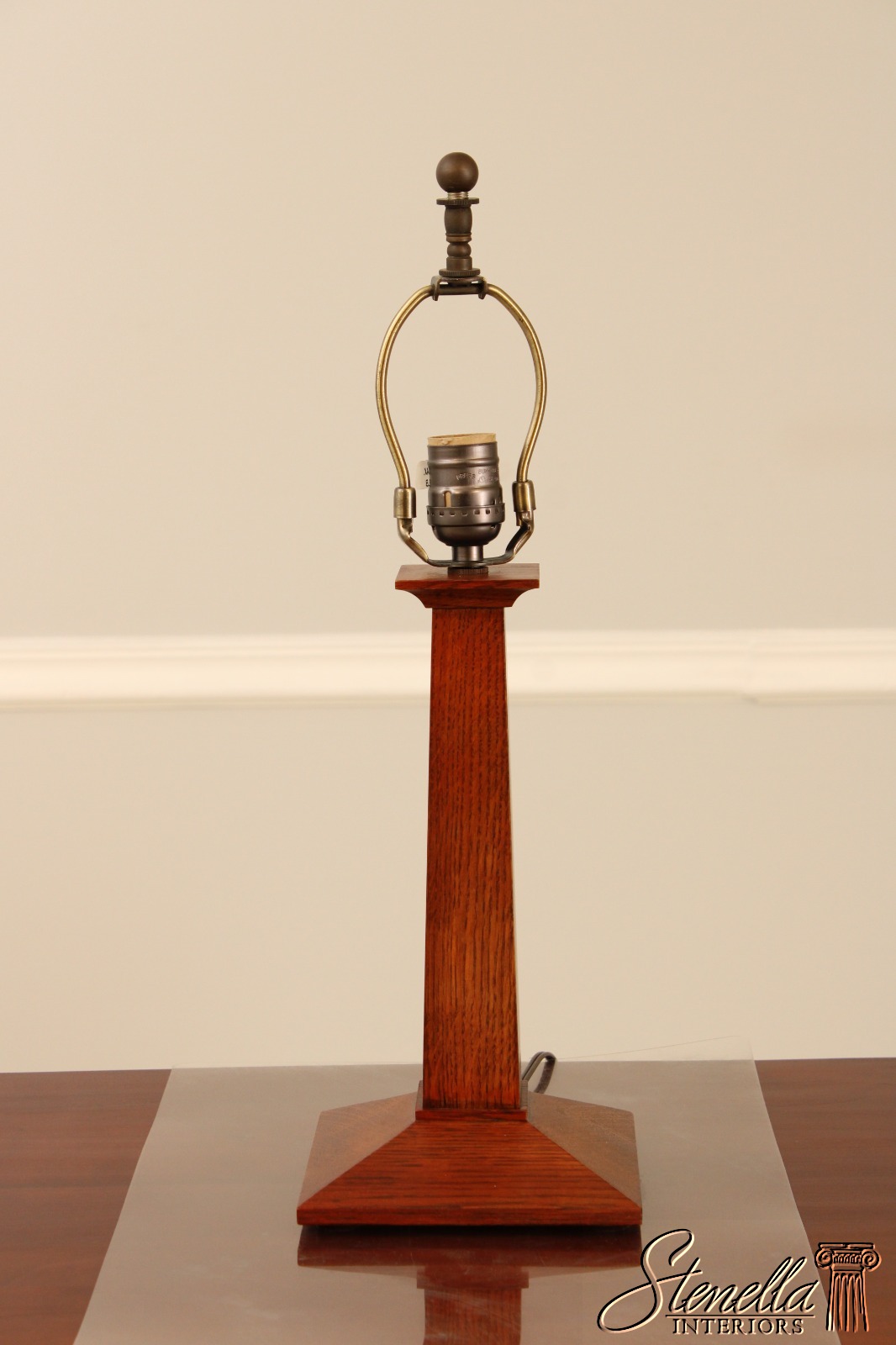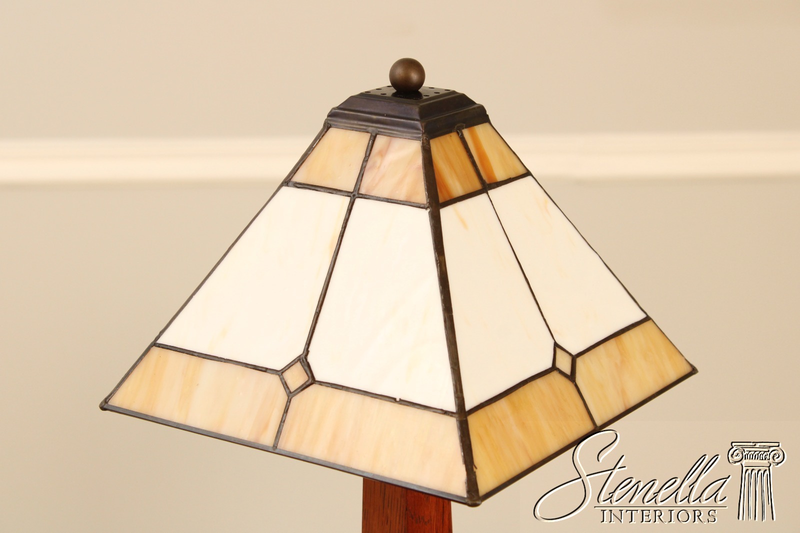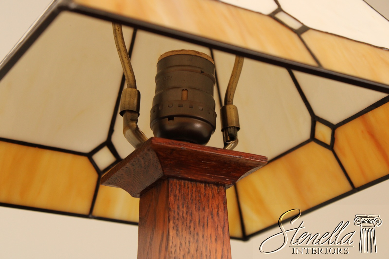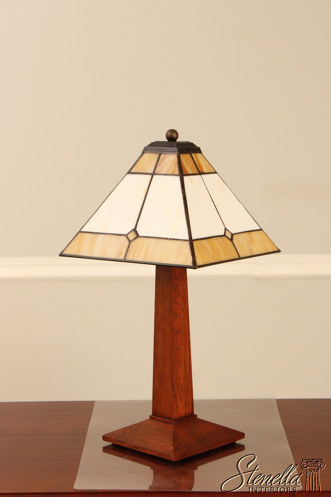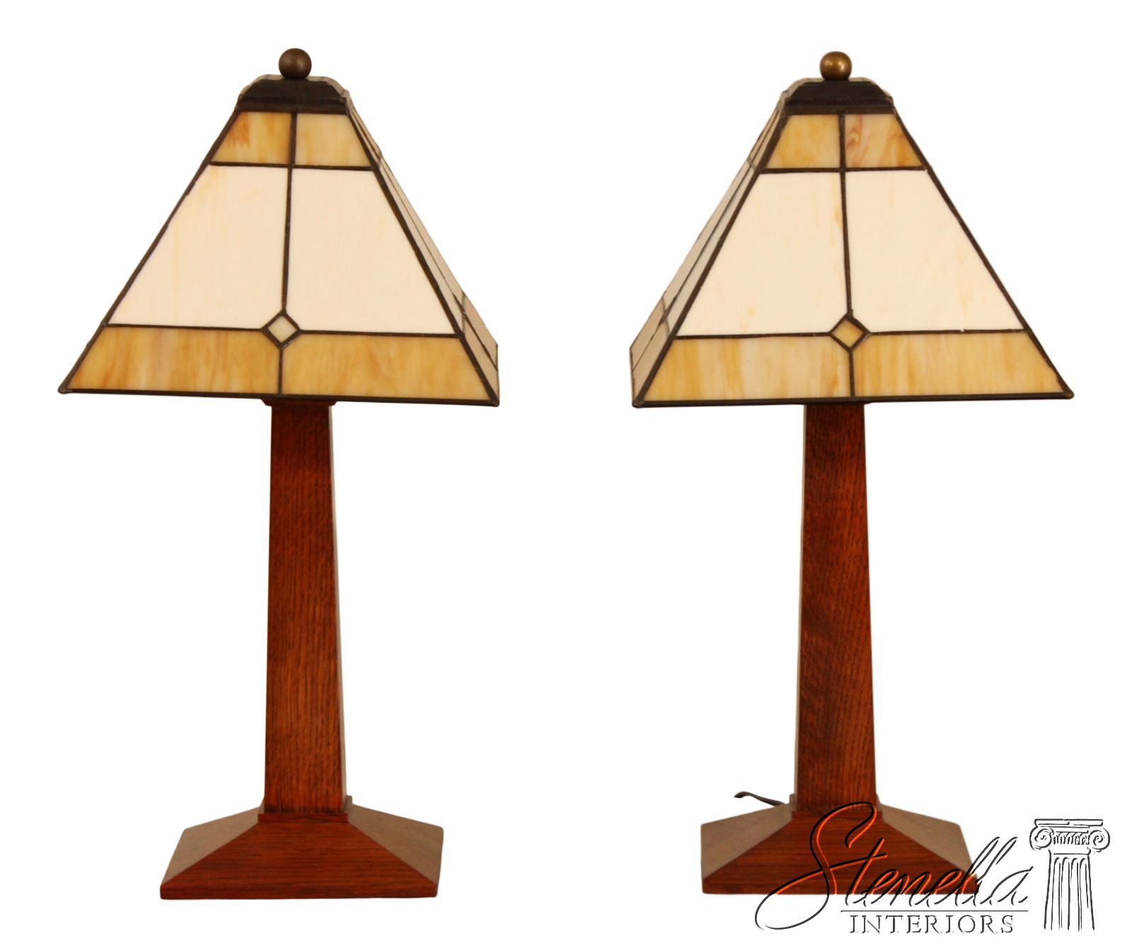 71878: Pair STICKLEY Mission Oak Slag Glass Lamps