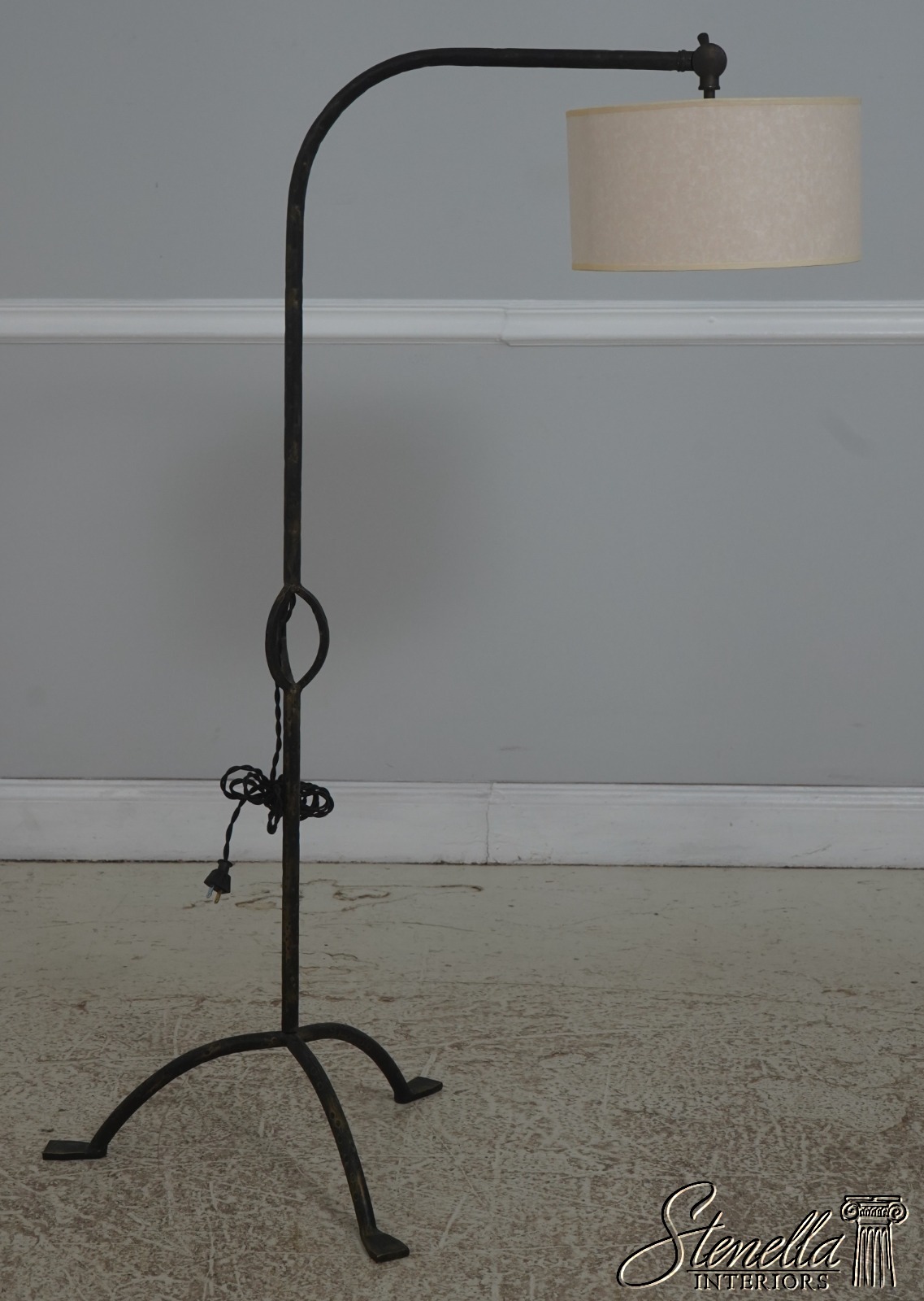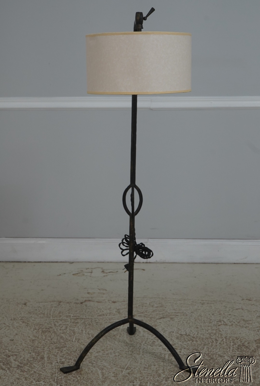 Details: Collectors Edition - Middletown Floor Lamp High Quality Construction Hammered Wrought Iron Construction Traditional Style Drum Parchment Shade Factory Distressed Tripod Base Un-Marked As To Manufacture Offered @ Fraction Original Retail Cost