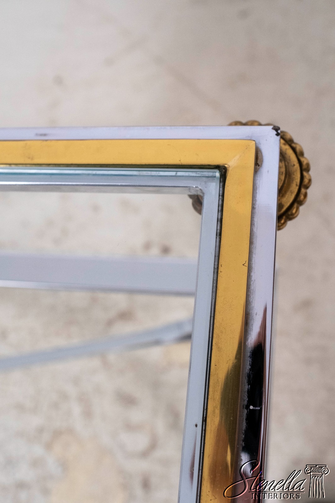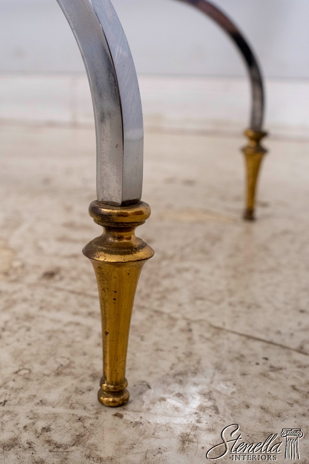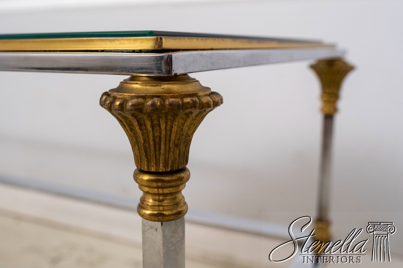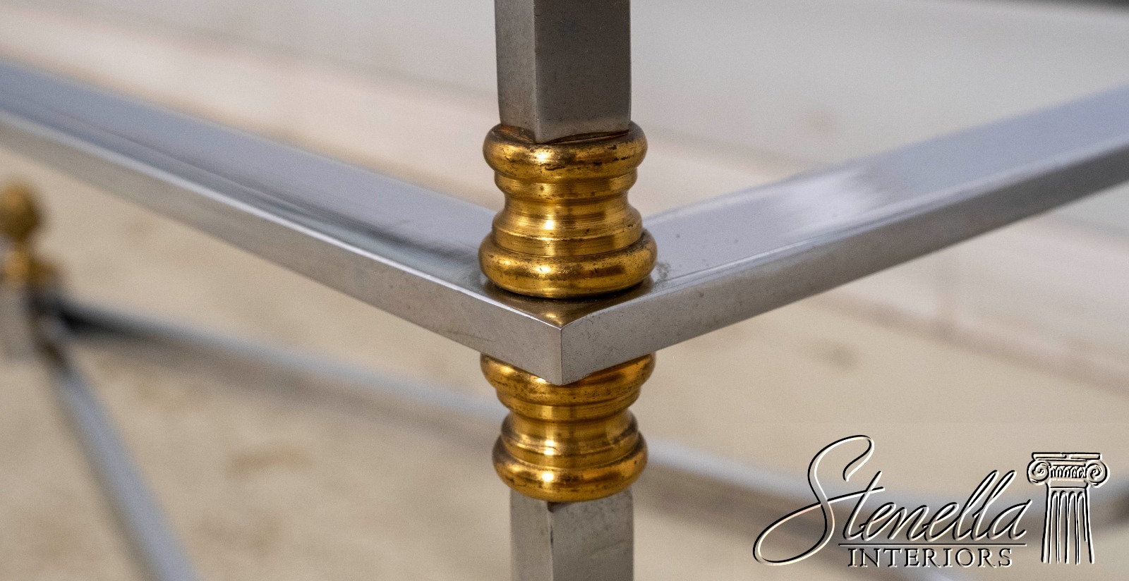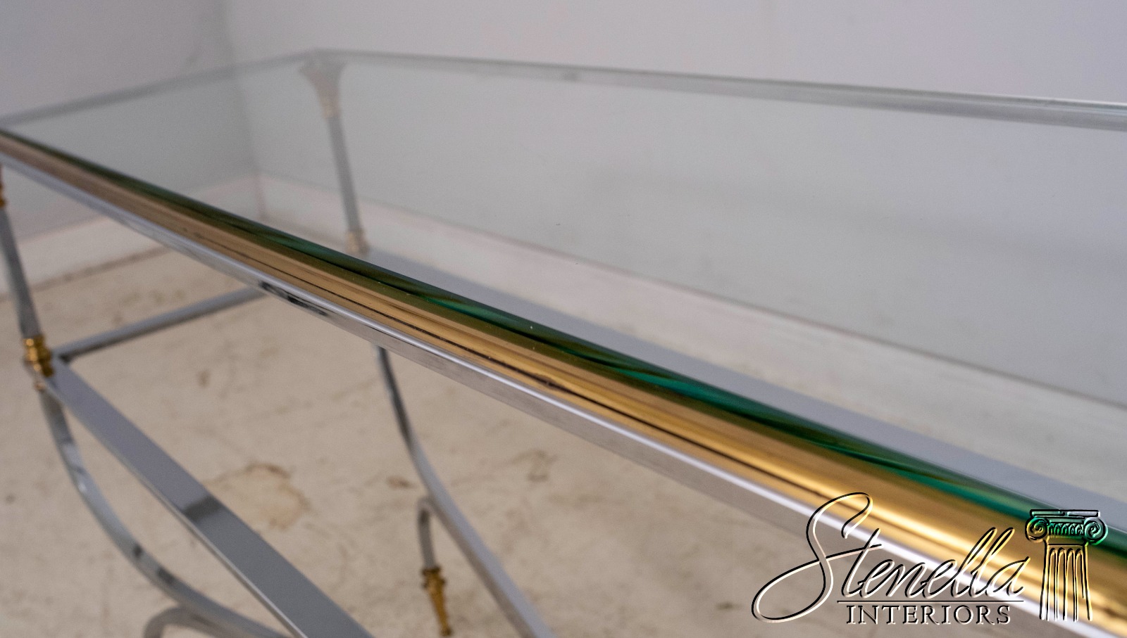 70099: MAISON JANSEN Style Mid Century Modern Brass Chromo 2 Tier Sofa Table